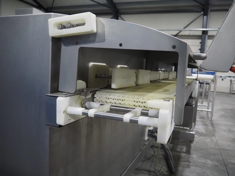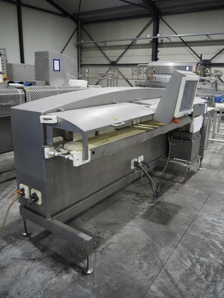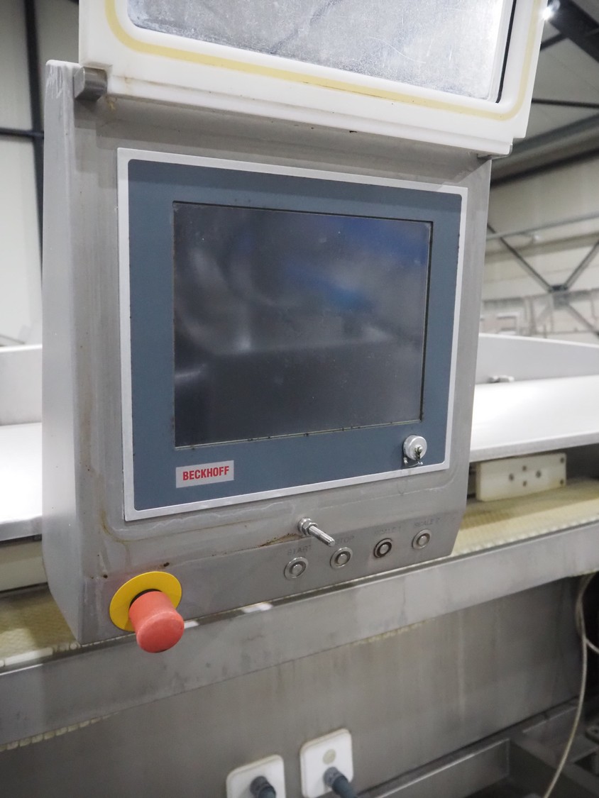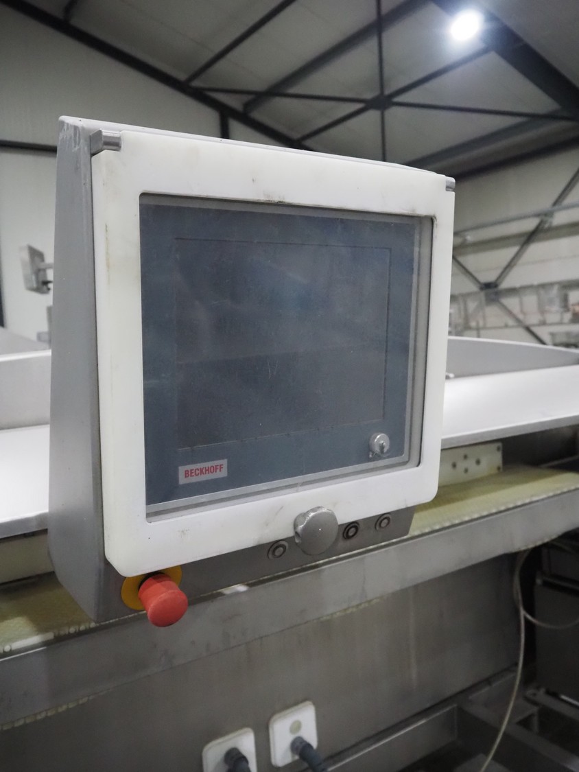 TVI Entwicklung & Produktion GmbH weighing belt with 4 rejectors, type: GMI multitray 800, serial number: 0013, year of construction: 2010, 400 V, 3 Ph, 50 Hz, 32 A, 8 bar, 875 kg, belt width: 250 mm, total dimensions: 3600 mm x 1050 mm x 1540 mm.