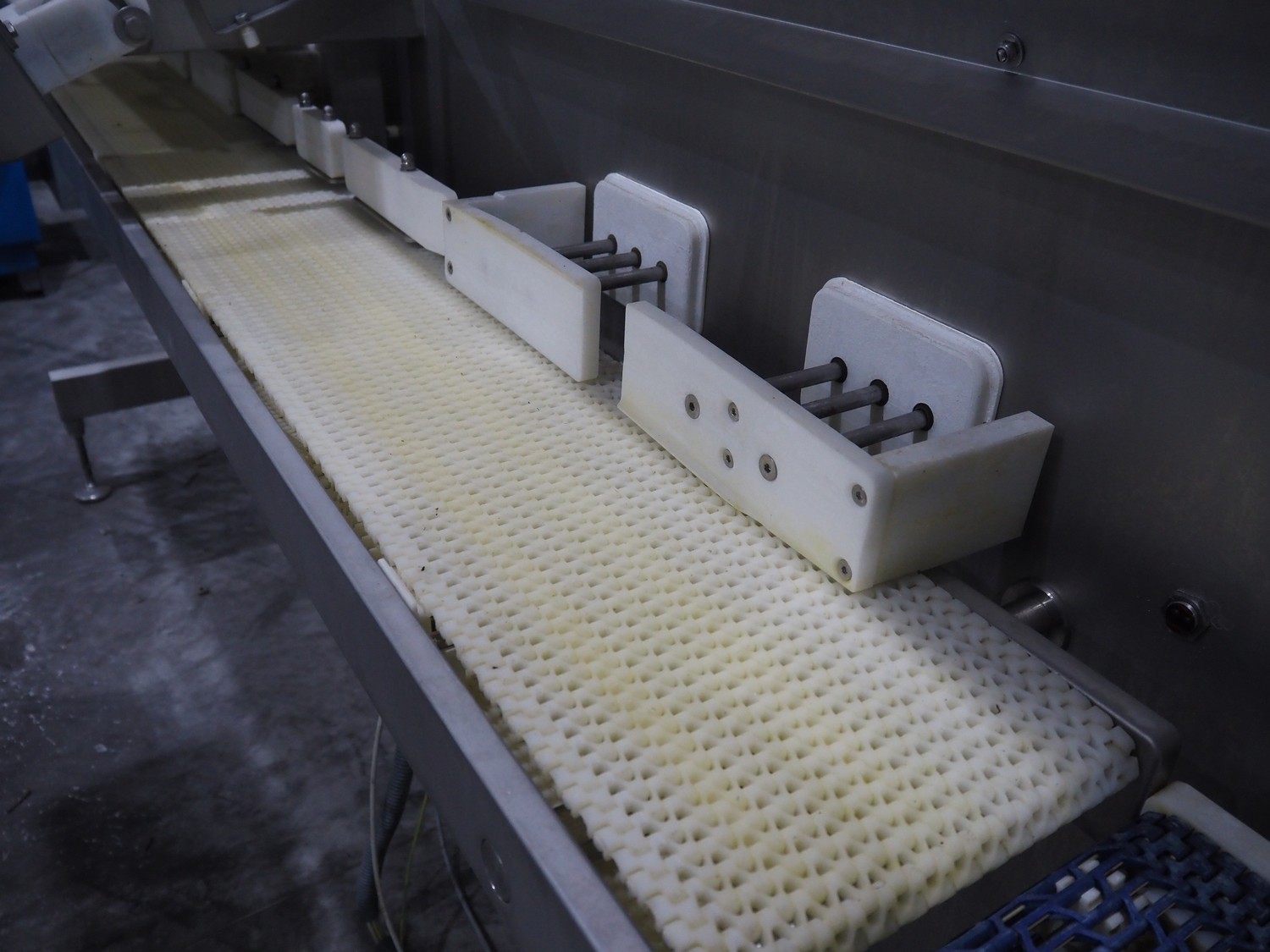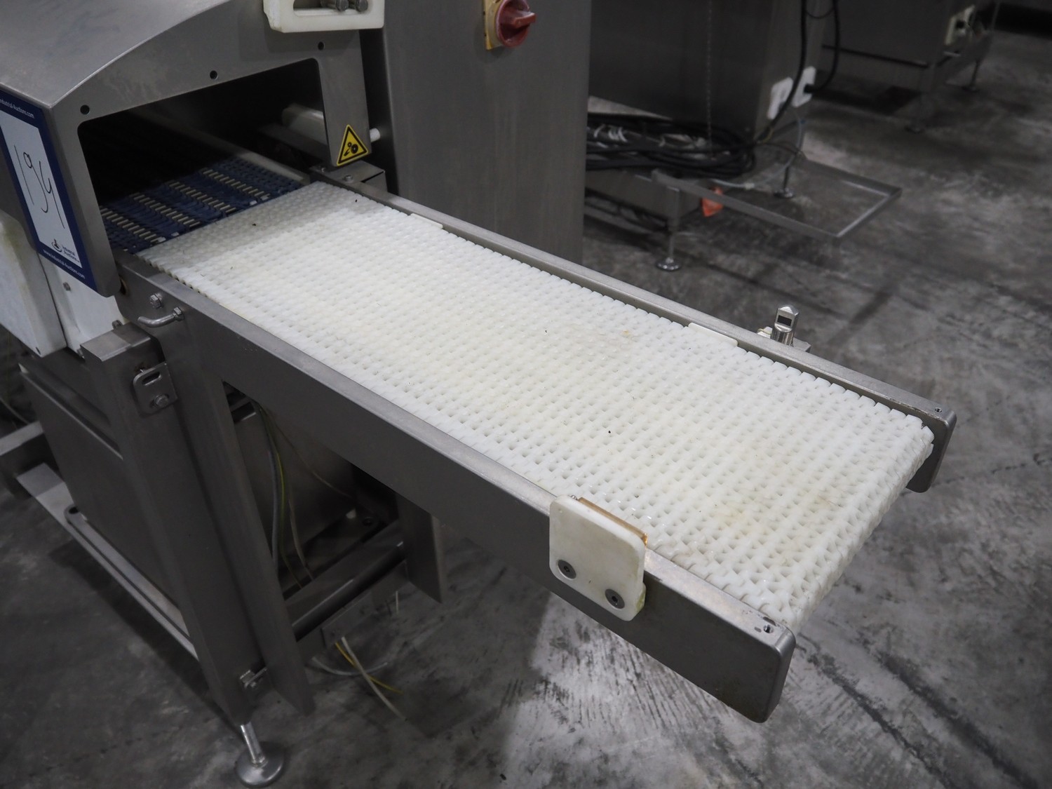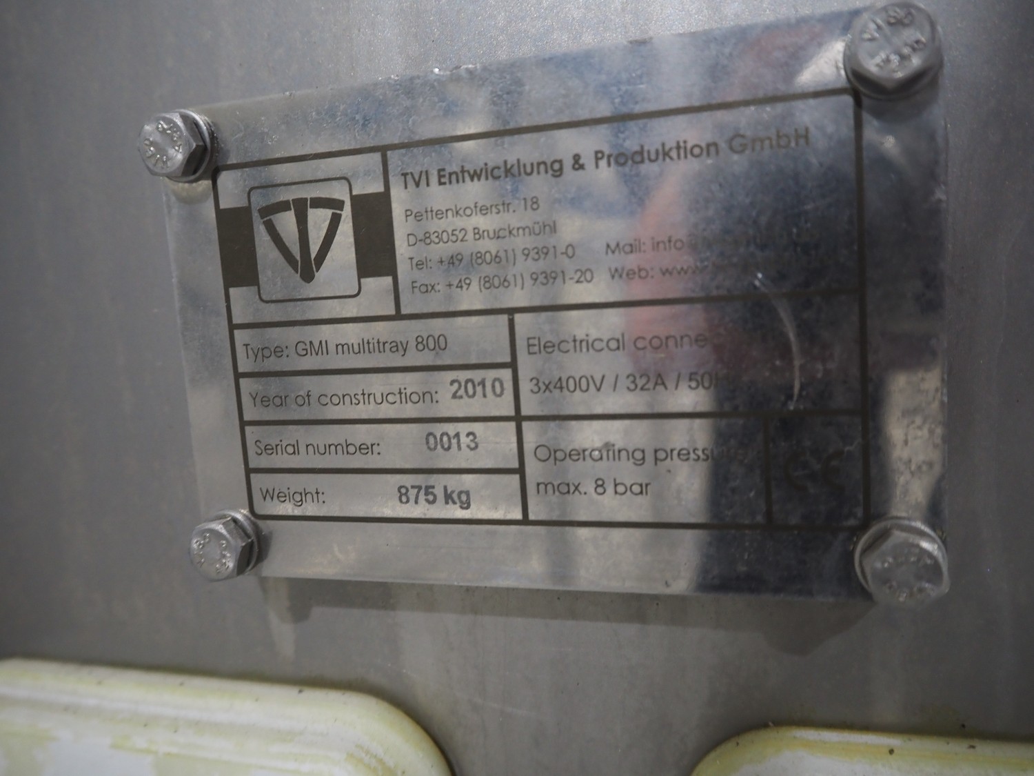 TVI Entwicklung & Produktion GmbH weighing belt with 4 rejectors, type: GMI multitray 800, serial number: 0013, year of construction: 2010, 400 V, 3 Ph, 50 Hz, 32 A, 8 bar, 875 kg, belt width: 250 mm, total dimensions: 3600 mm x 1050 mm x 1540 mm.
