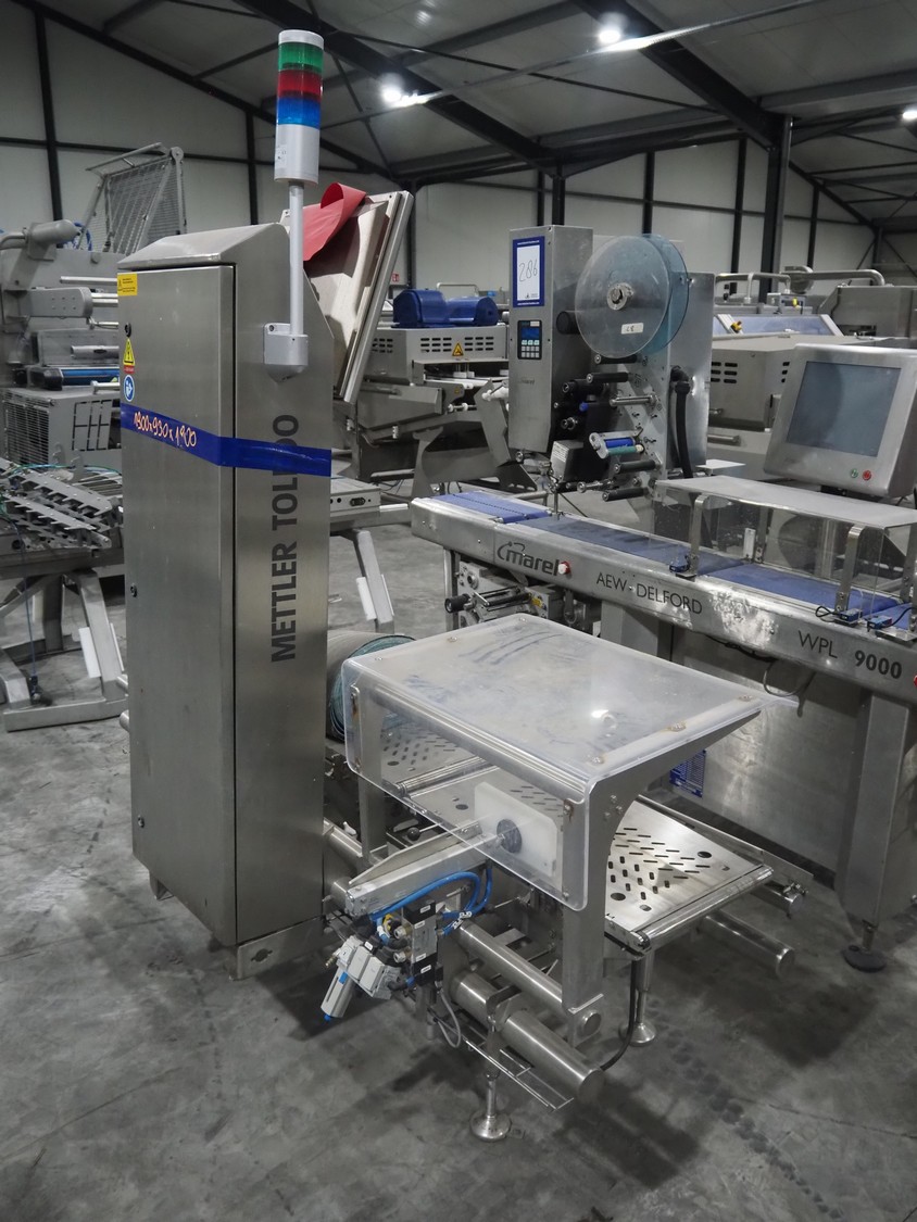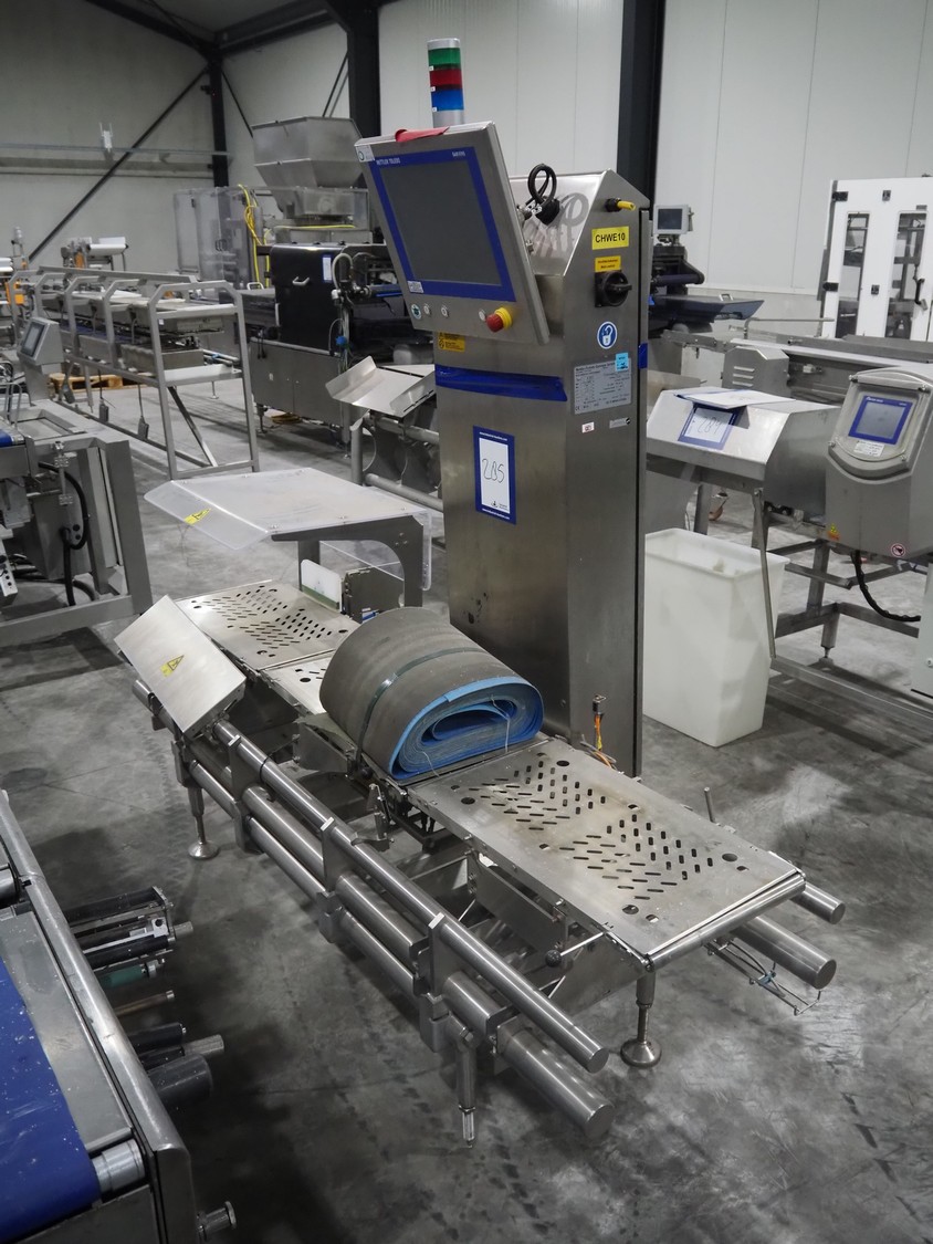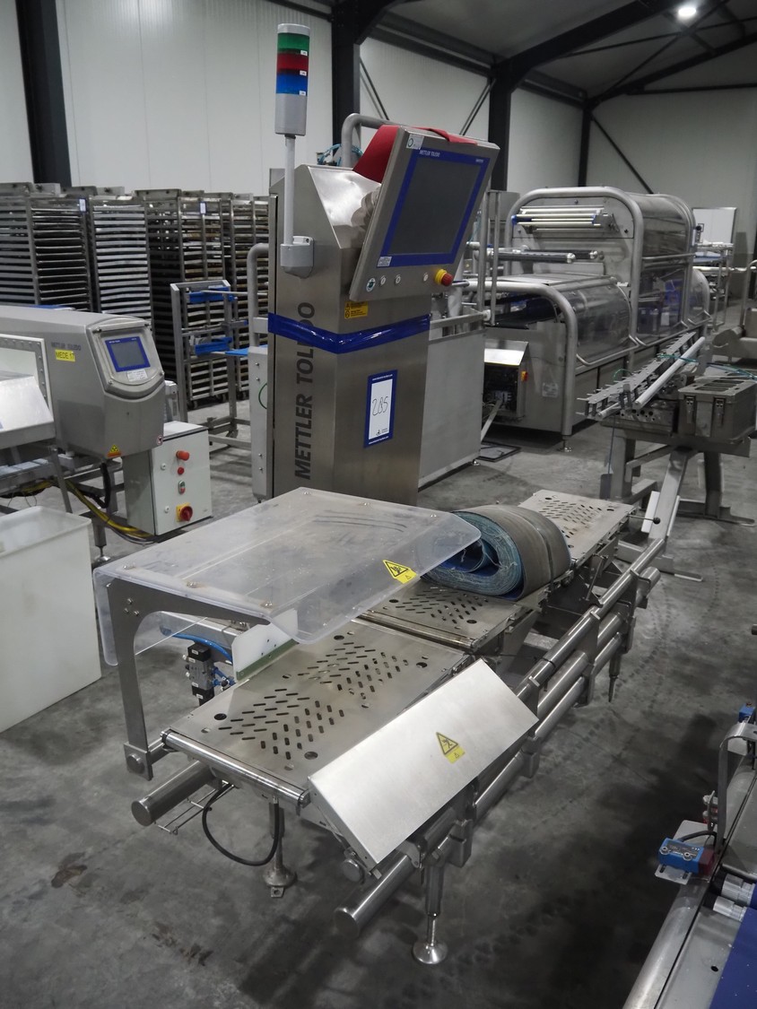 Mettler Toledo Garvens GmbH checkweigher with rejector, type: C3571, fabrication number: 147027610010, year of construction: 2019, 100/240 V, 50/60 Hz, temperature: 0°/+40°C, maximum weight: 1500/3600 gram, minimum weight: 180 gram, e=d= 0.5, T=-900 gram, plastic belt, belt width: 290 mm, total dimensions: 1950 mm x 900 mm x 1960 mm.