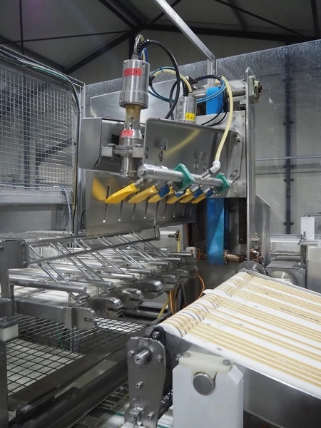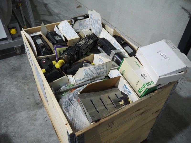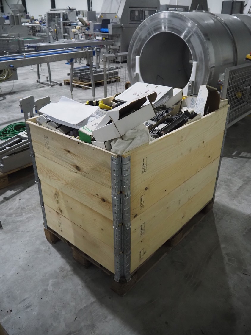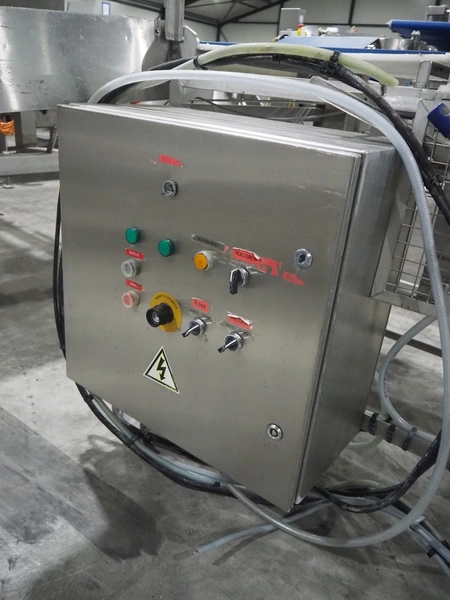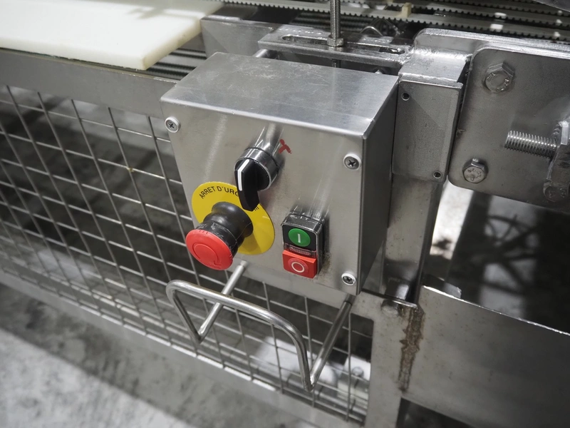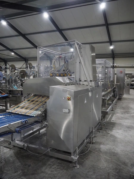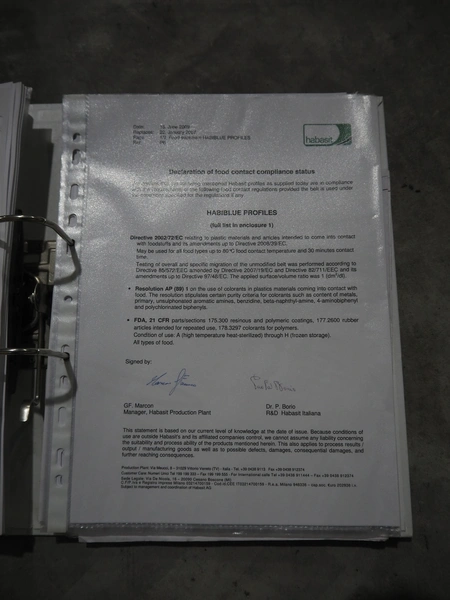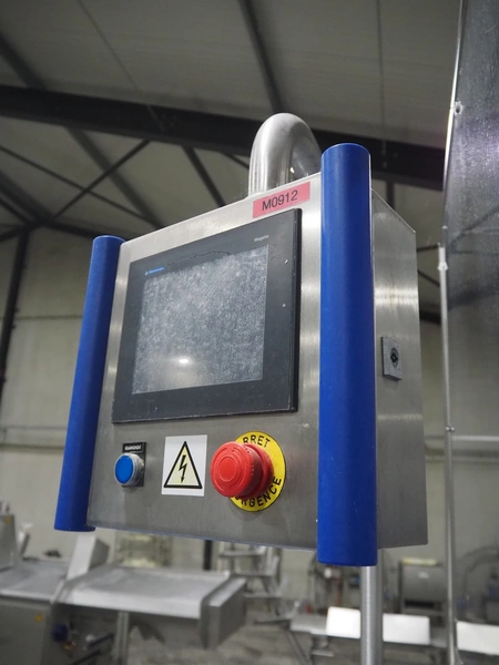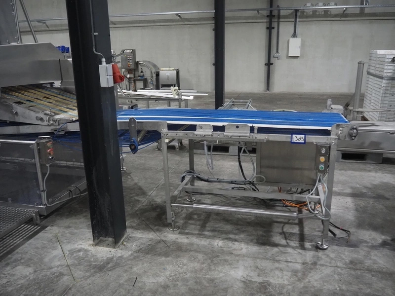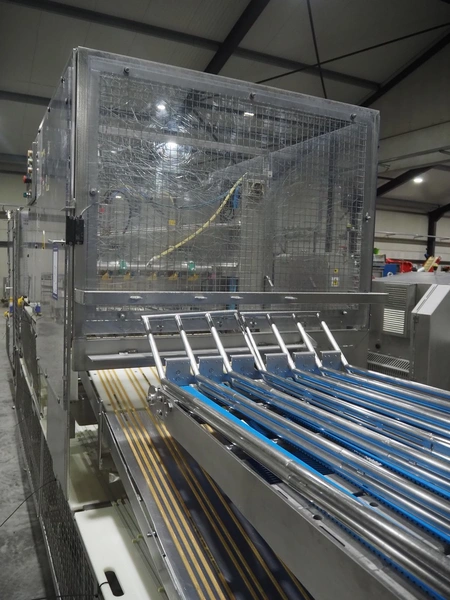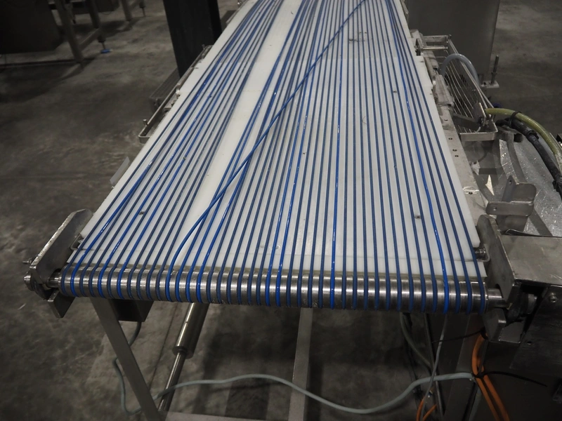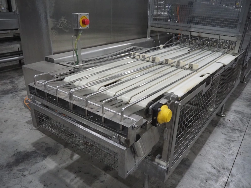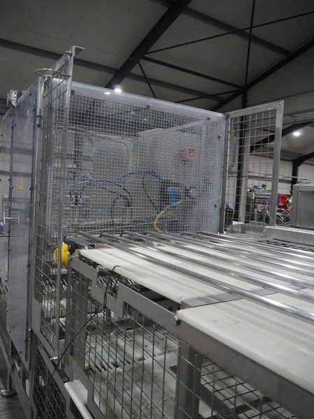 Ermatec ultrasonic slicing line used for cheese, type: 1717-19-12-08, serial number: Trancheur From, year of construction: 17/12/08, working width: 600 mm, 6 lanes, plastic belts, belt width: 75 mm, total dimensions: 13200 mm x 1900 mm x 2600 mm. Including pallet with various parts, dimensions: 1200 mm x 980 mm x 1120 mm. Including pallet box with various parts, dimensions pallet: 1200 mm x 800 mm x 1000 mm.