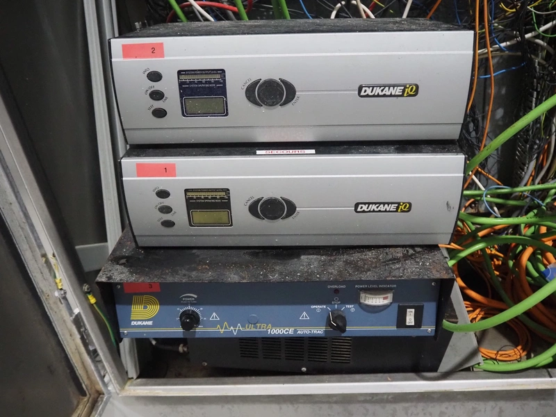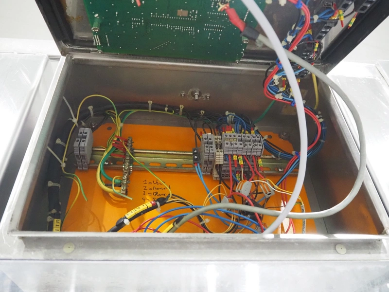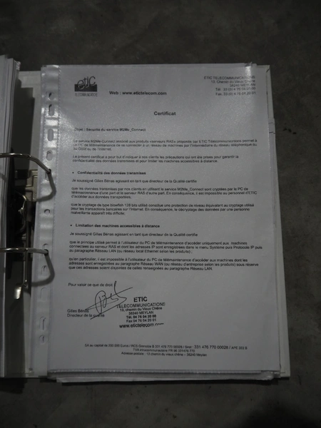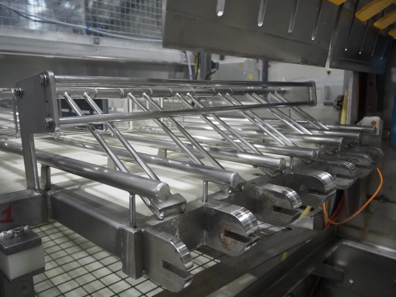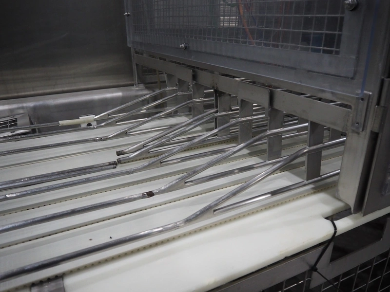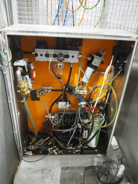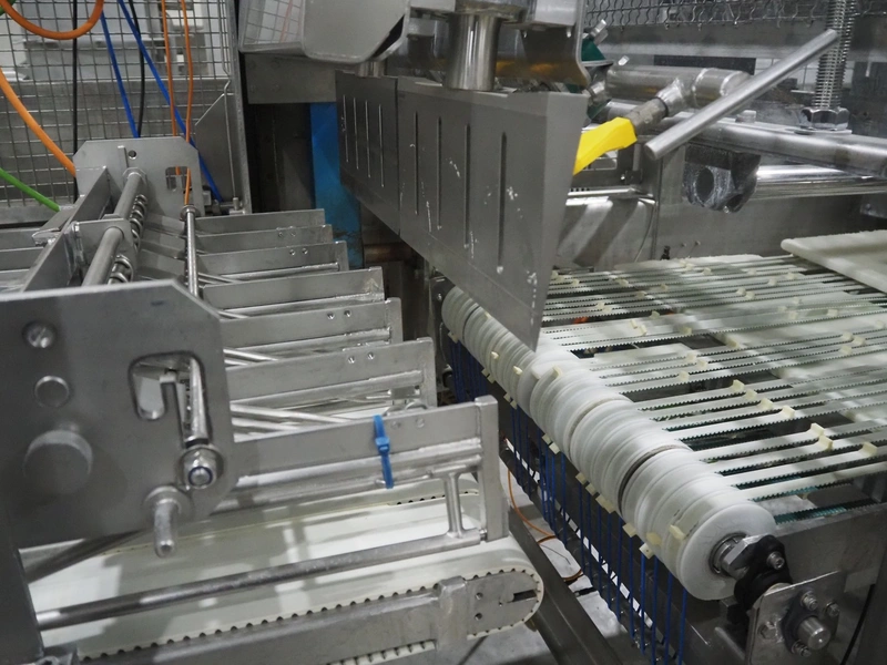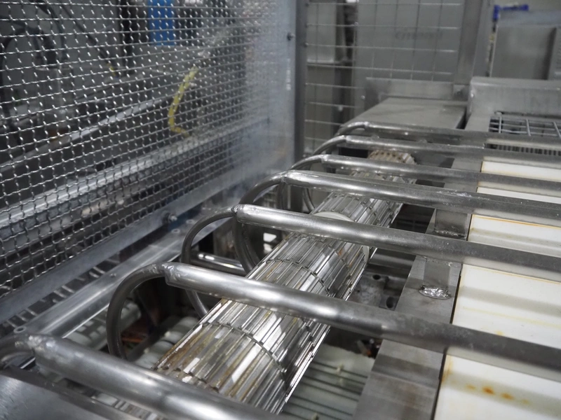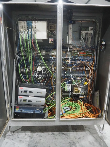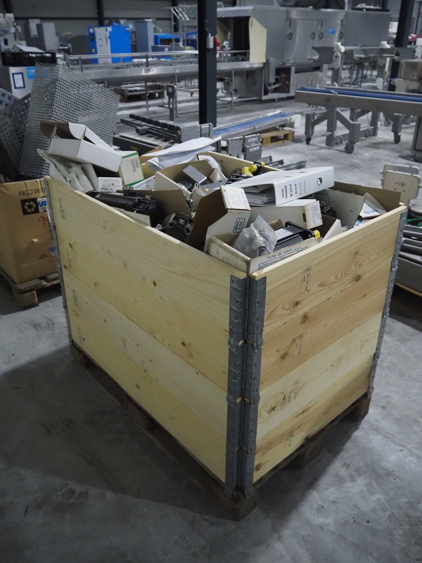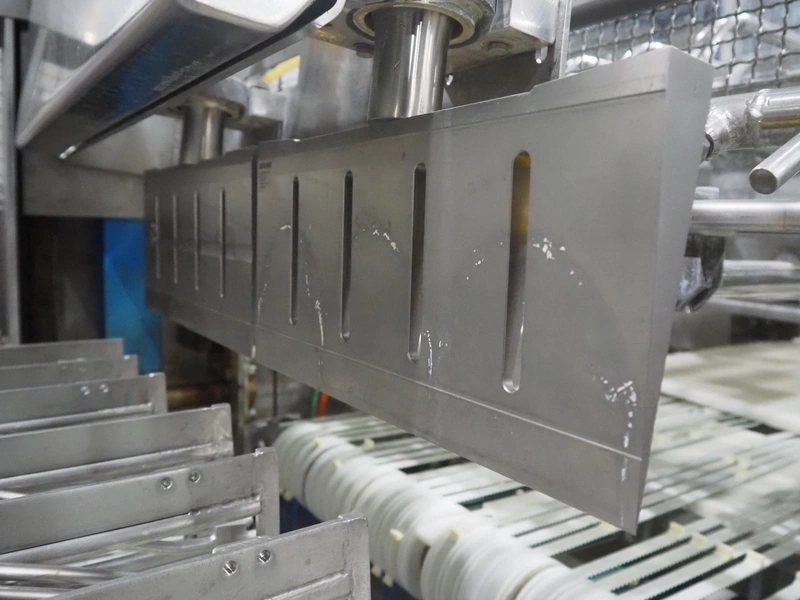 Ermatec ultrasonic slicing line used for cheese, type: 1717-19-12-08, serial number: Trancheur From, year of construction: 17/12/08, working width: 600 mm, 6 lanes, plastic belts, belt width: 75 mm, total dimensions: 13200 mm x 1900 mm x 2600 mm. Including pallet with various parts, dimensions: 1200 mm x 980 mm x 1120 mm. Including pallet box with various parts, dimensions pallet: 1200 mm x 800 mm x 1000 mm.