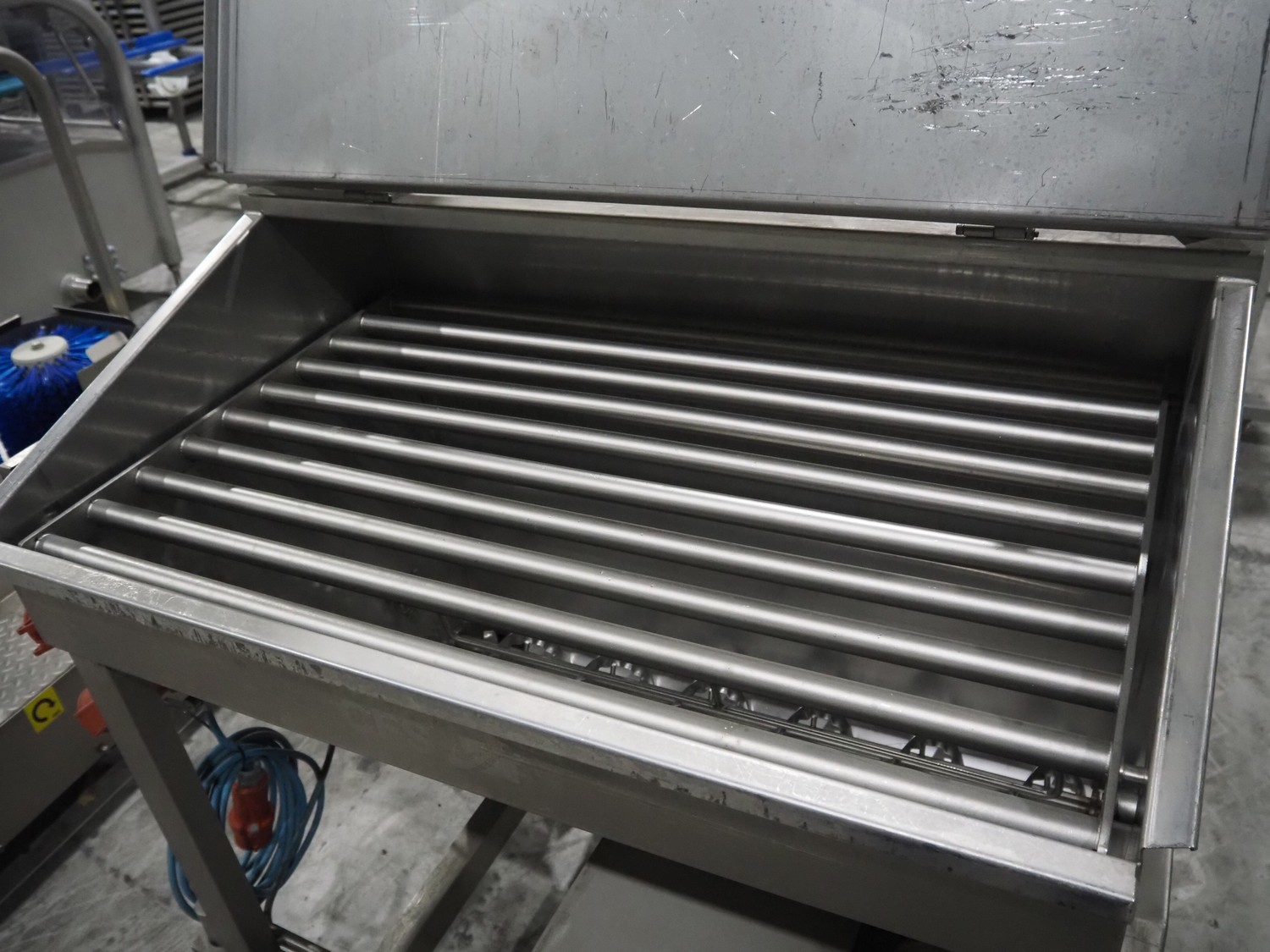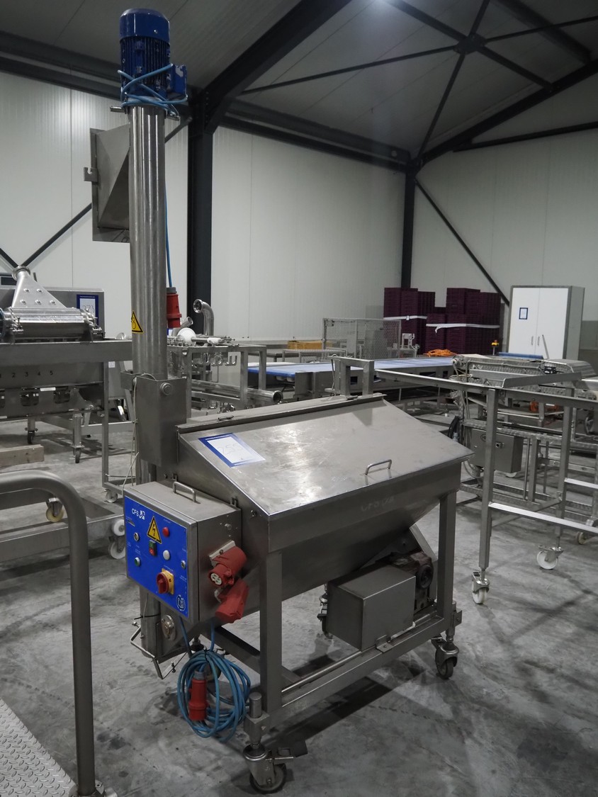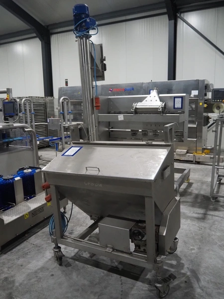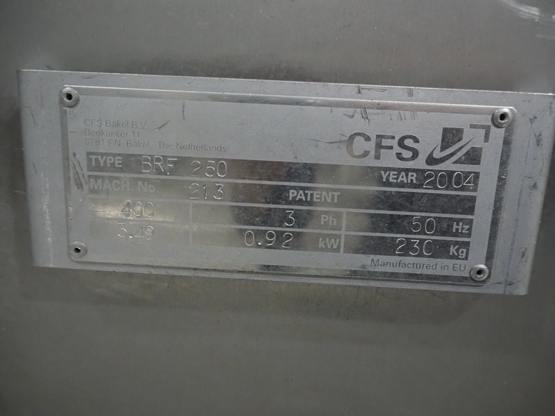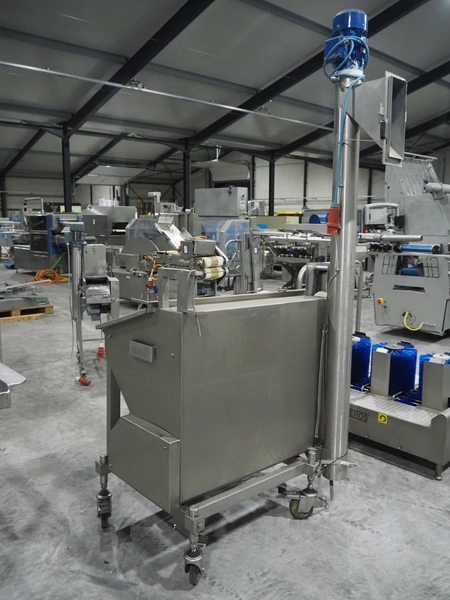 CFS mobile bunker for bread crumbs, type: BRF 250, machine number: 213, year of construction: 2004, 400 V, 3 Ph, 50 Hz, 3.49 A, 0.92 kW, weight: 230 kg, elevating height: 1860 mm, total dimensions: 1300 mm x 1000 mm x 2600 mm.
