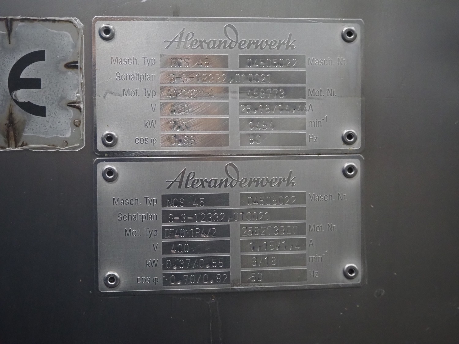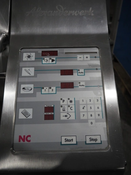 Alexanderwerk cutter, type: NCS 45, machine number: 04505022, 400 V, 50 Hz, 25.16/14.44 A, 7.5 kW, s/s bowl, volume: 45 liter, dimensions: 1150 mm x 950 mm x 1150 mm. Technical condition unknown.