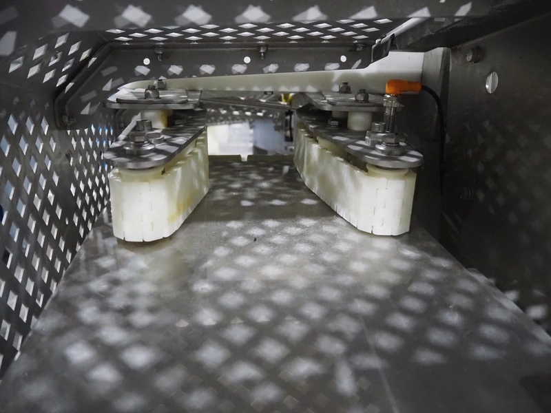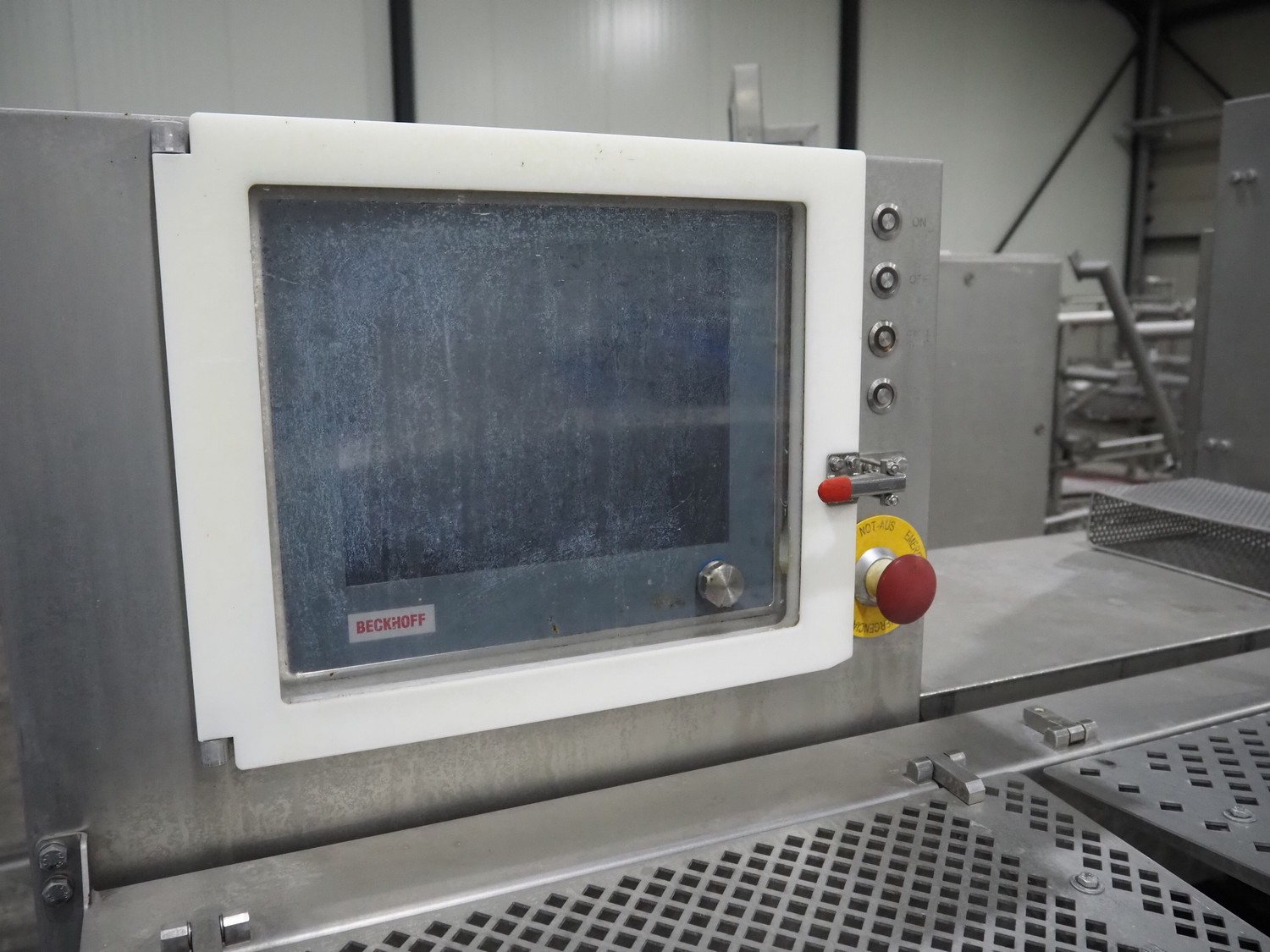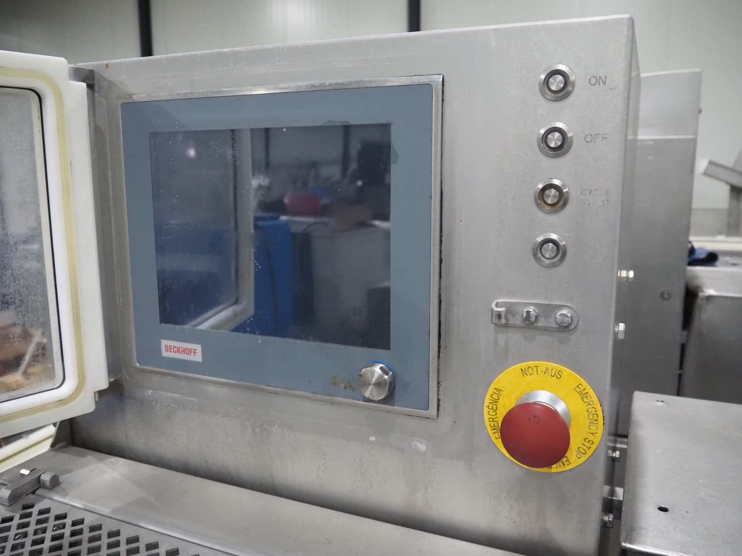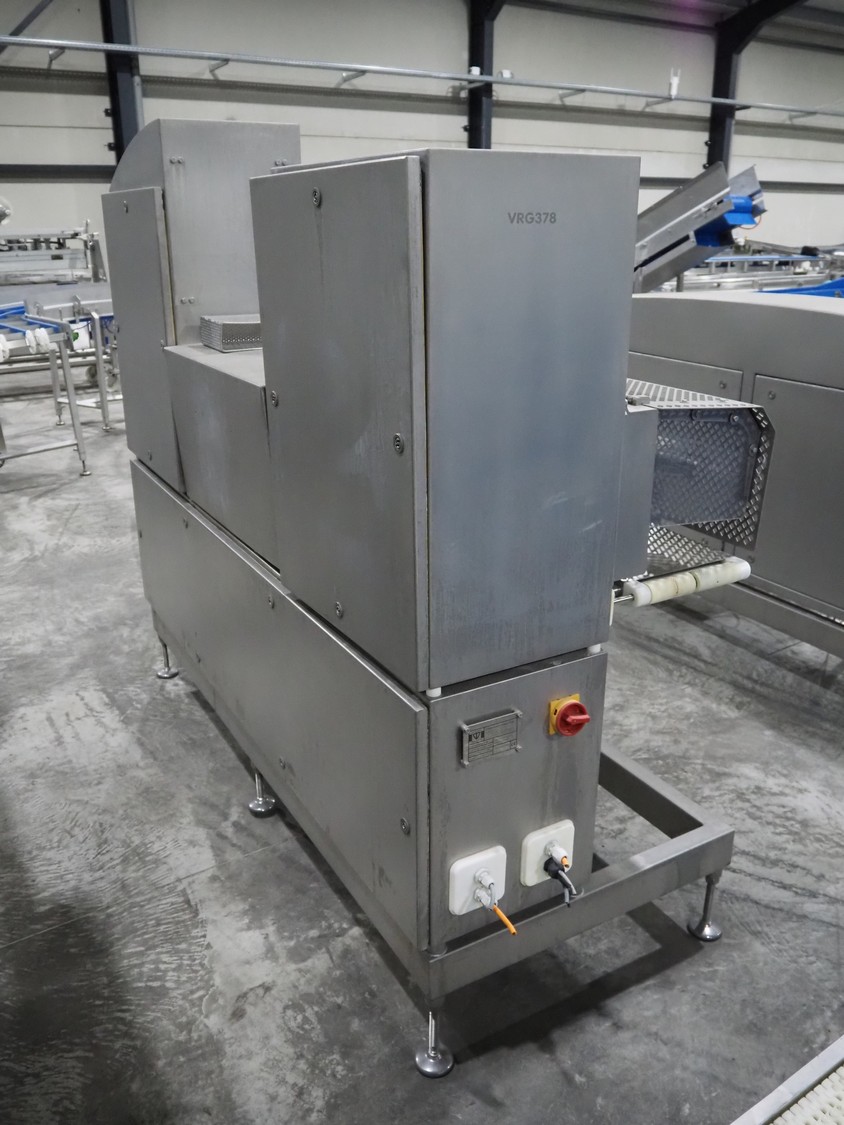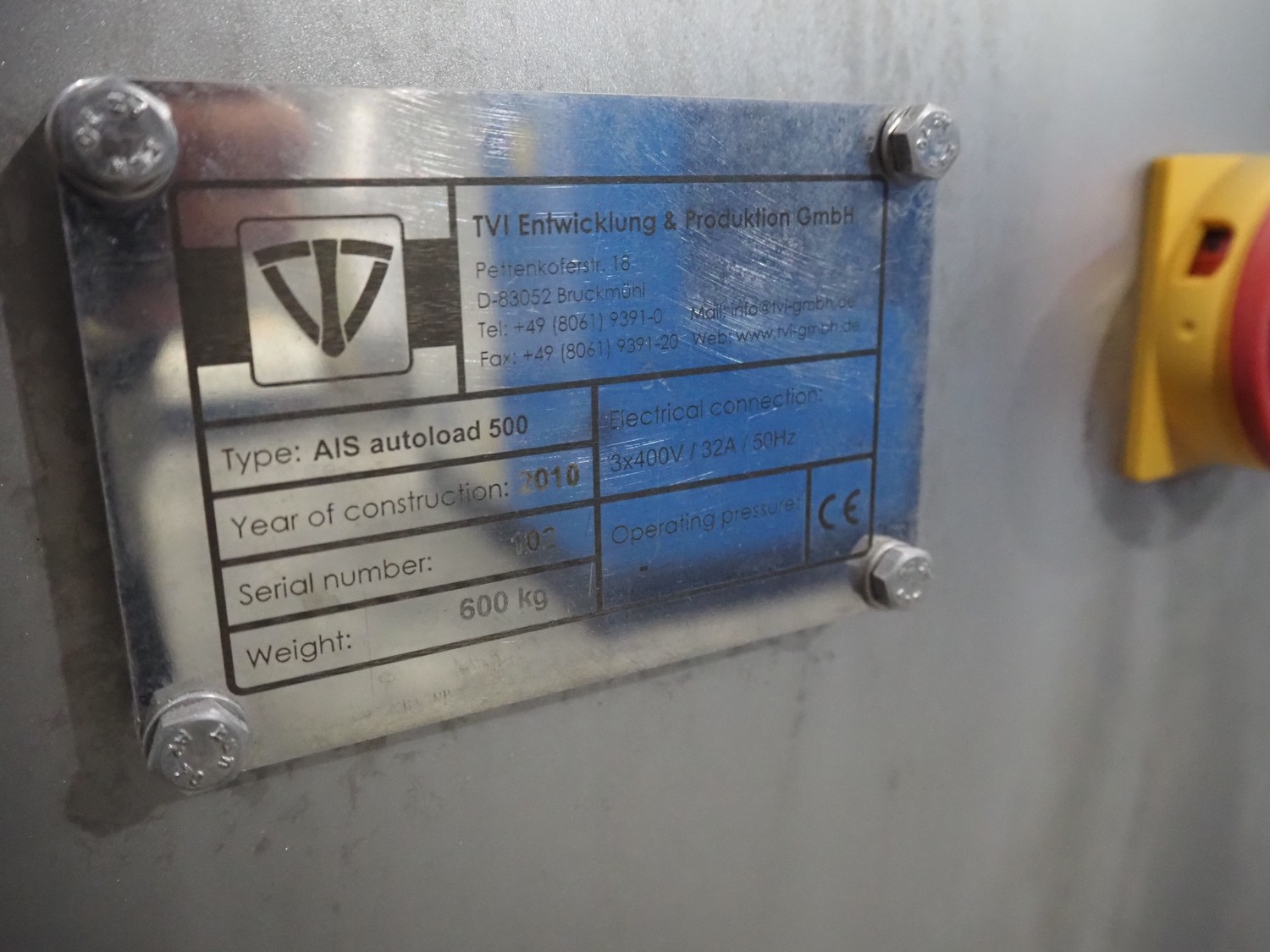 TVI Entwicklung & Produktion GmbH tray filler, type: AIS autoload 500, serial number: 102, year of construction: 2010, 400 V, 3 Ph, 50 Hz, 32 A, weight: 600 kg, maximum belt width: 300 mm, total dimensions: 2700 mm x 1200 mm x 2050 mm.