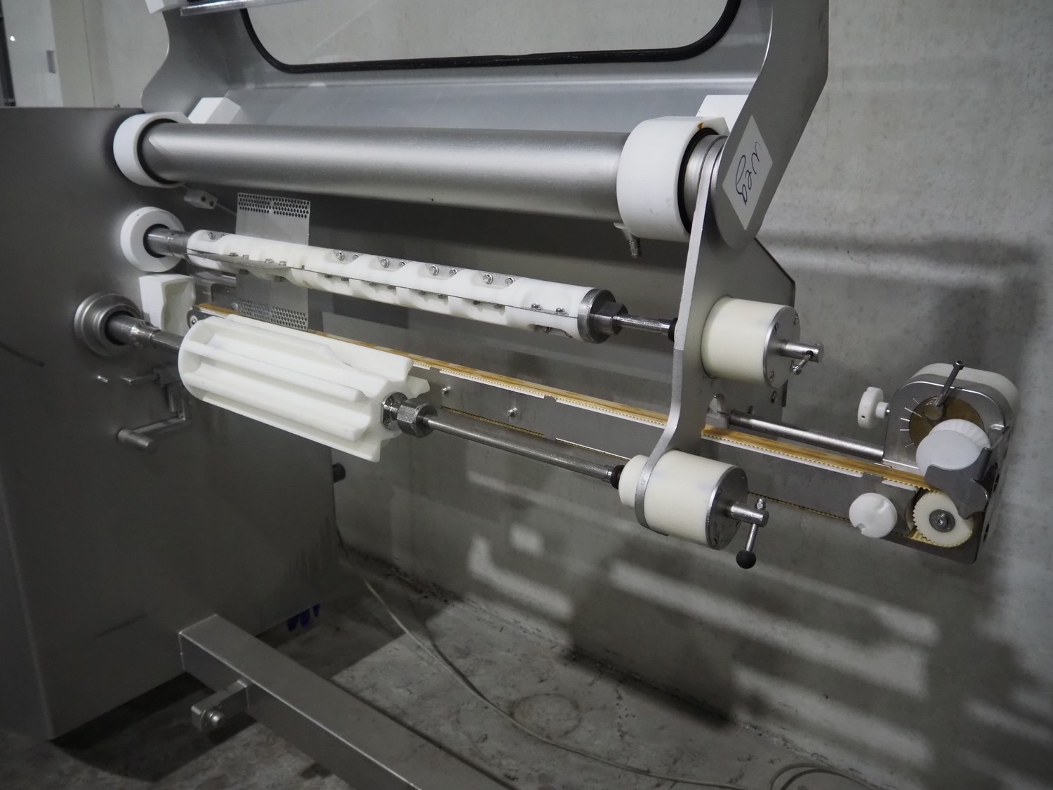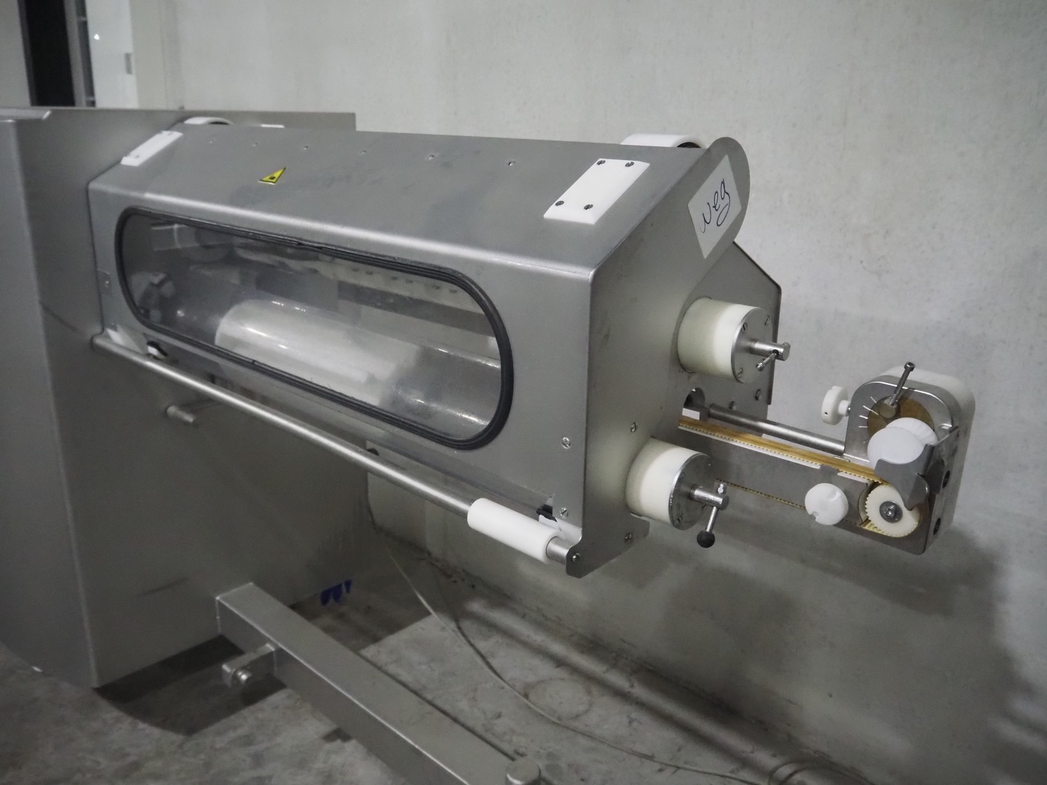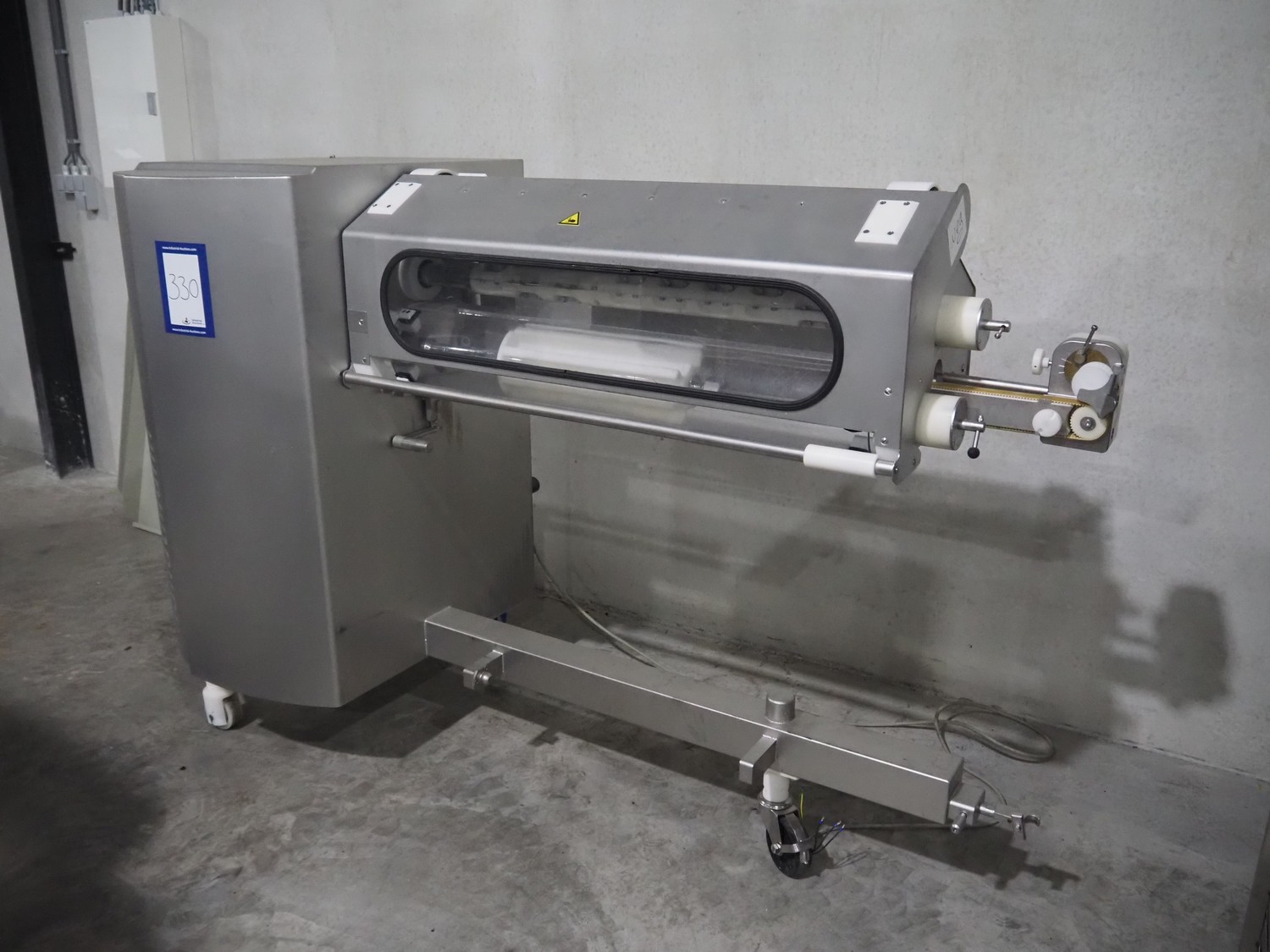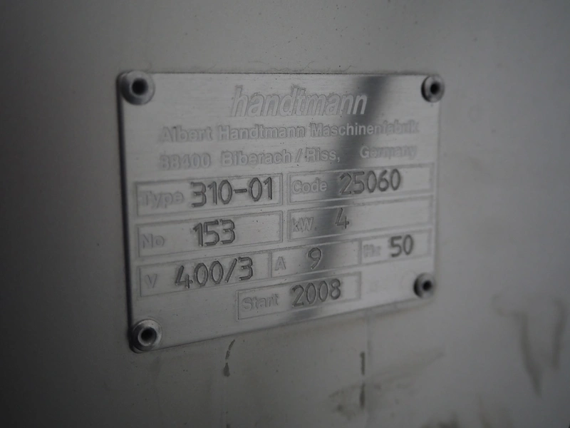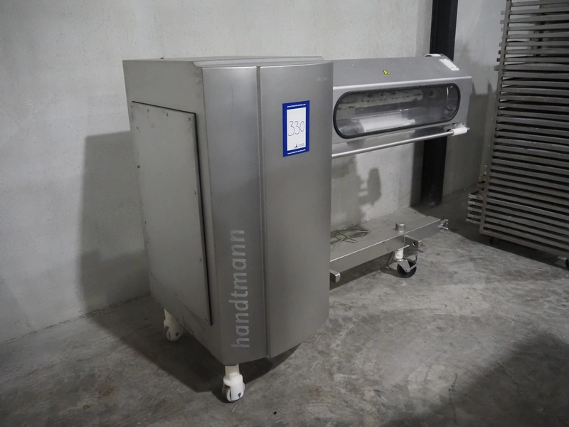 Handtmann mobile collating system for sausages, type: 310-01, number: 153, year of construction: 2008, 400 V, 3 Ph, 50 Hz, 9 A, 4 kW, dimensions: 2150 mm x 900 mm x 1460 mm. Damaged.