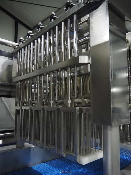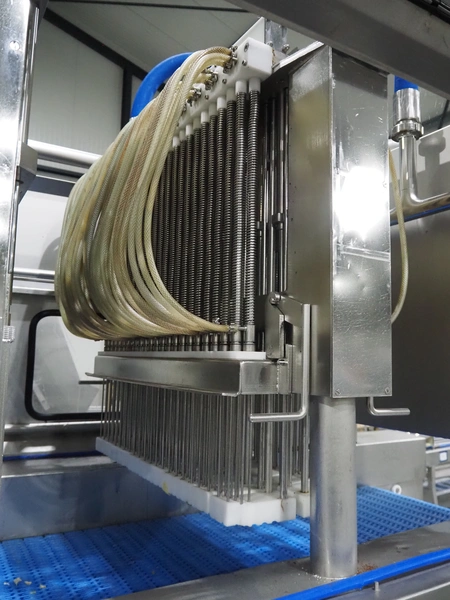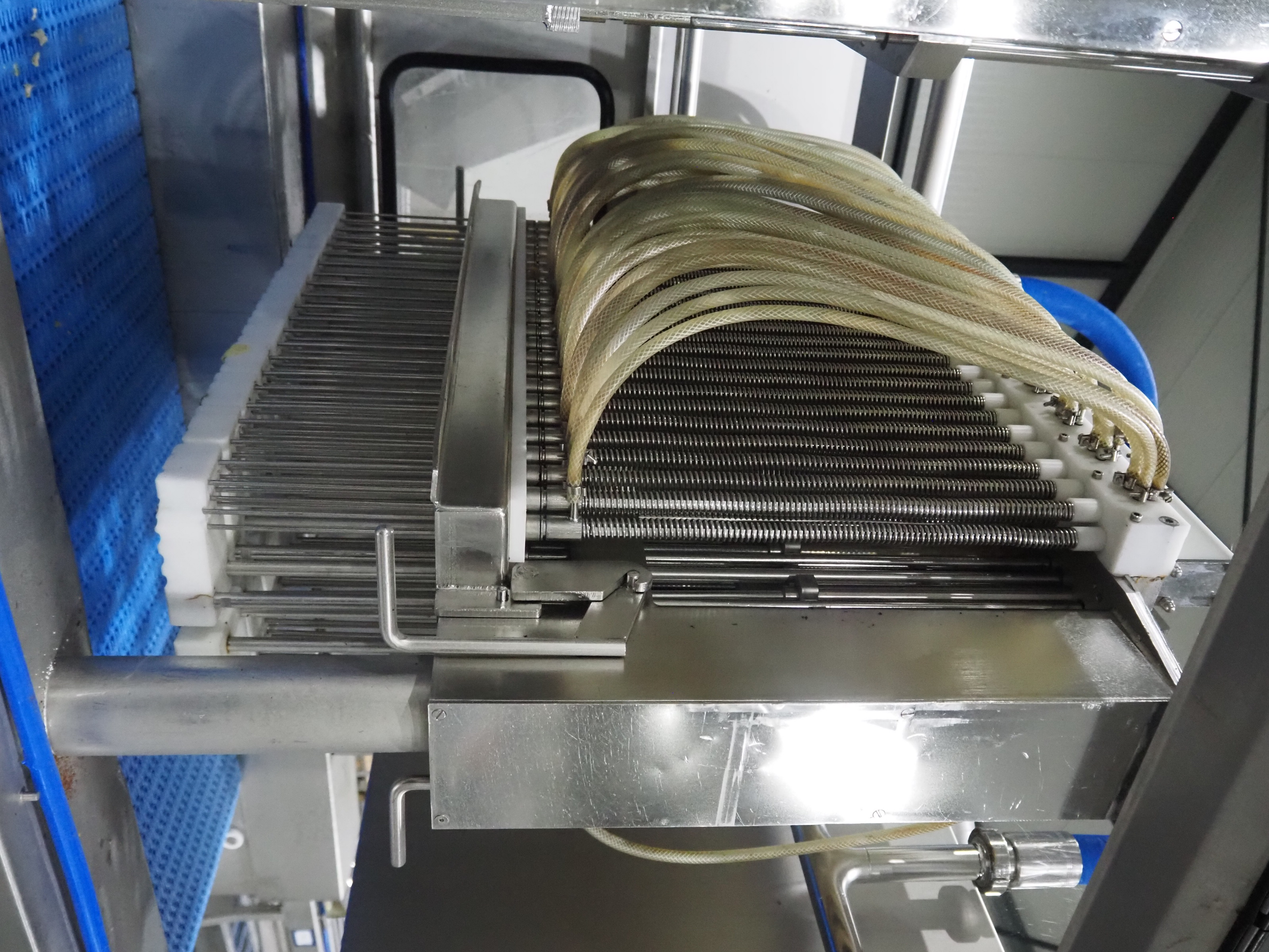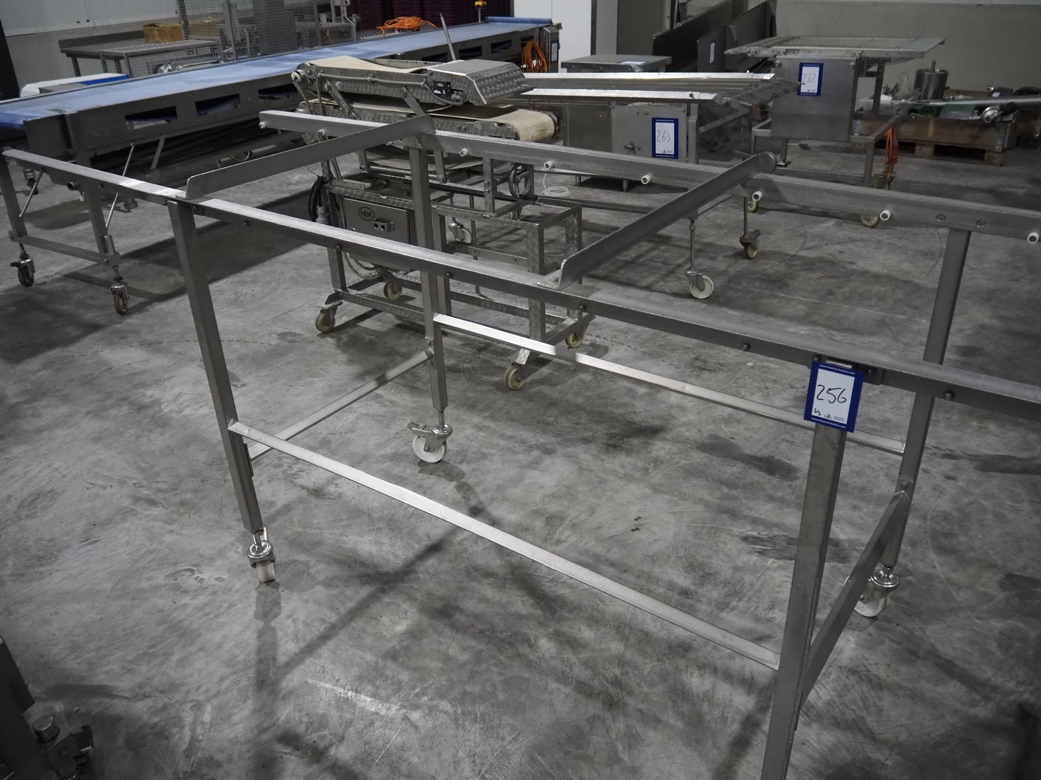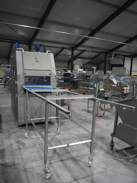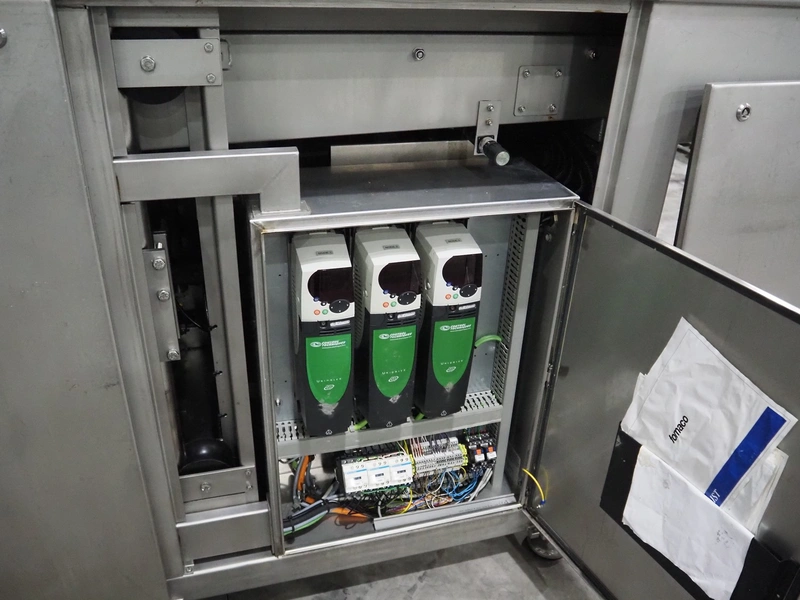 Fomaco injector, model: FGM 88 DC, machine number: 10861-2006, year of construction: 2006, 400 V, 3 Ph, 50 Hz, 63 A, 37.0 kW, air: 6.0 bar, plastic mesh belt, belt width: 720 mm, total dimensions: 2900 mm x 1300 mm x 2300 mm. Including Fomaco mobile filter tub, model: PFS 7 / 225 R, dimensions: 1900 mm x 700 mm x 950 mm, mobile frame for belt, dimensions frame: 2900 mm x 900 mm x 1250 mm. Incomplete.