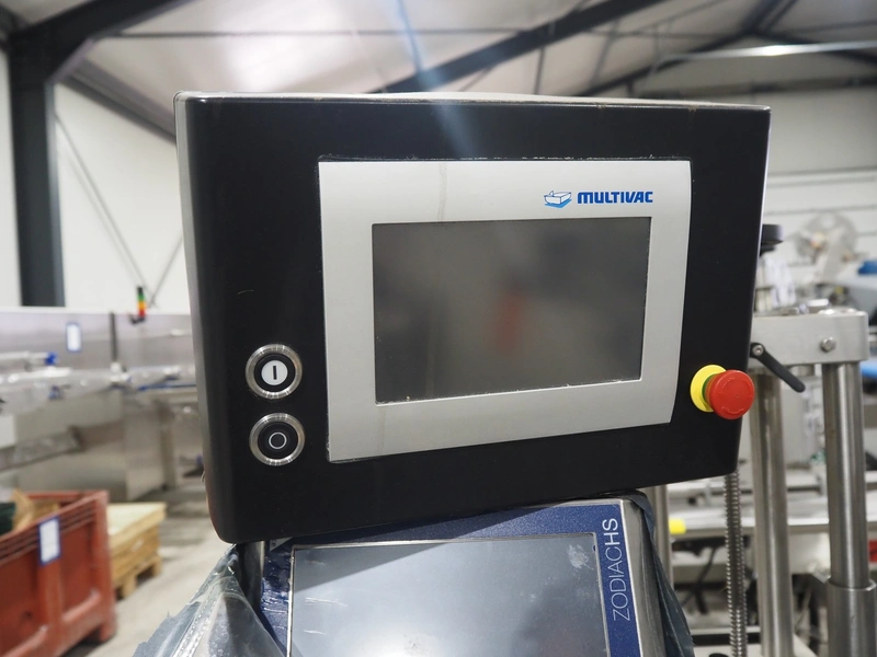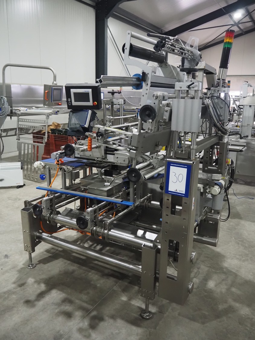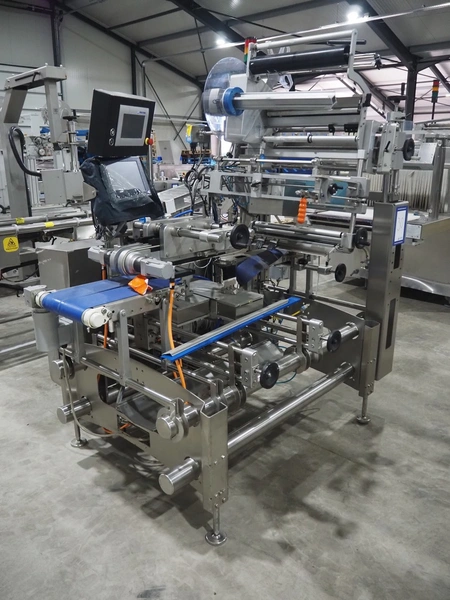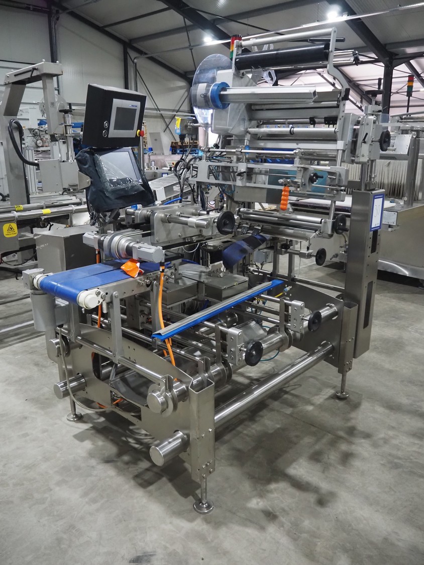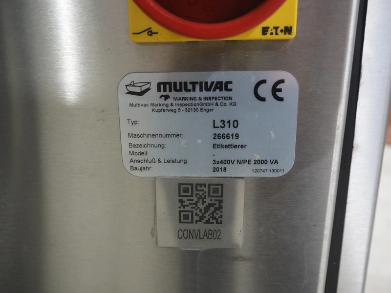 Multivac labeller, type: L310, machine number: 266619, year of construction: 2018, 400 V, 3 Ph, 2000 VA, belt width: (2x) 135 mm, 90 mm, total dimensions: 1800 mm x 1500 mm x 1980 mm.
