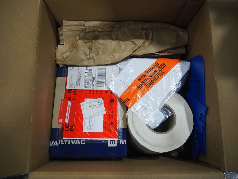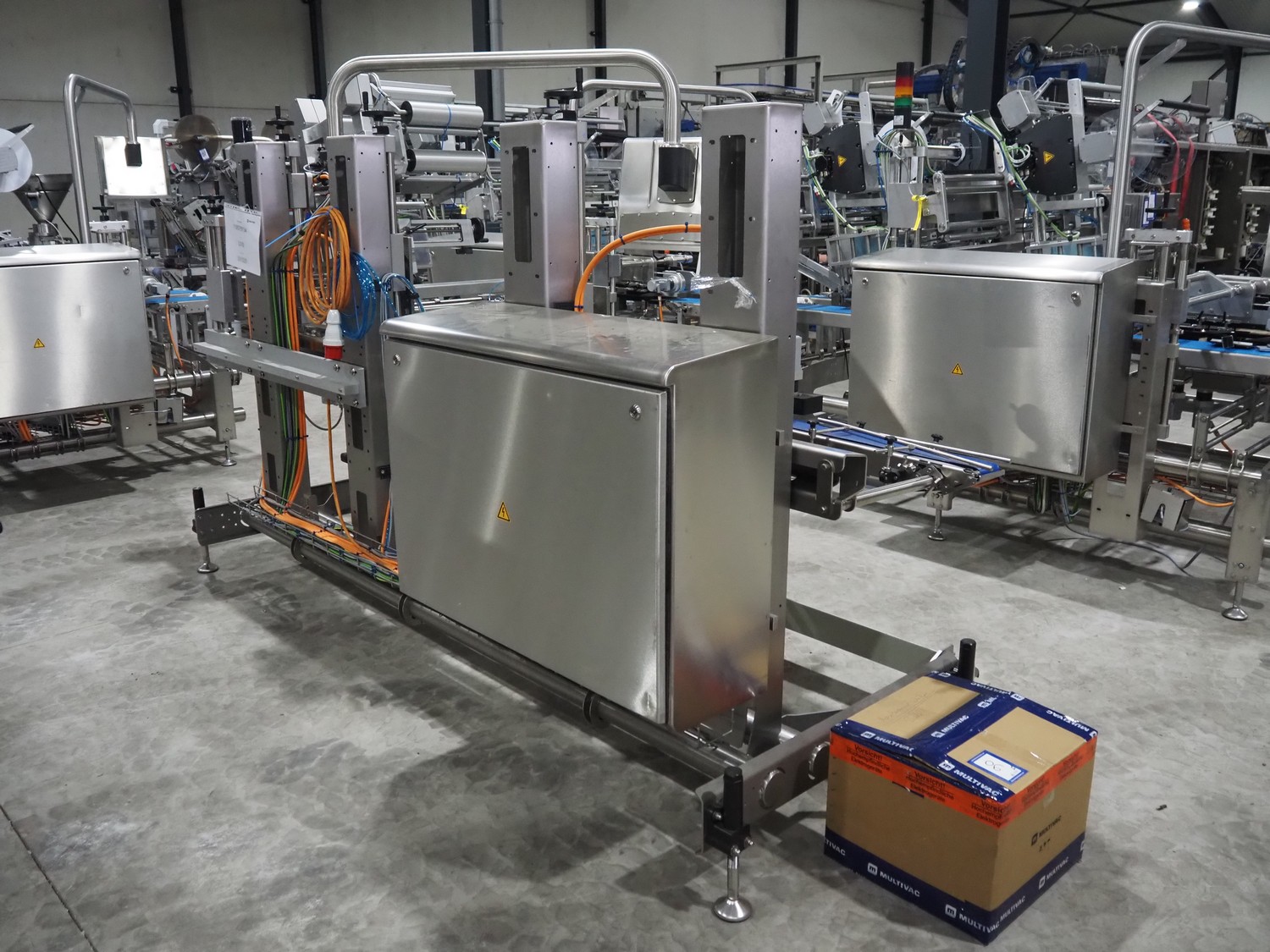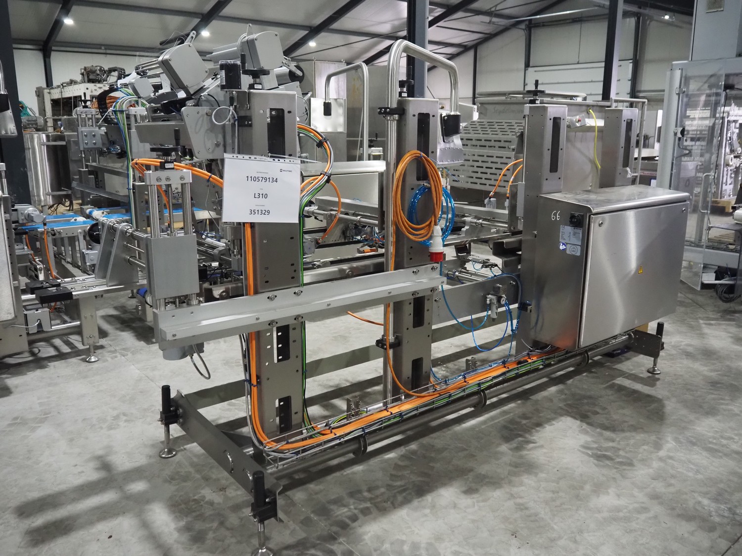 Multivac labelling machine, type: L310, serial number: 351329, year of construction: 2024, 400 V, 3 Ph, 50 Hz, 10 A, 2 kW, plastic belt, belt width: 90 mm, label width: 270 mm, total dimensions: 3850 mm x 1260 mm x 2000 mm.