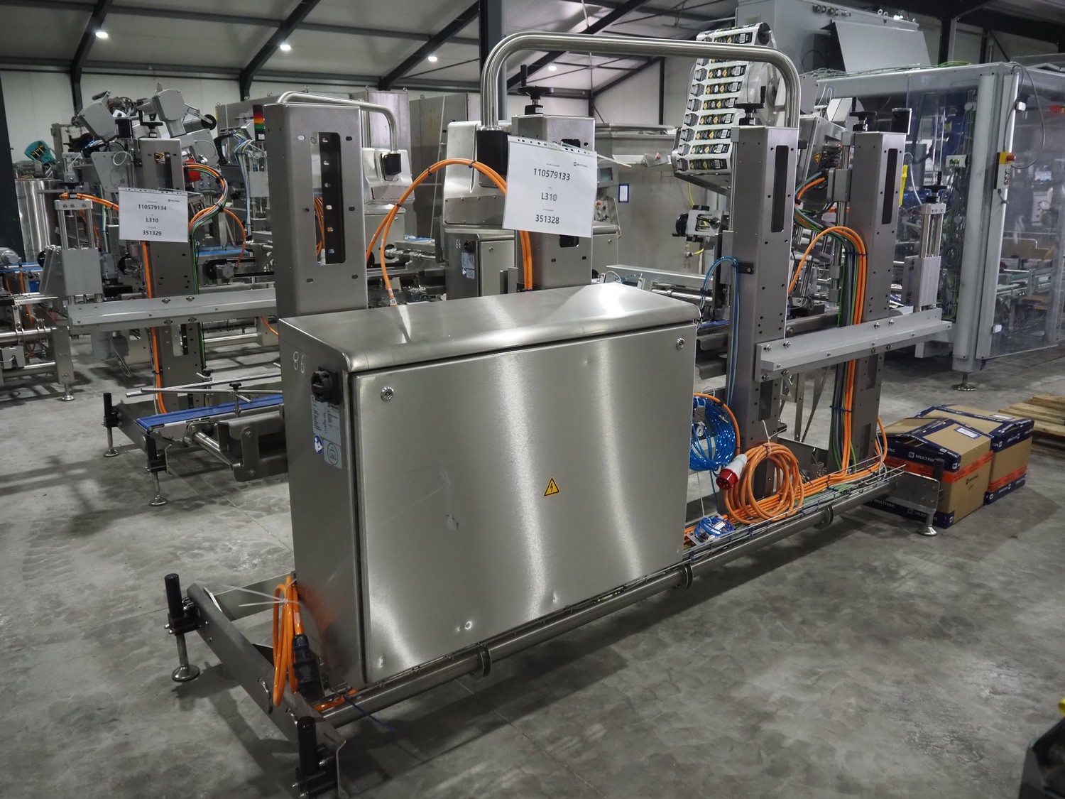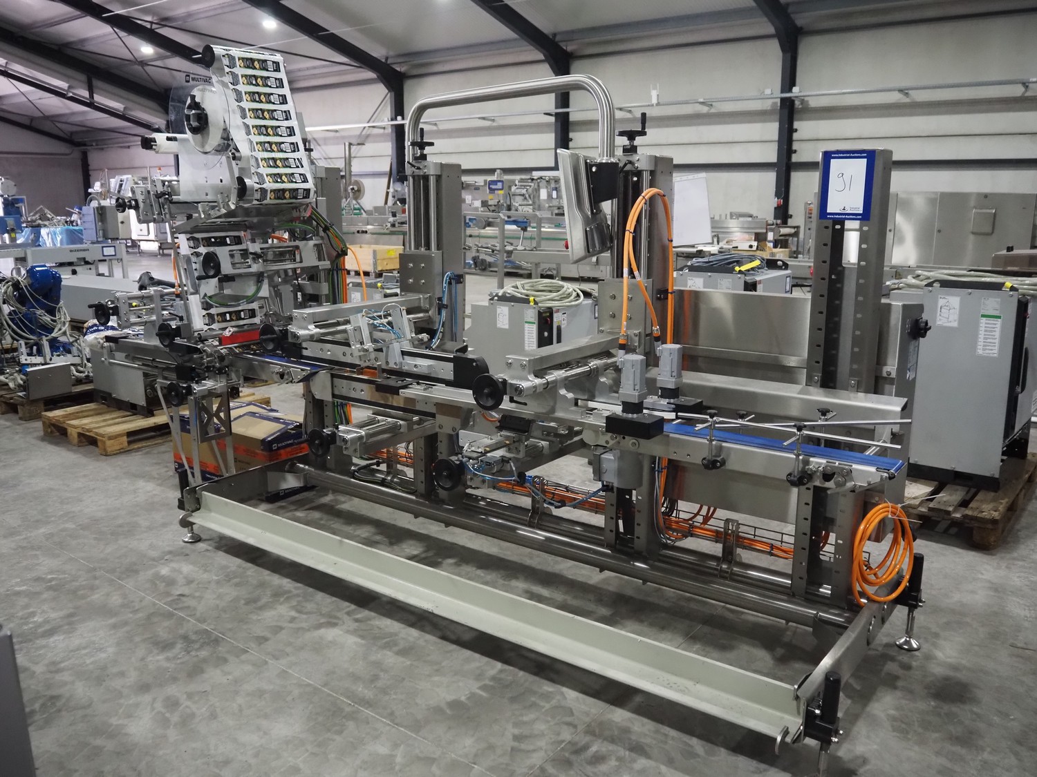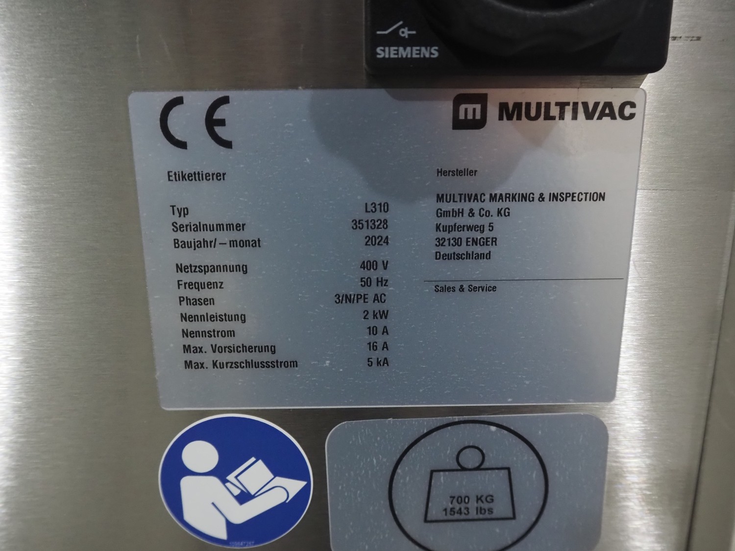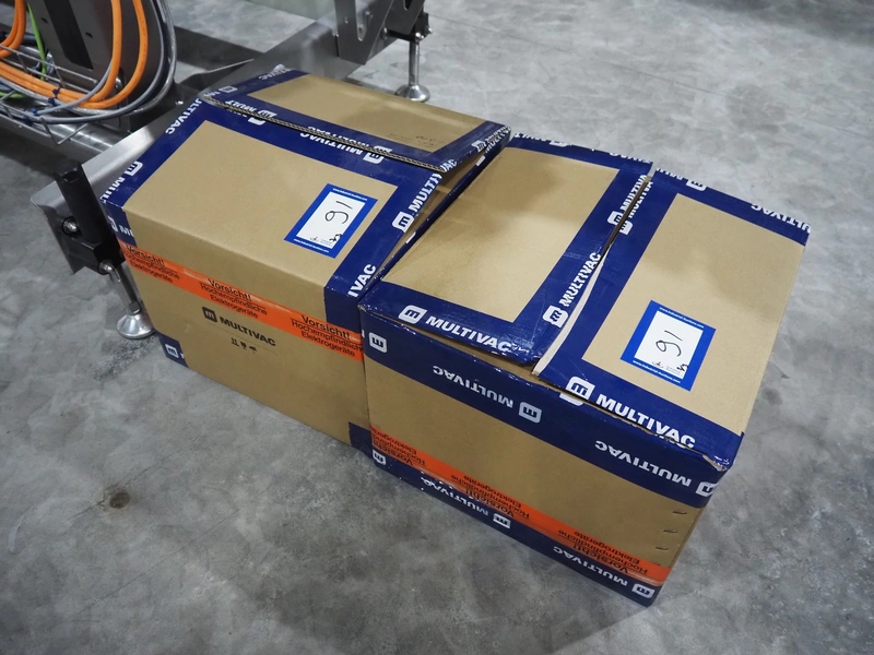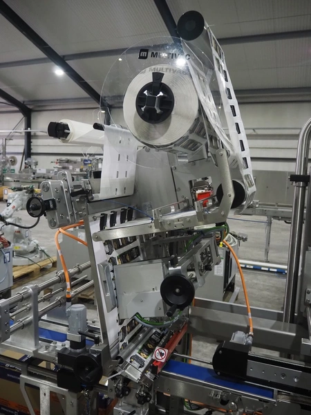Multivac labelling machine, type: L310, serial number: 351328, year of construction: 2024, 400 V, 3 Ph, 50 Hz, 10 A, 2 kW, plastic belt, belt width: 90 mm, label width: 270 mm, total dimensions: 3850 mm x 1260 mm x 2000 mm.