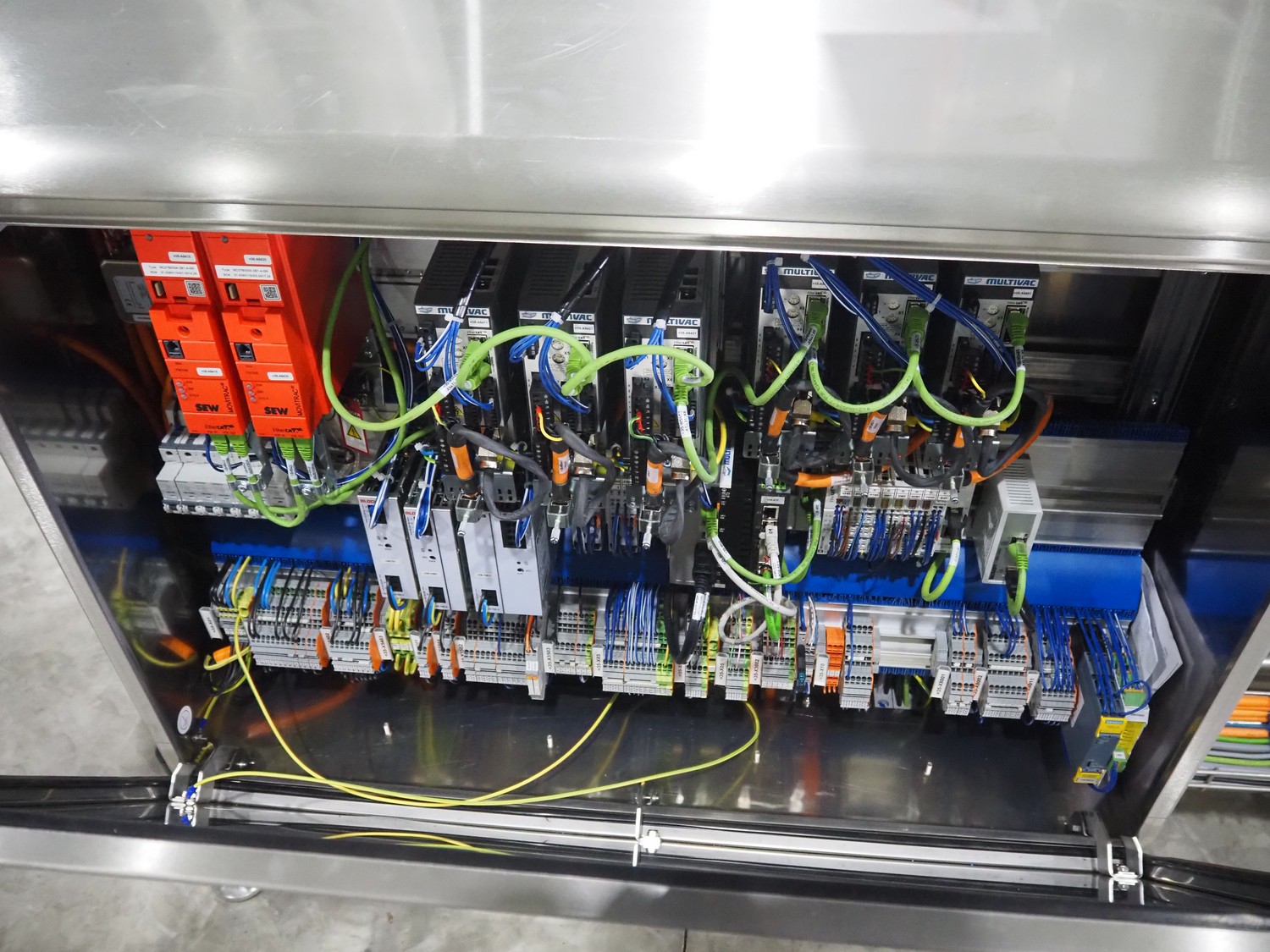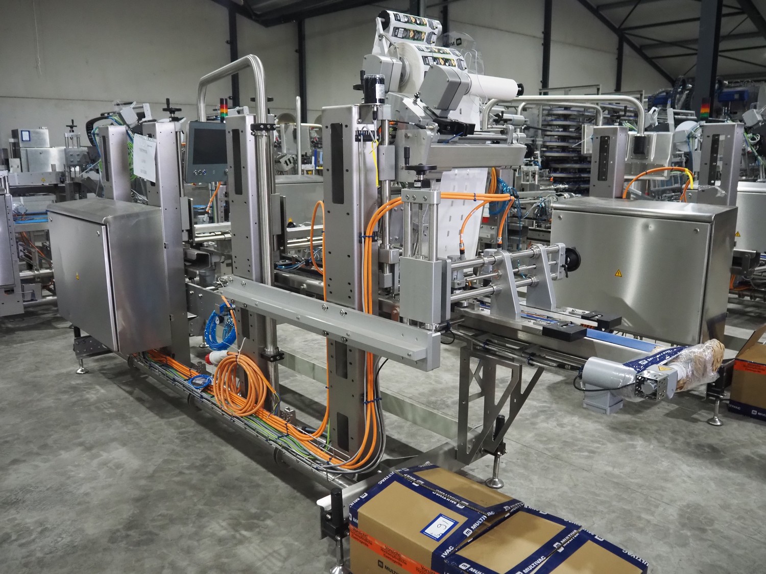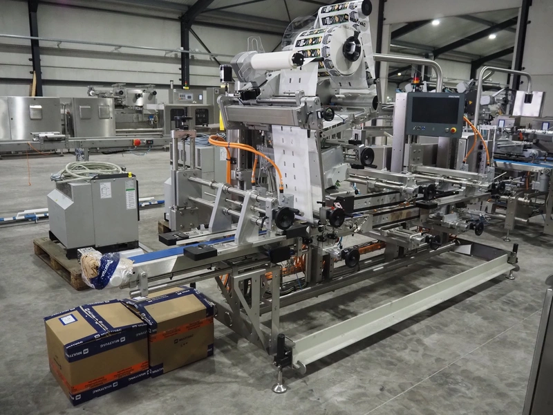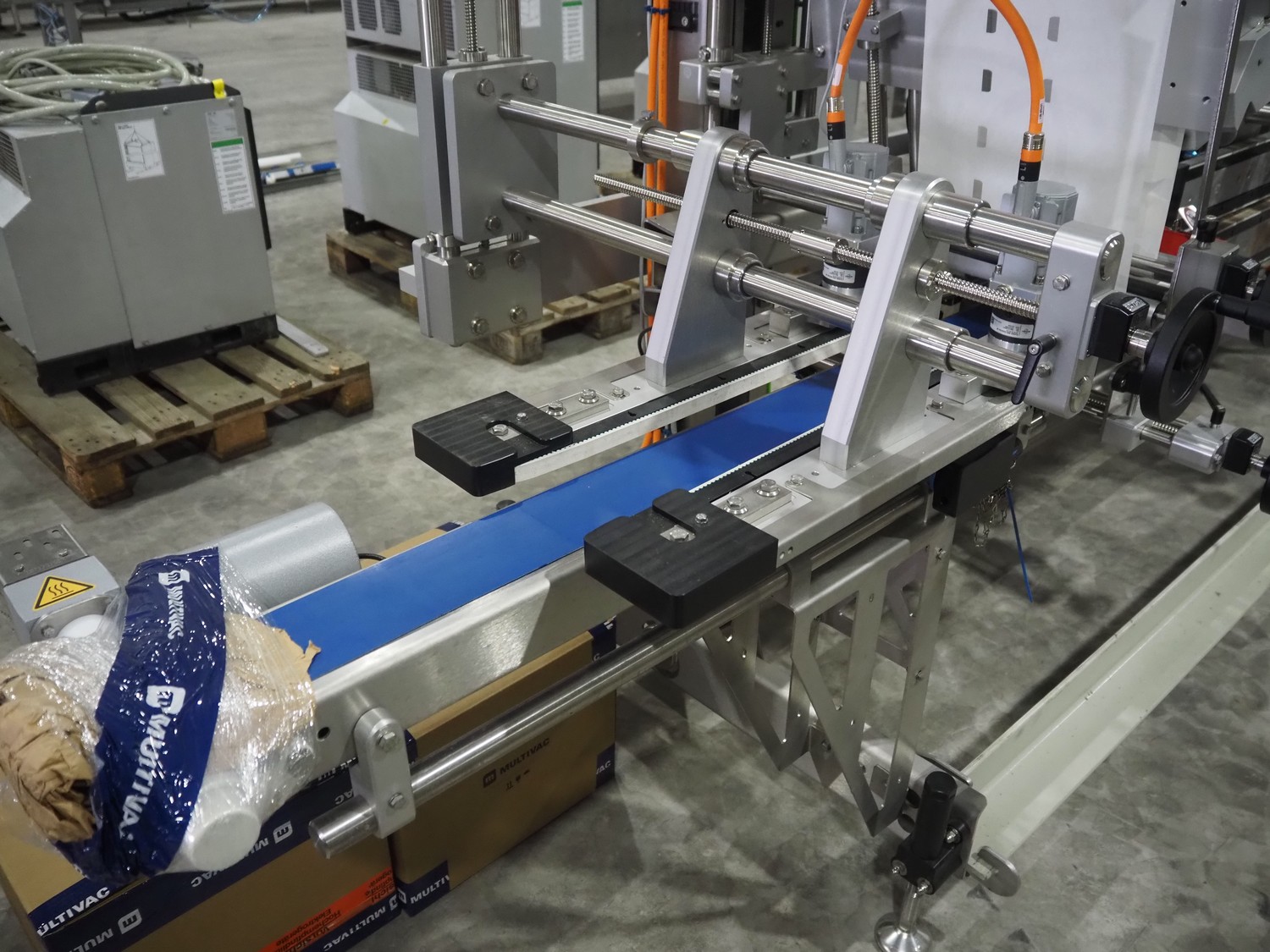 Multivac labelling machine, type: L310, serial number: 351328, year of construction: 2024, 400 V, 3 Ph, 50 Hz, 10 A, 2 kW, plastic belt, belt width: 90 mm, label width: 270 mm, total dimensions: 3850 mm x 1260 mm x 2000 mm.