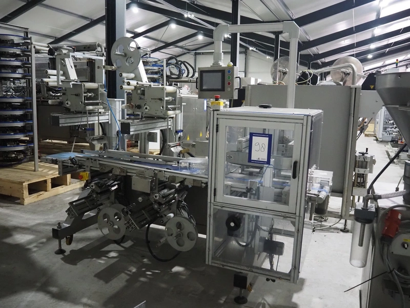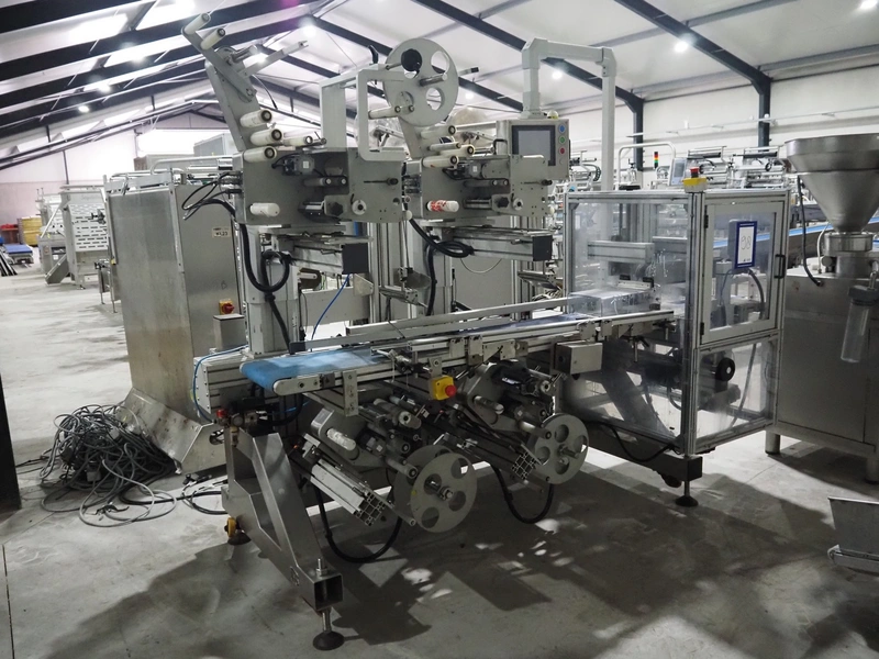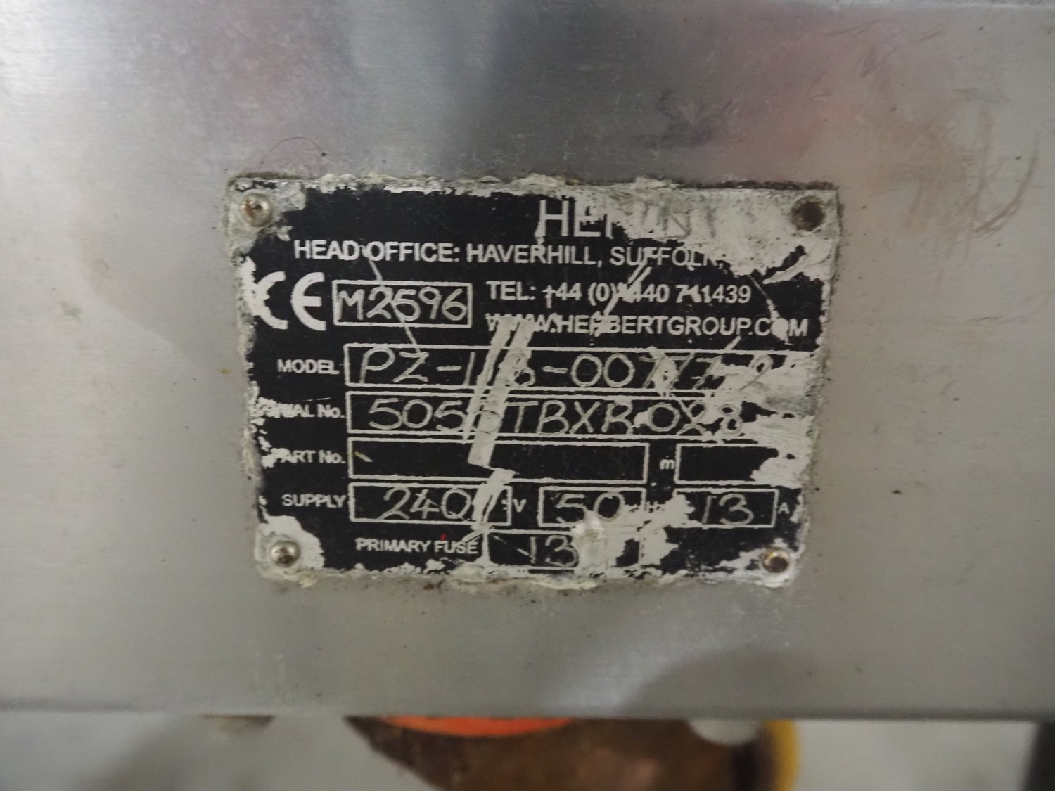Herbert labeller with double top and double bottom labeller, model: PZ-113-00777-2, serial number: 5055TBXR028, belt width: 285 mm, total dimensions: 2600 mm x 1200 mm x 2010 mm. Technical condition unknown.