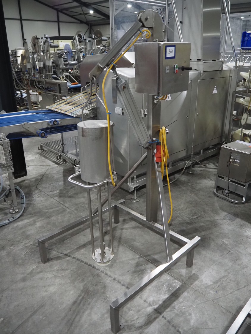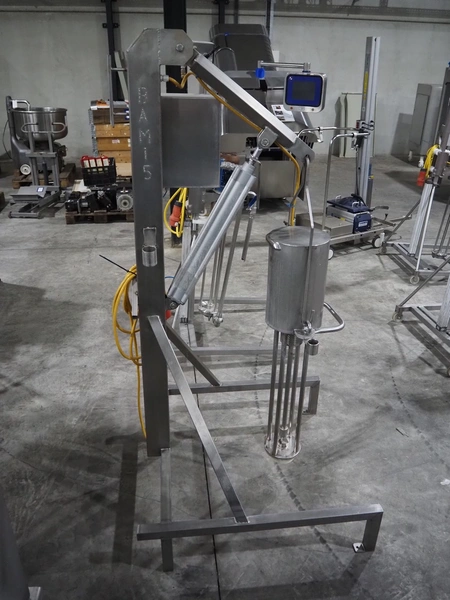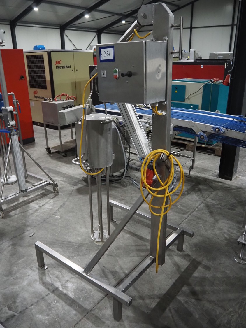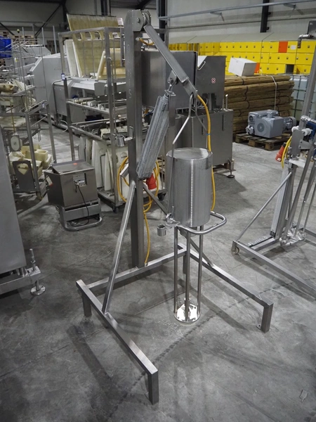 Silverson mixer on s/s frame, length mixing arm: 550 mm, total dimensions: 950 mm x 900 mm x 1840 mm.
