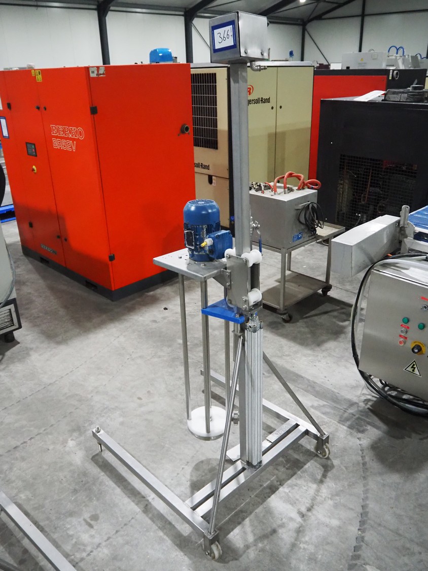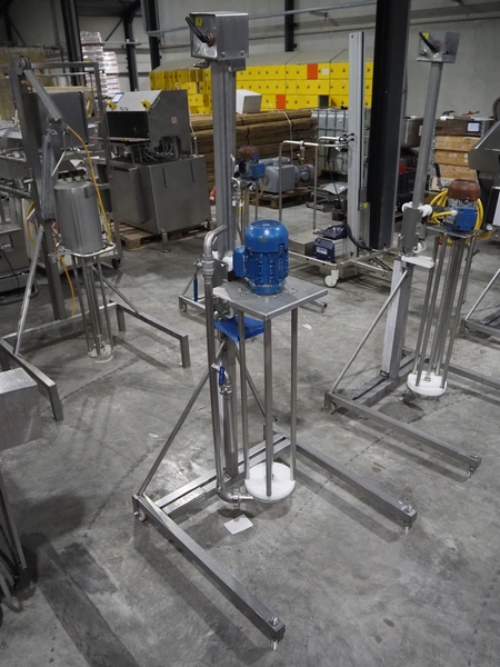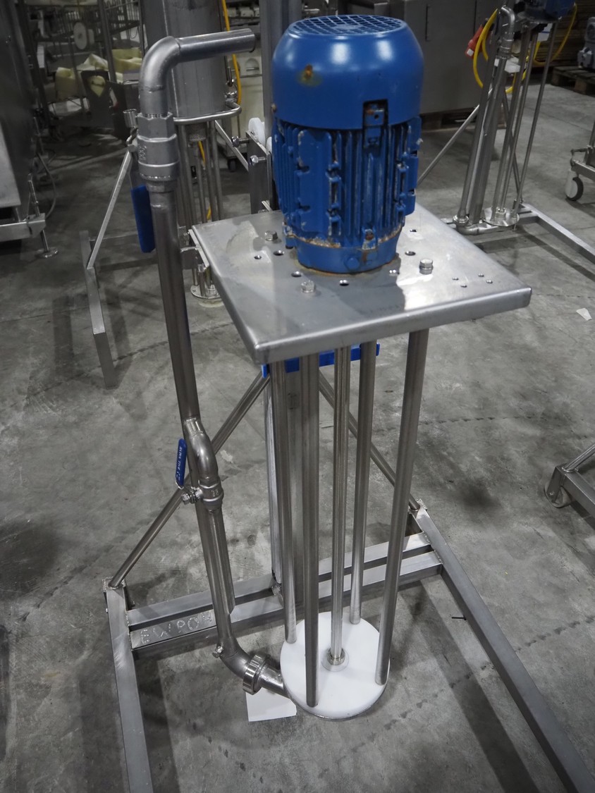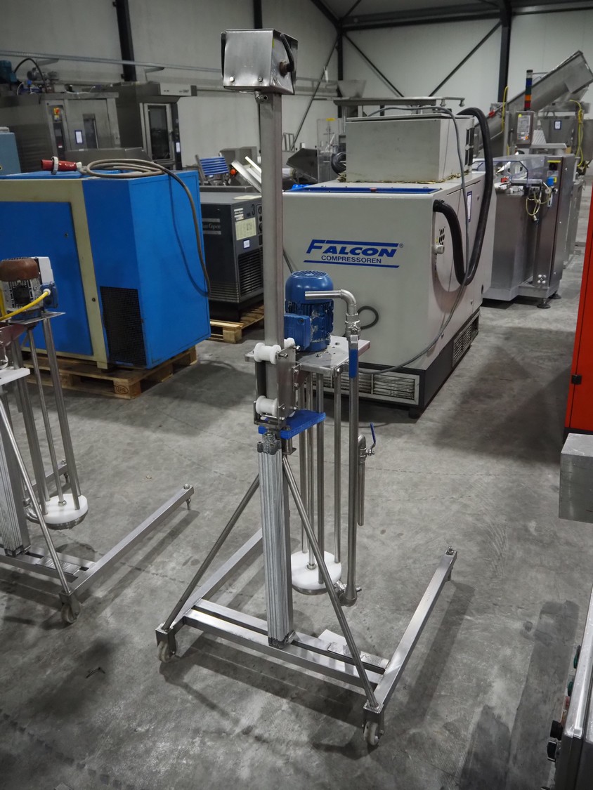 Silverson mixer on s/s mobile frame, length mixing arm: 820 mm, total dimensions: 850 mm x 775 mm x 1870 mm.