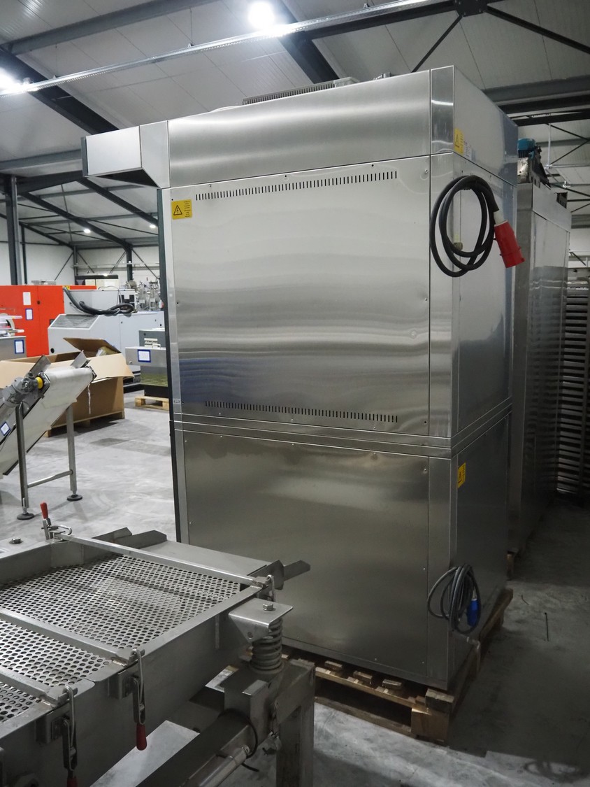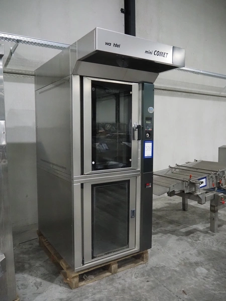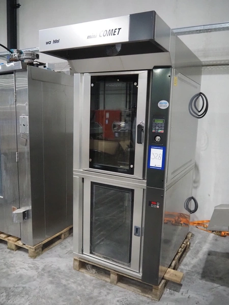 Wachtel oven, type: mini Comet 10/64. serial number: 23101BRR, year of construction: 04/2010, 400 V, 3 Ph, 50 Hz, 22,1 kW, 20 floors, (10x) top floor dimensions: 590 mm x 405 mm, (10x) lower floor dimensions: 800 mm x 600 mm, total dimensions: 1700 mm x 980 mm x 2220 mm.