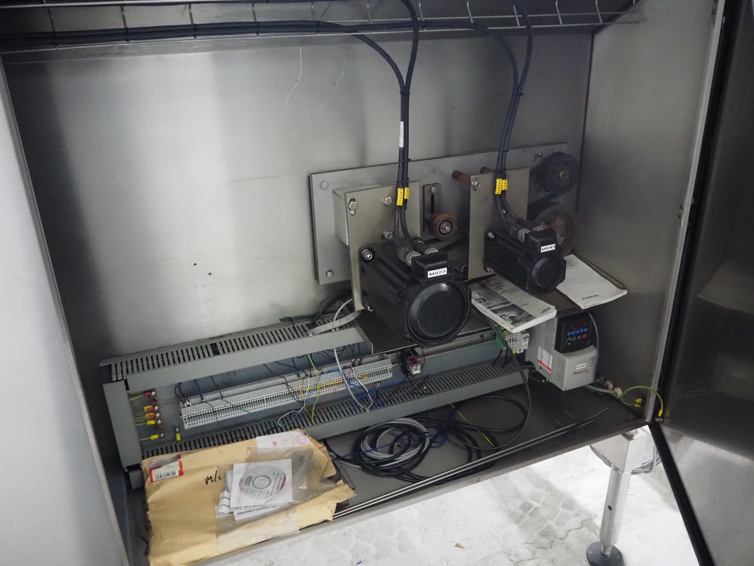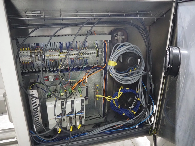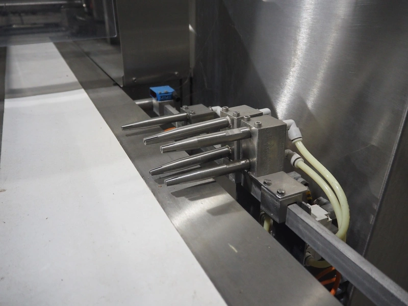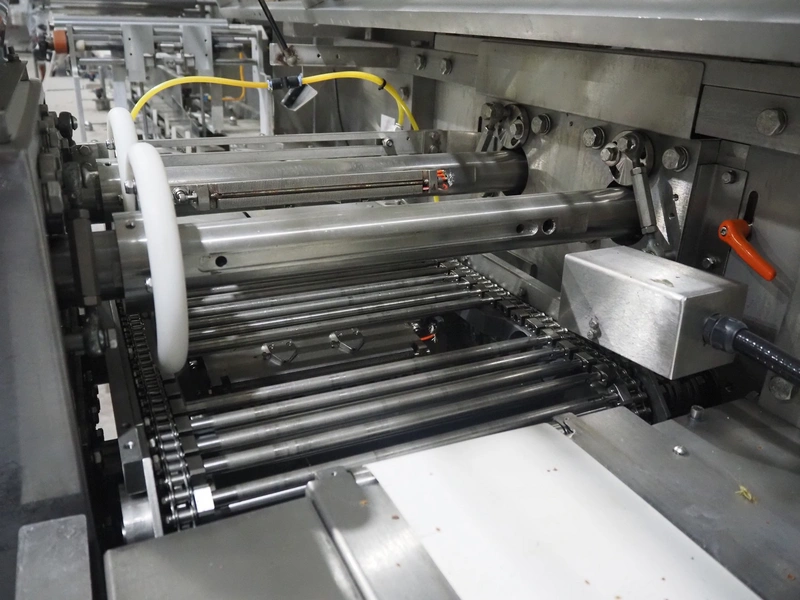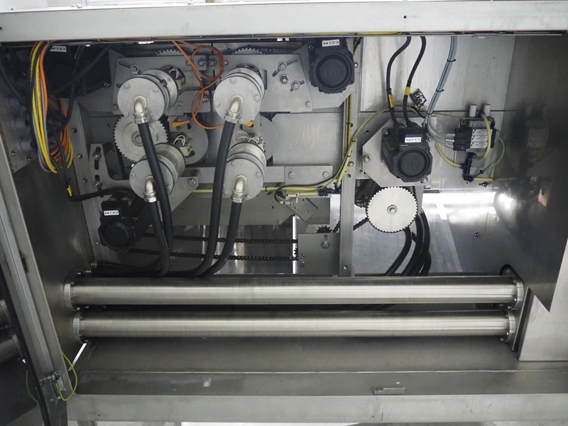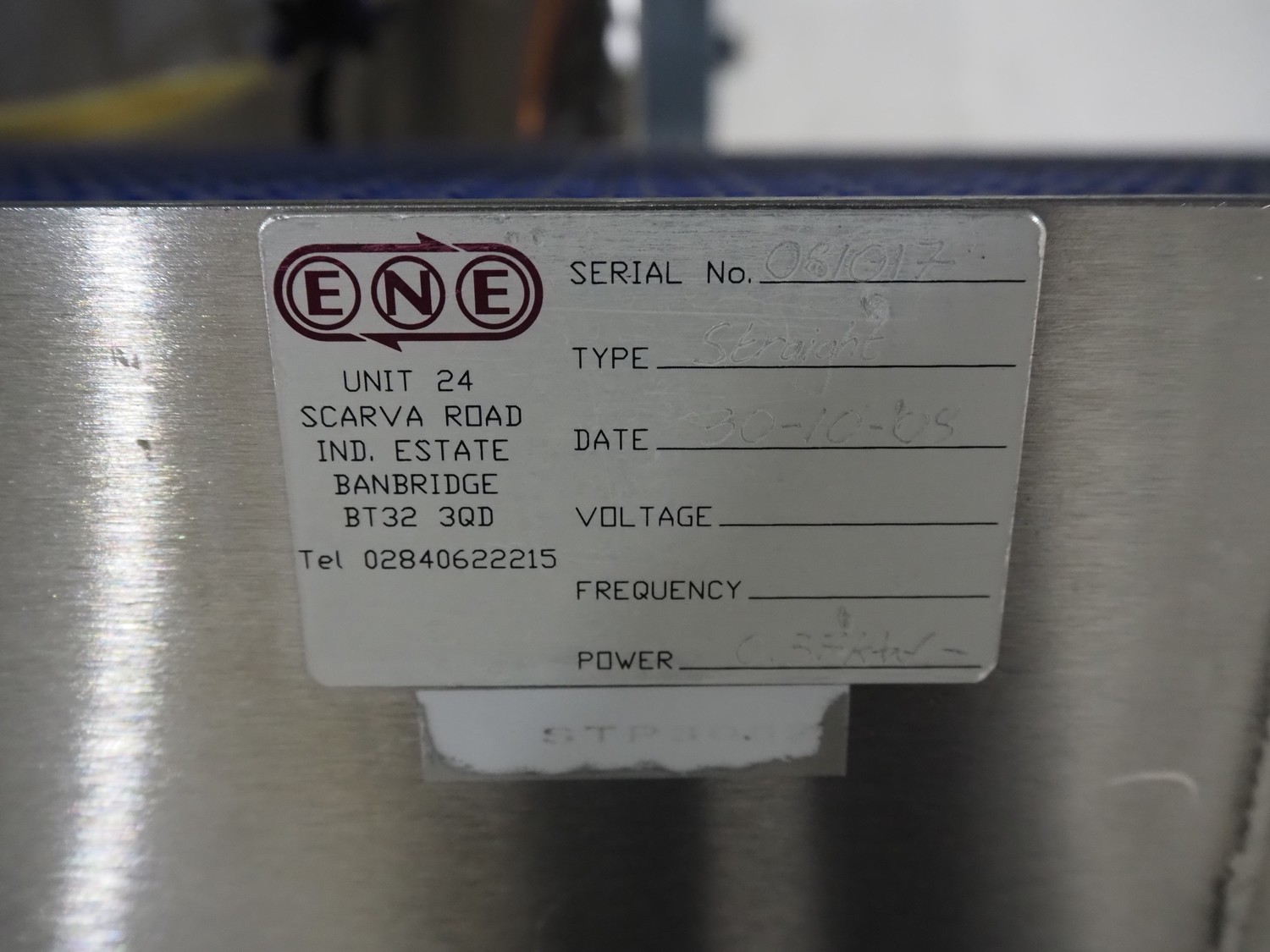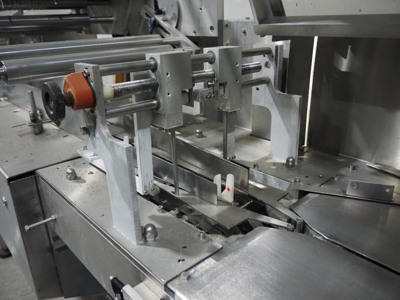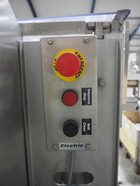 Bradman Lake Group dual feed flow packer, machine type: FT120CLX, serial number: 7098, year of construction: 2006, 415 V, 3 Ph, 50 Hz, 10 kW, plastic belt with dividers, belt width: (2x) 40 mm, divider height: 35 mm, distance between dividers: 300 mm, seal width: 230 mm, total dimensions: 5750 mm x 1200 mm x 2500 mm. Including infeed and outfeed belt, plastic infeed belt , belt width: 160 mm, total dimension: 3500 mm x 980 mm x 1550 mm. plastic outfeed belt, plastic mesh belt, belt width: 300 mm, total dimensions: 2600 mm x 600 mm x 1250 mm.