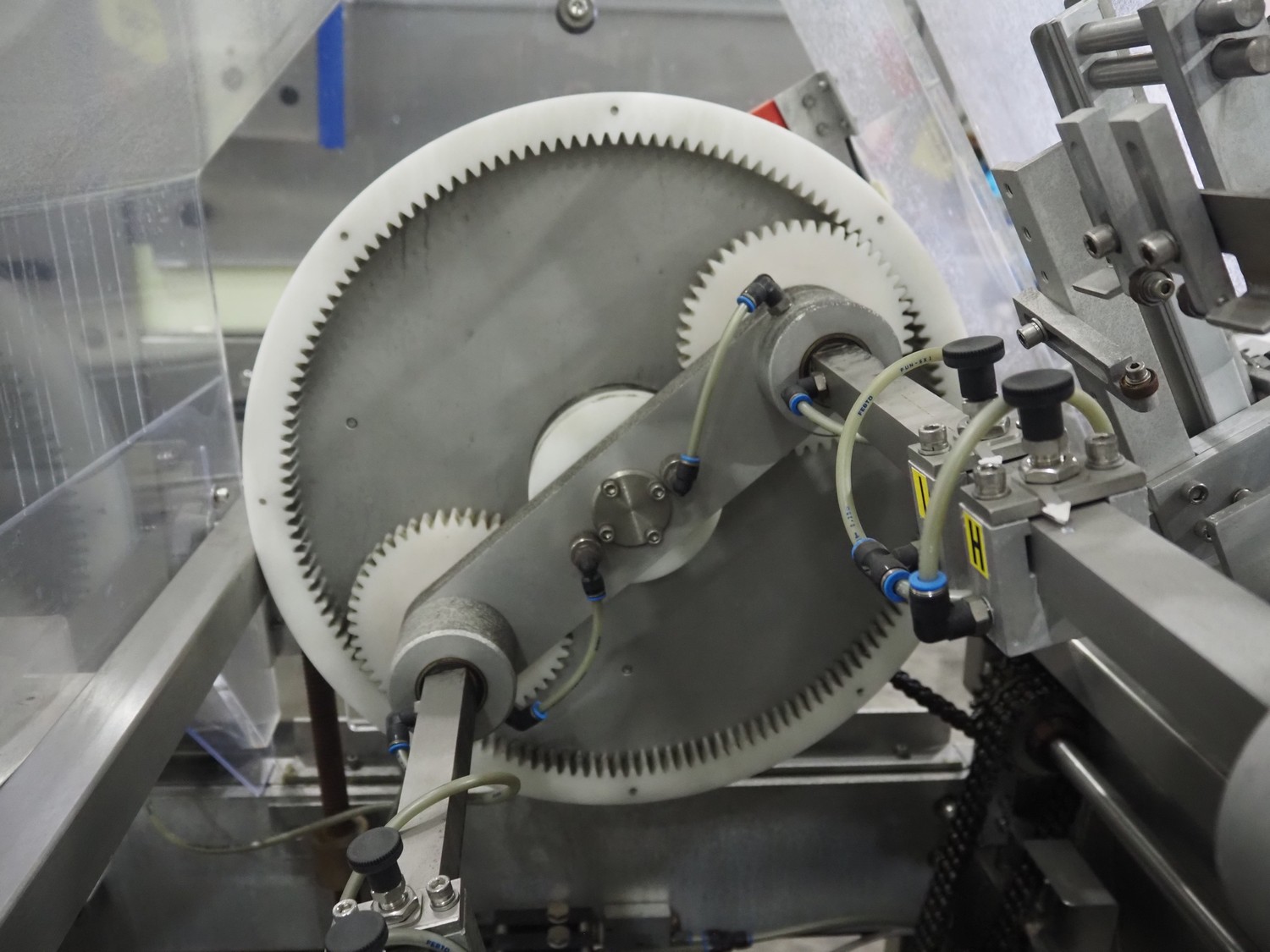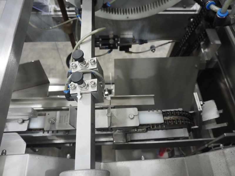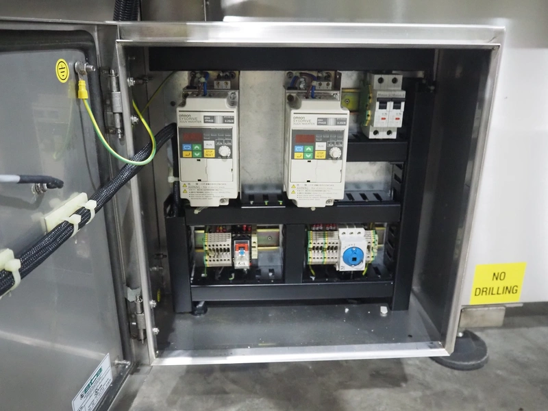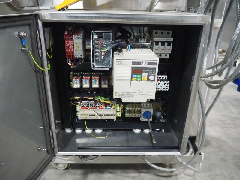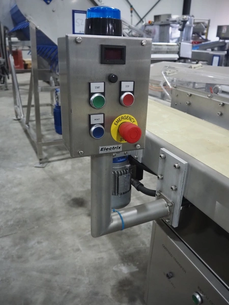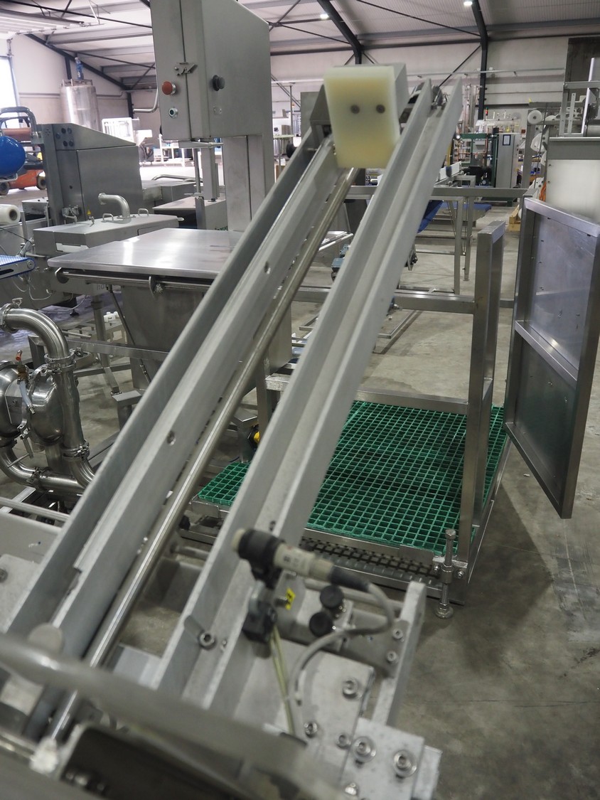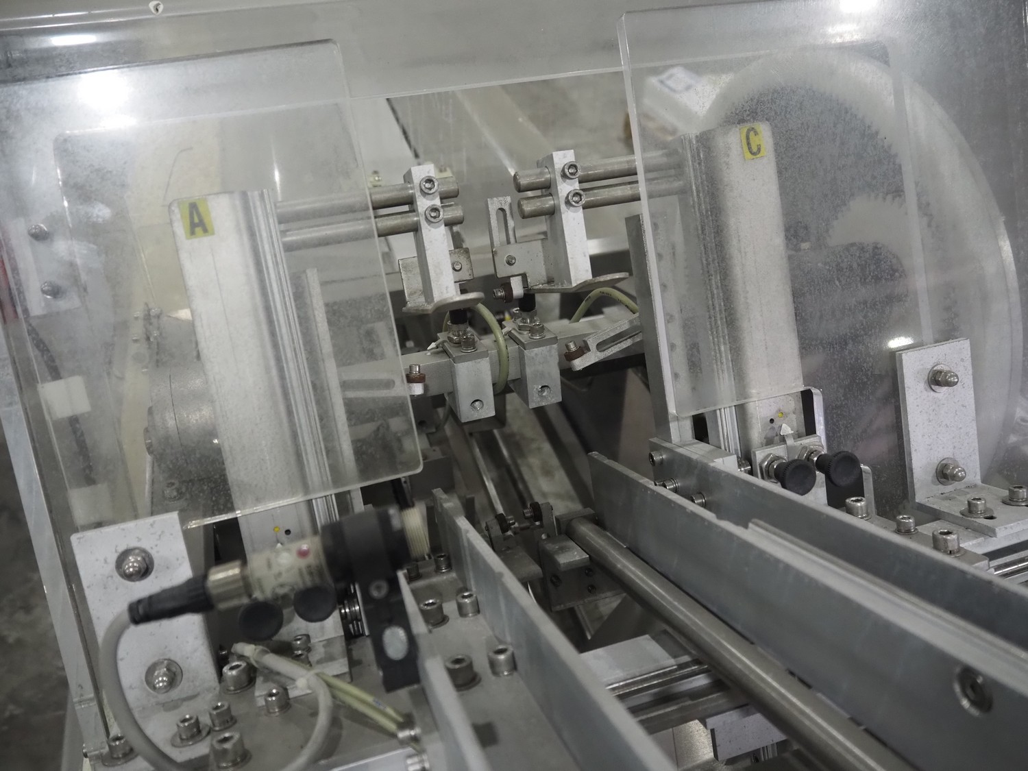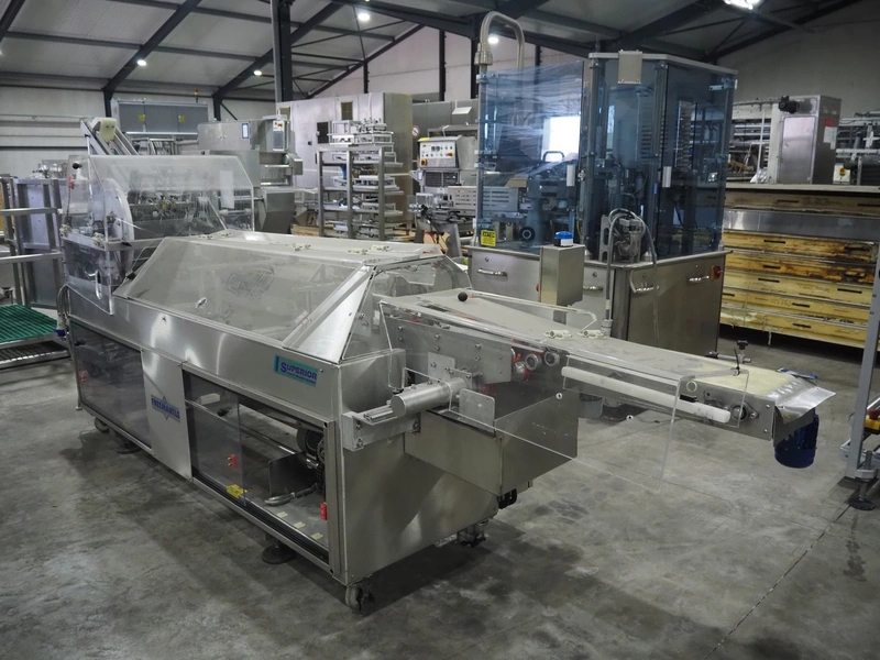 T. Freemantle Ltd. mobile semi automatic pre-glued sleever, model: S11, serial number: 03-178, year of construction: 03/2004, 240 V, 1 Ph, plastic belt, belt width: 250 mm, total dimensions: 4200 mm x 1200 mm x 1700 mm.