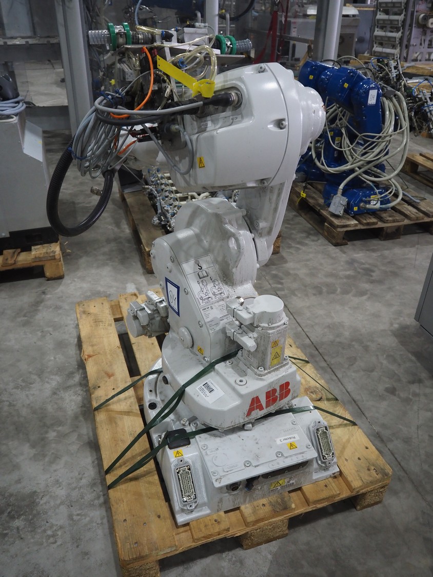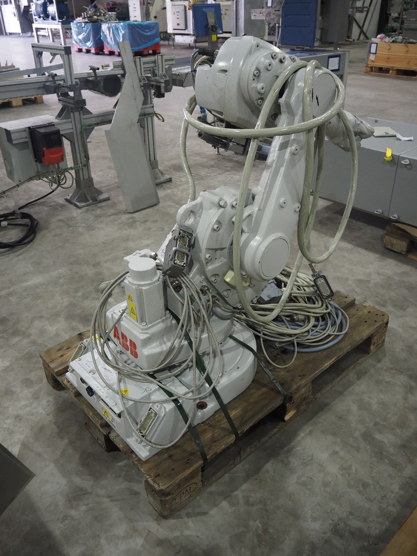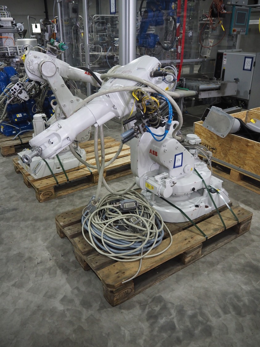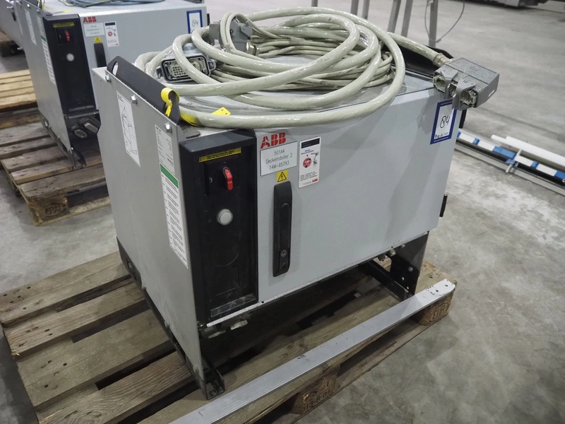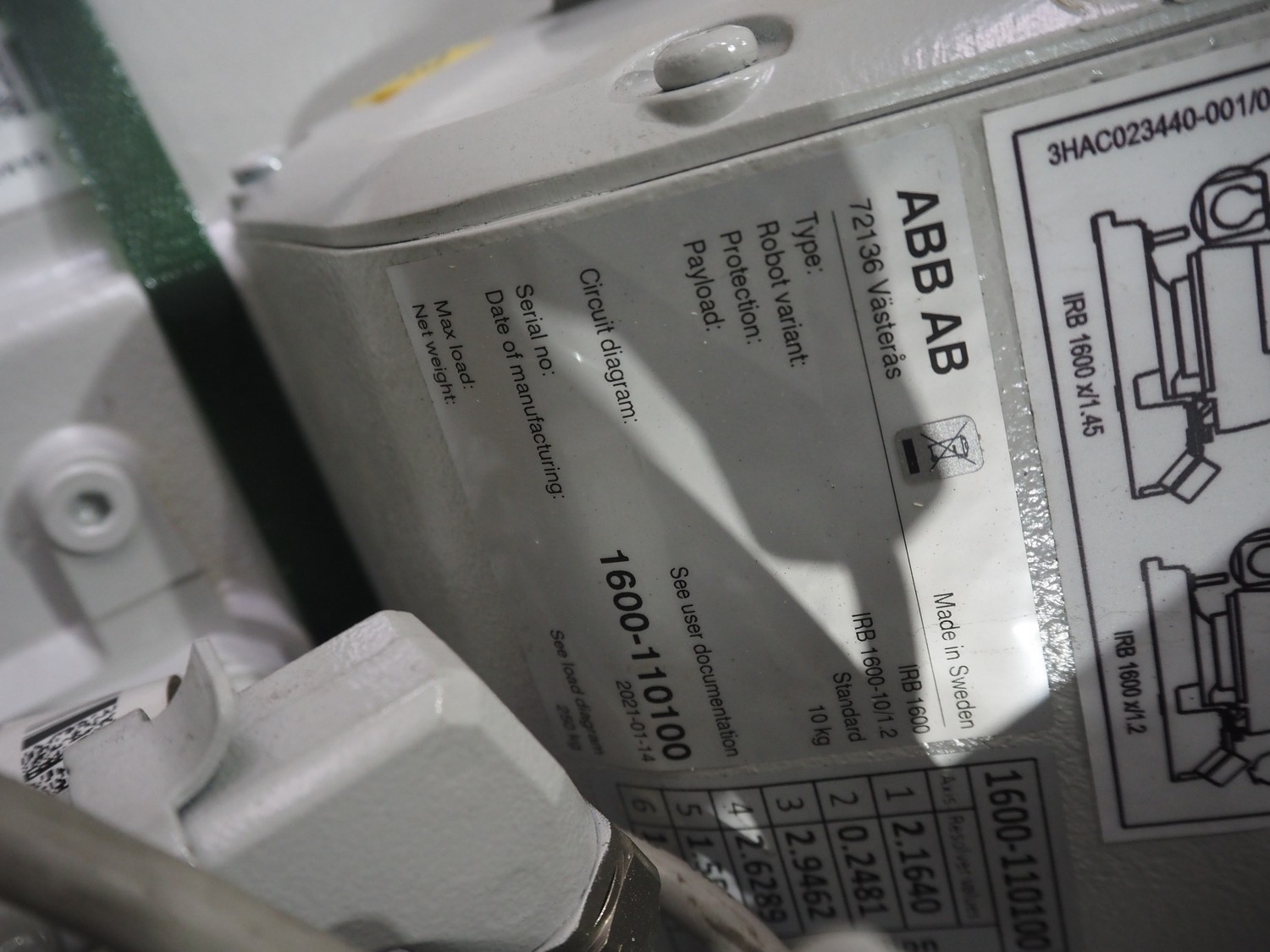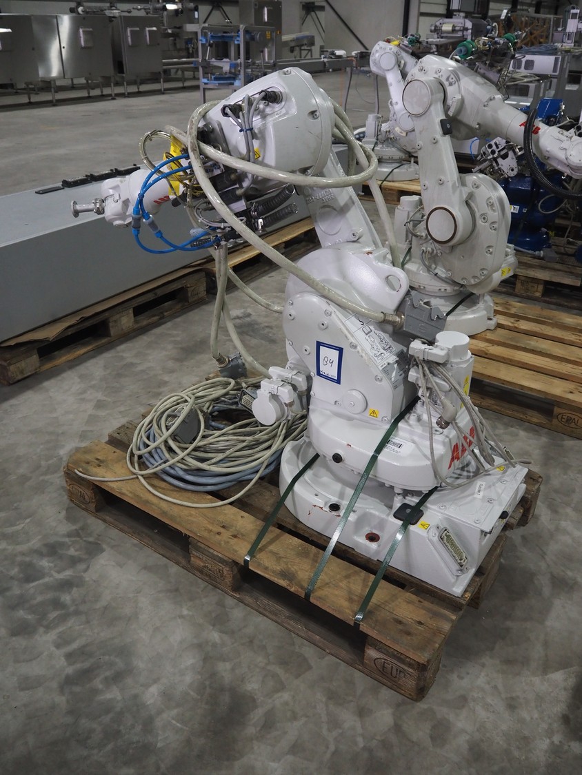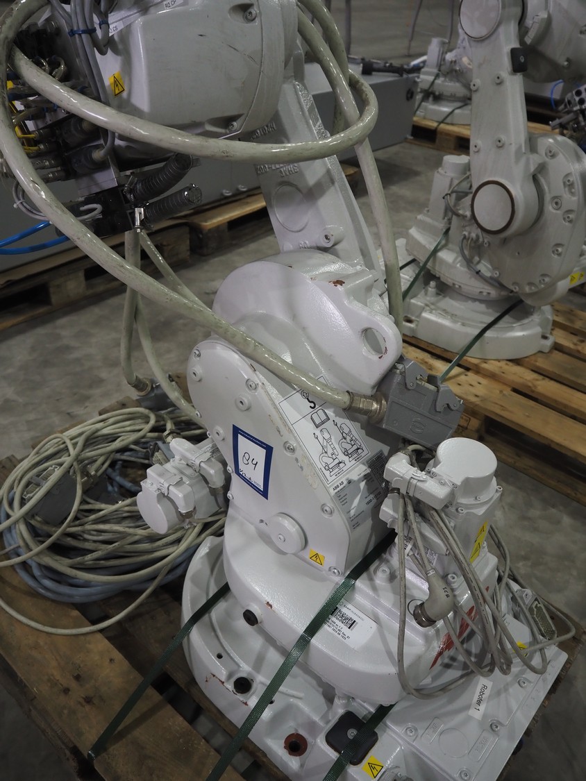 5 ABB AB robot arms, type: (3x) IRB 1600, robot variant: IRB 1600-10/1.2, year of construction: 01/2021 kg, payload: 10 kg, net weight: 250 kg, dimensions: 1400 mm x 5600 mm x 1100 mm, type (2x) IRB 140 M2004, robot variant: IRB 140 T-6/0.8, year of construction: 10/2012, net weight: 98 kg, dimensions: 800 mm x 450 mm x 810 mm, power unit, dimensions: 2850 mm x 800 mm x 500 mm, 5 robot controllers, type: IRC5 M2004, year of construction: 130 kg, year of construction: 10/2012.