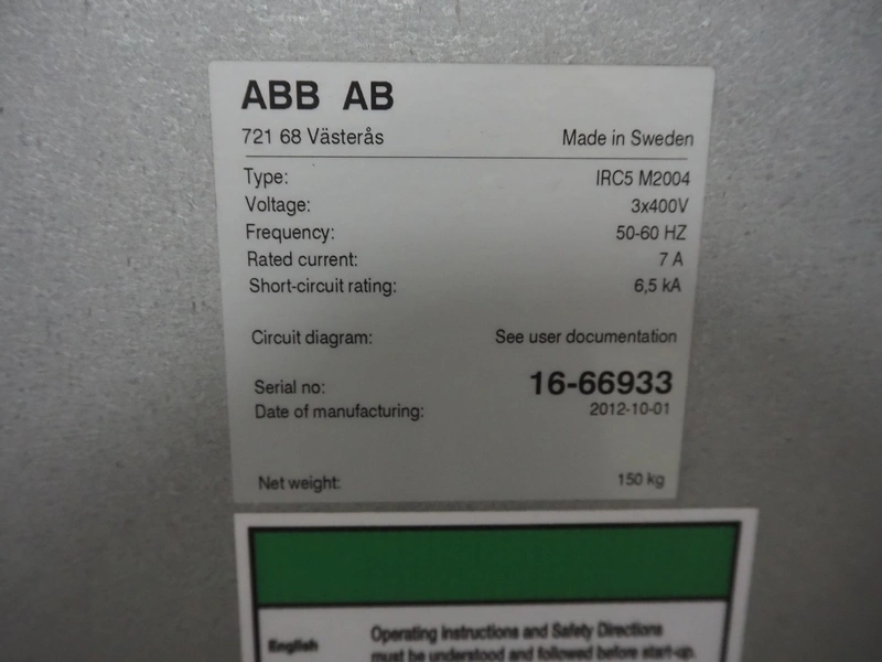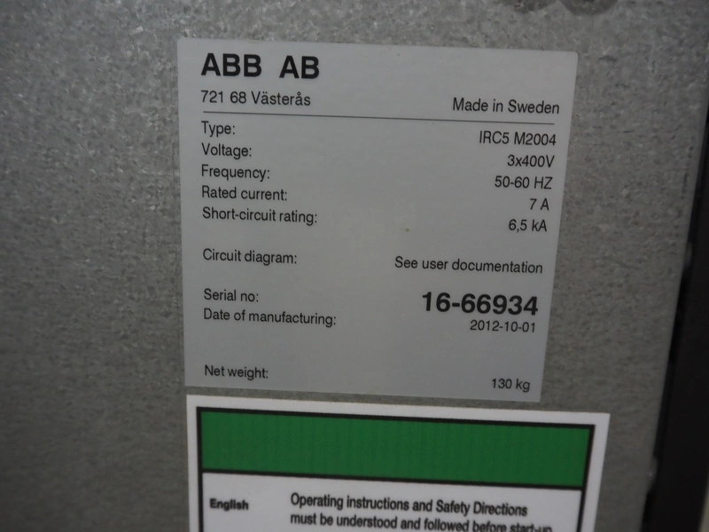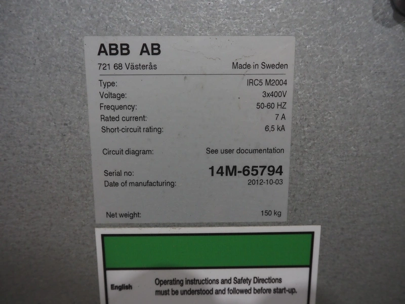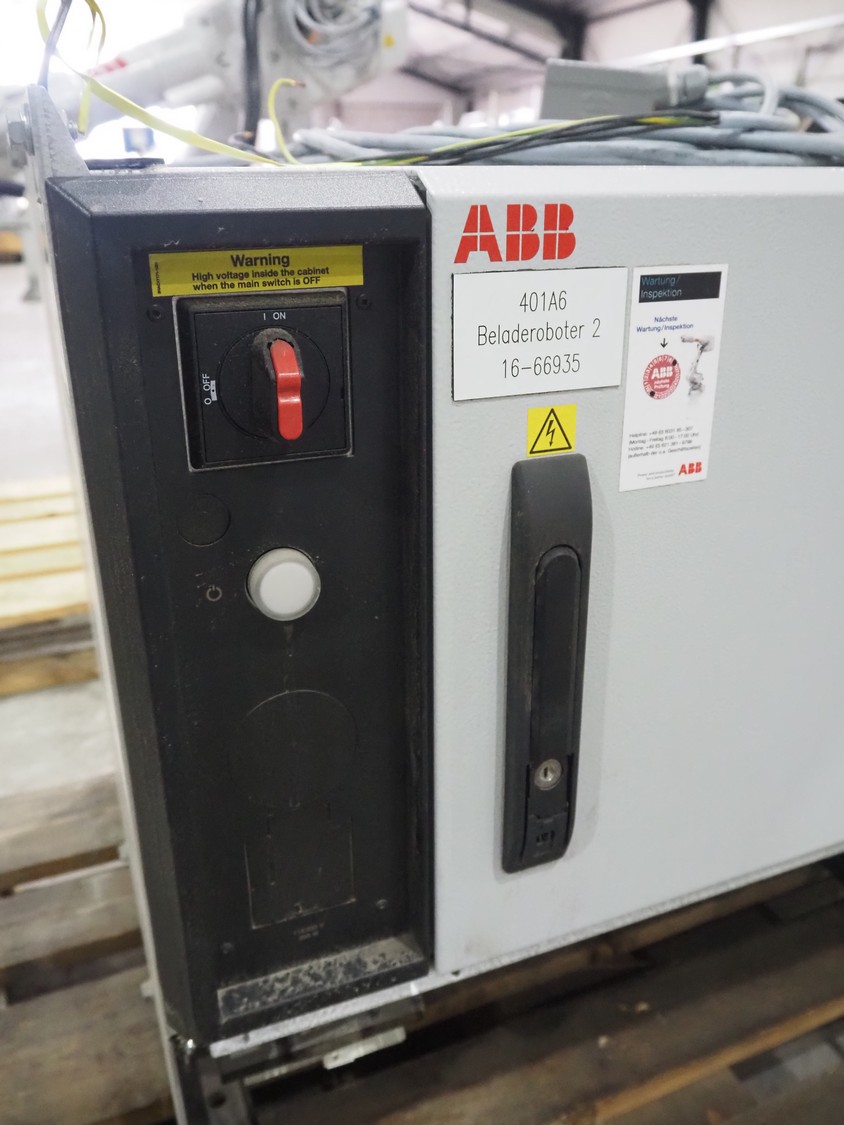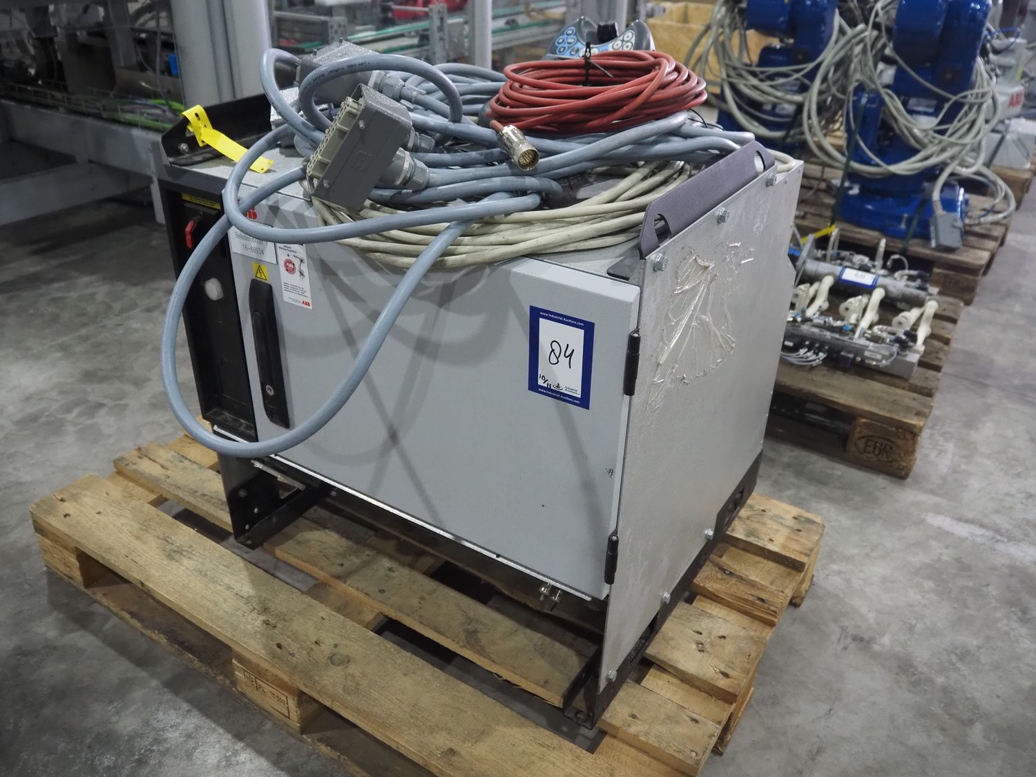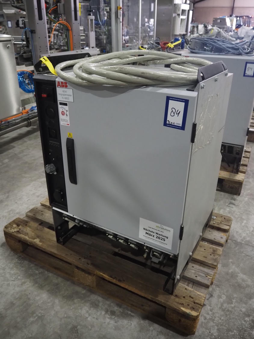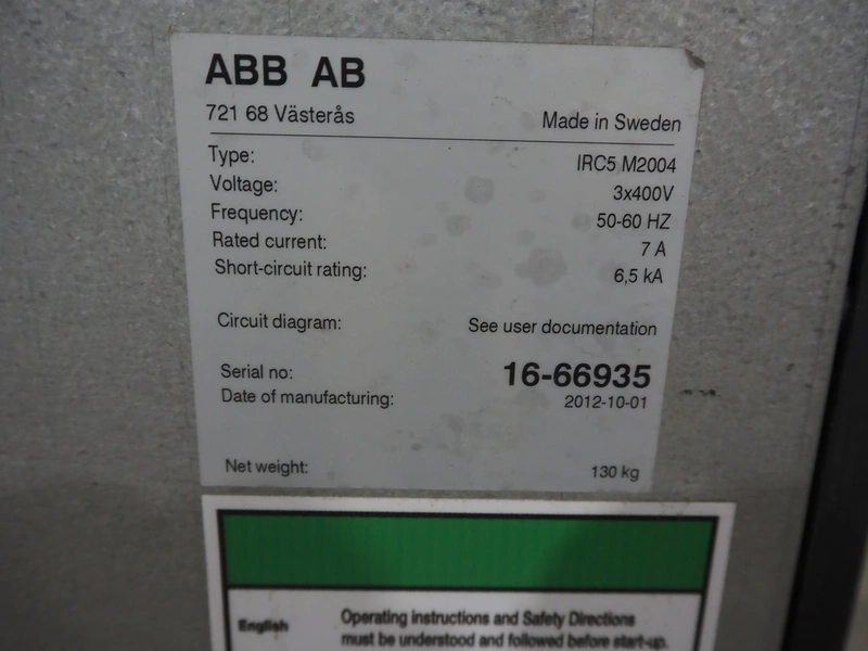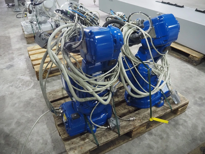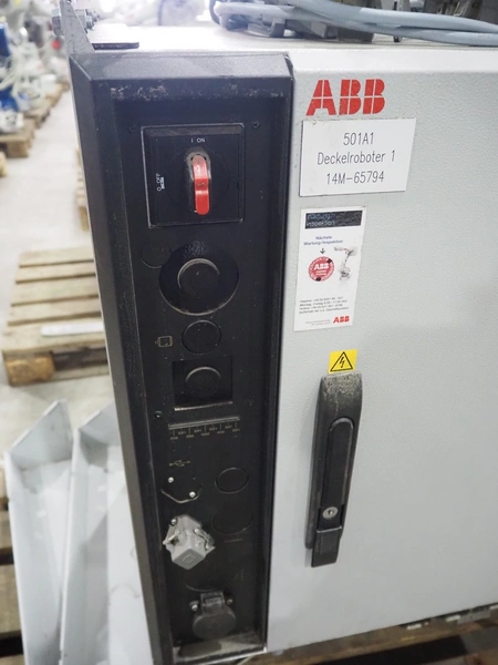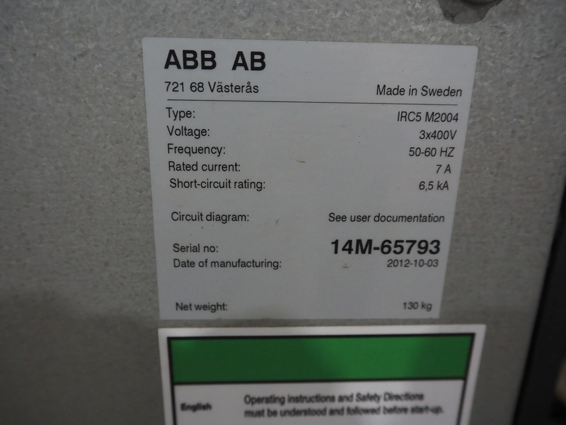 5 ABB AB robot arms, type: (3x) IRB 1600, robot variant: IRB 1600-10/1.2, year of construction: 01/2021 kg, payload: 10 kg, net weight: 250 kg, dimensions: 1400 mm x 5600 mm x 1100 mm, type (2x) IRB 140 M2004, robot variant: IRB 140 T-6/0.8, year of construction: 10/2012, net weight: 98 kg, dimensions: 800 mm x 450 mm x 810 mm, power unit, dimensions: 2850 mm x 800 mm x 500 mm, 5 robot controllers, type: IRC5 M2004, year of construction: 130 kg, year of construction: 10/2012.