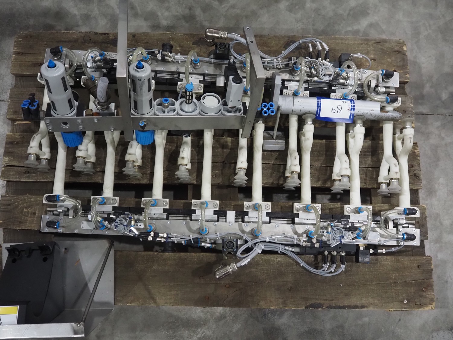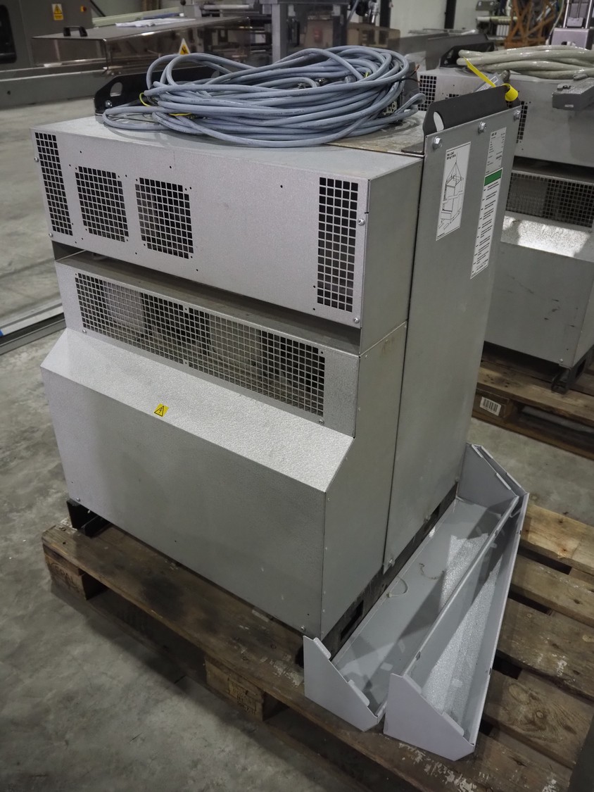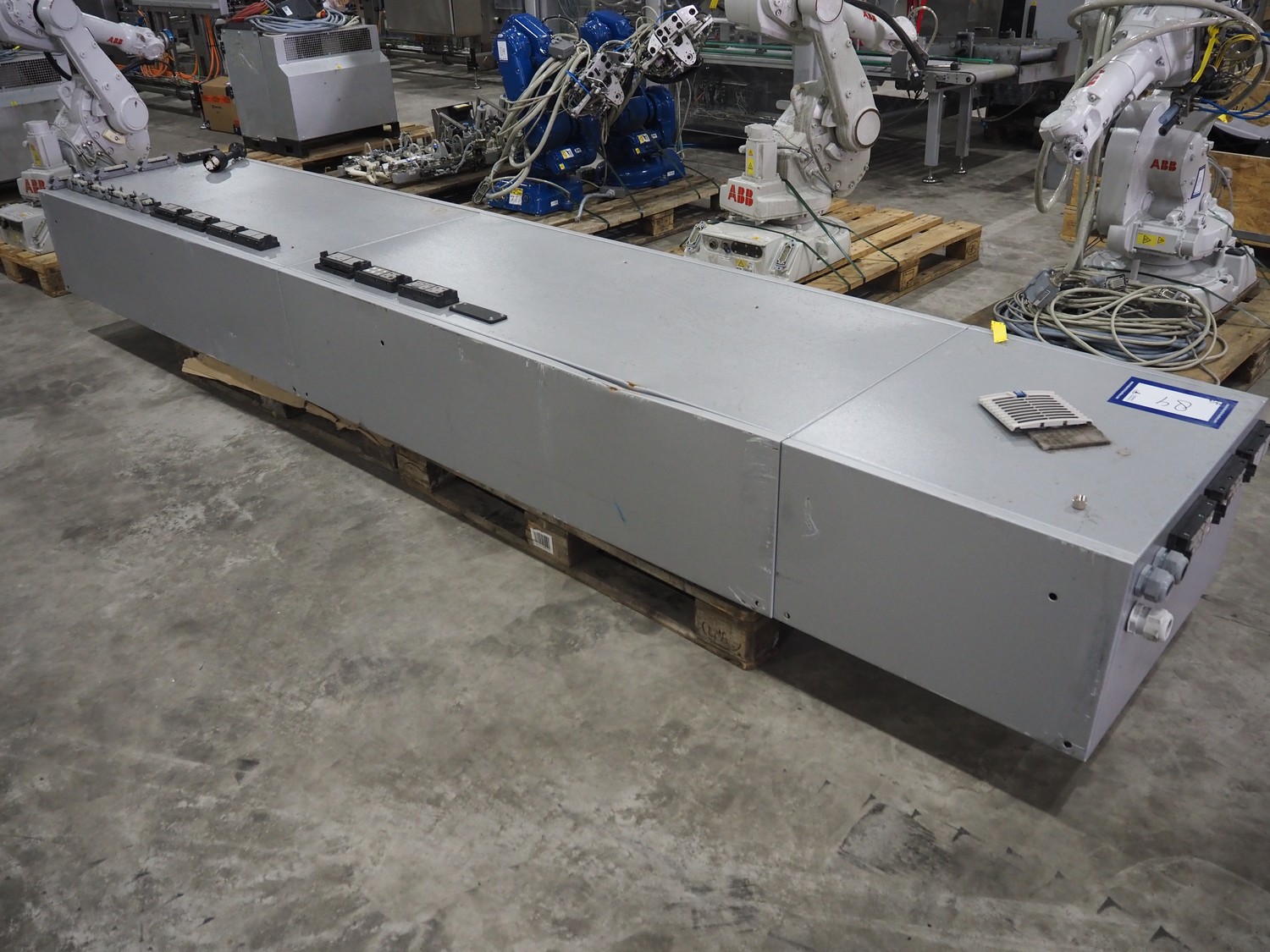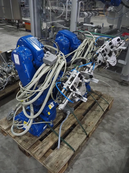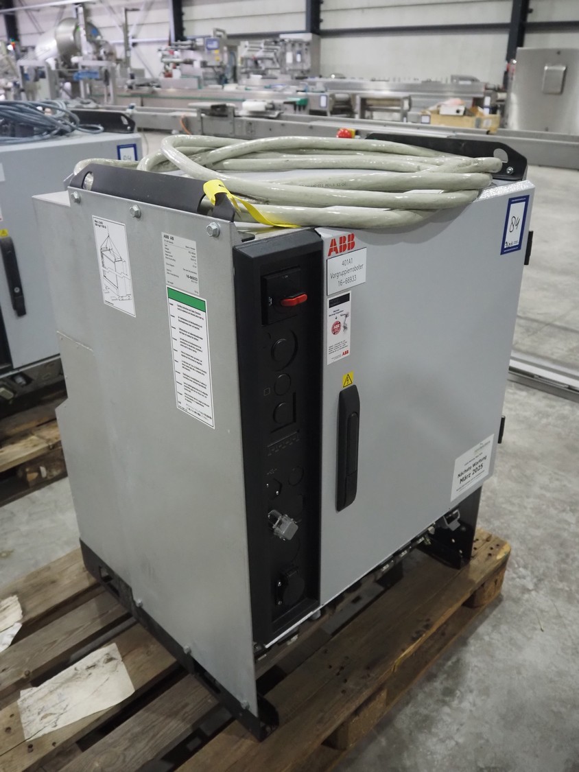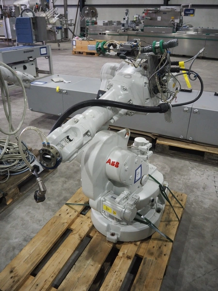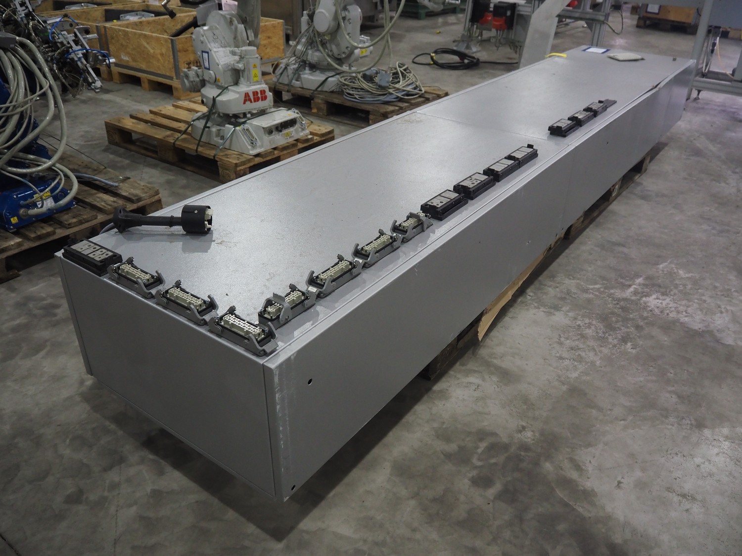 5 ABB AB robot arms, type: (3x) IRB 1600, robot variant: IRB 1600-10/1.2, year of construction: 01/2021 kg, payload: 10 kg, net weight: 250 kg, dimensions: 1400 mm x 5600 mm x 1100 mm, type (2x) IRB 140 M2004, robot variant: IRB 140 T-6/0.8, year of construction: 10/2012, net weight: 98 kg, dimensions: 800 mm x 450 mm x 810 mm, power unit, dimensions: 2850 mm x 800 mm x 500 mm, 5 robot controllers, type: IRC5 M2004, year of construction: 130 kg, year of construction: 10/2012.