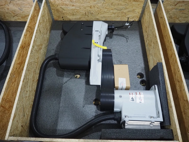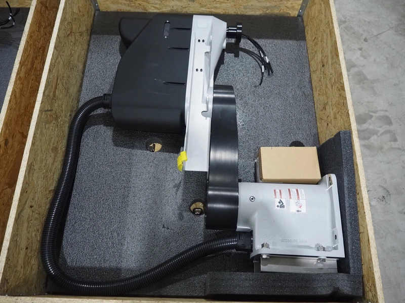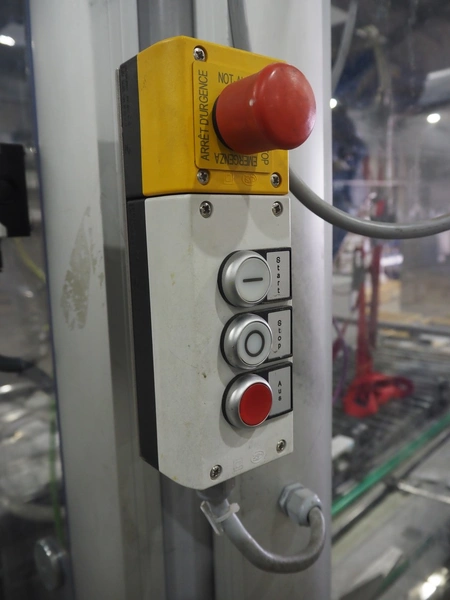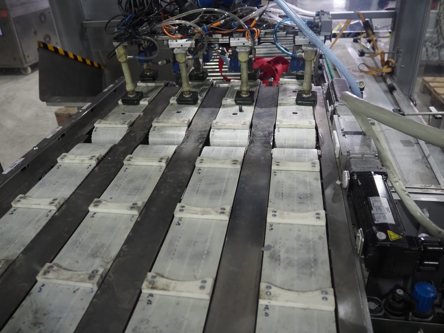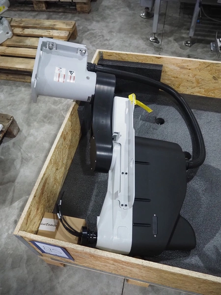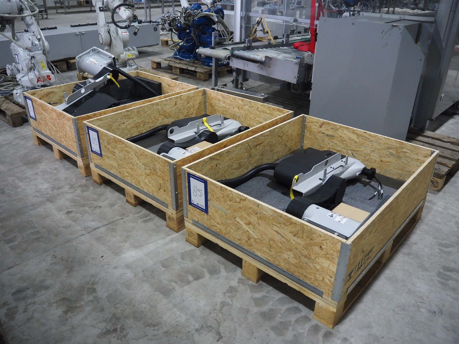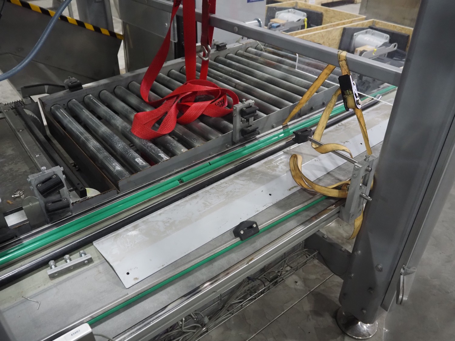 Transnova RUF robot palletizer, type: 470/526, machine number: 10669, year of construction: 2010, 4 lanes, plastic belt, belt width: (4x) 100 mm (1x) 400 mm, distance between dividers: 140 mm, divider height: 2 mm, steel rollers, roller width: 750 mm, Busch vacuum pump, type: SV 1040 C 000 INXX, total dimensions: 4000 mm x 2600 mm x 2900 mm. Including 3 Multivac robot arms, type: SR477, serial number: 60177, year of construction: 10/2022, dimensions: (3x) 960 mm x 240 mm x 770 mm.