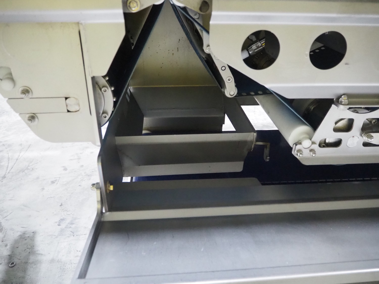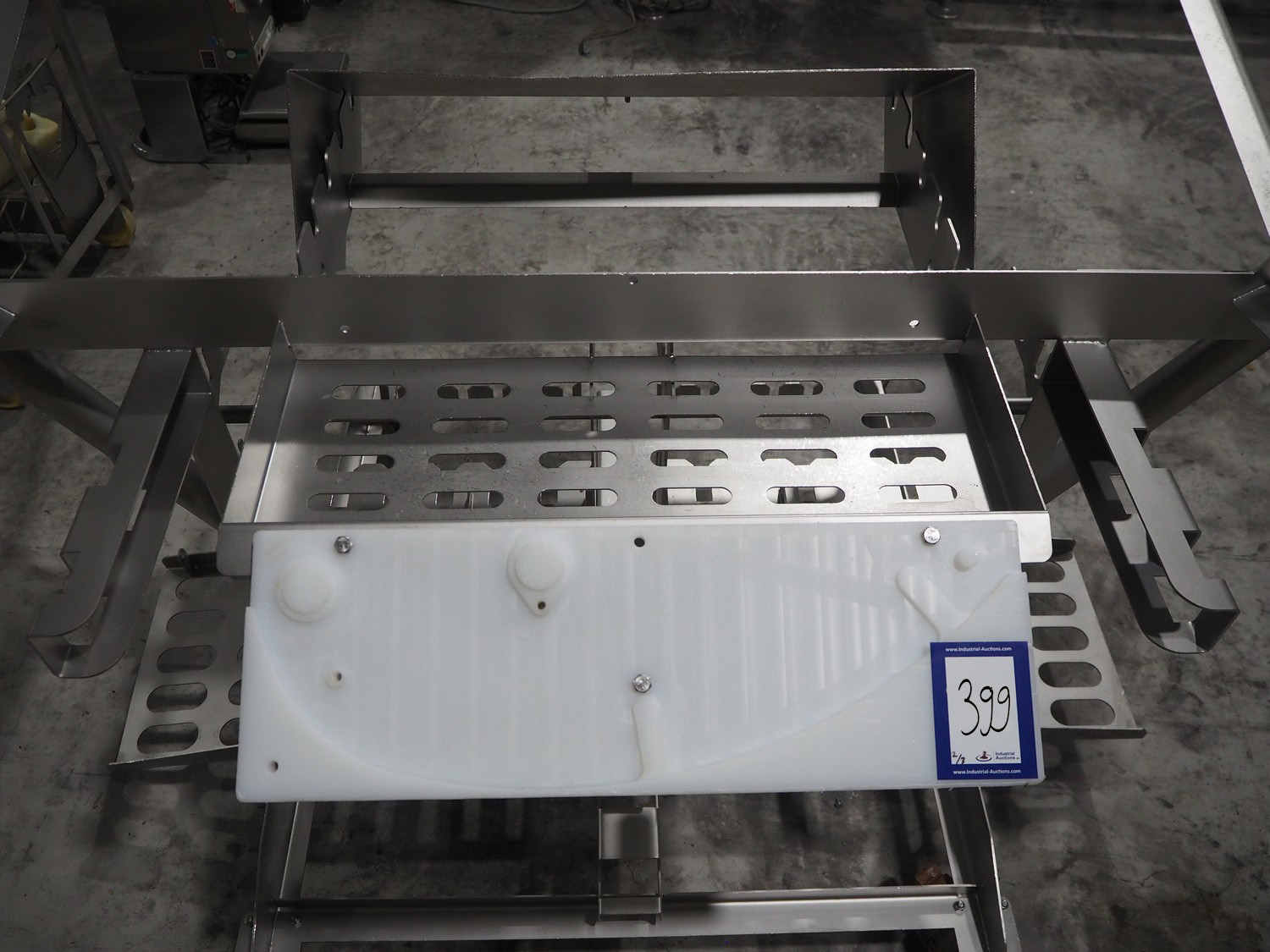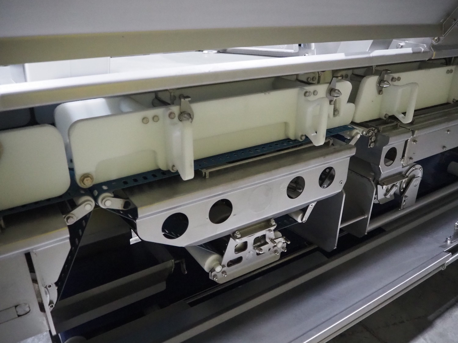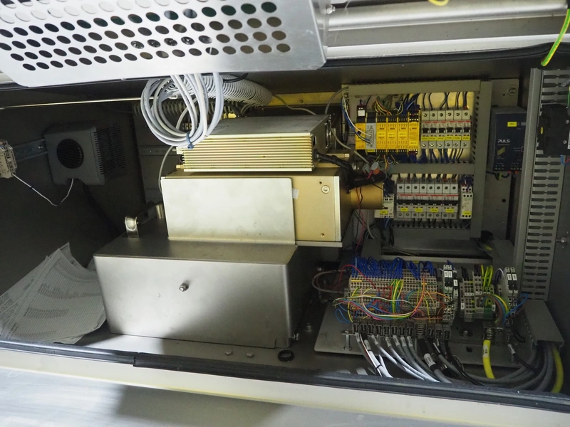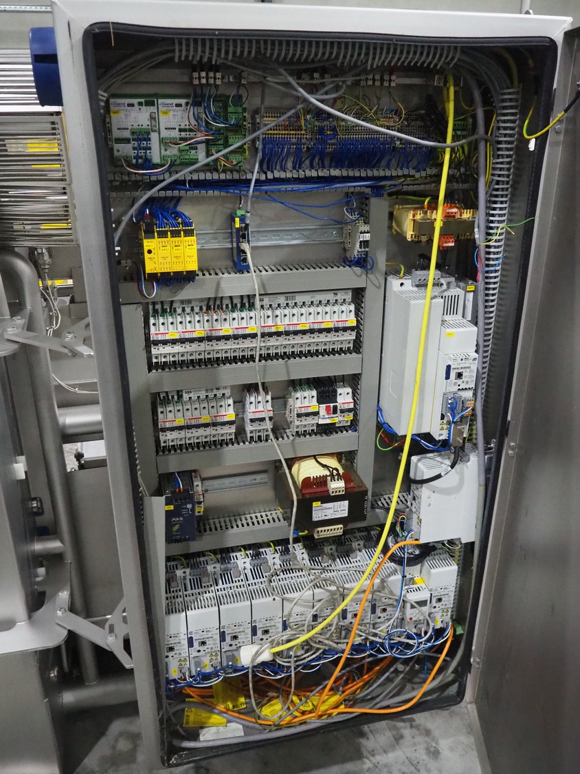 Marel trim inspection and portioning system, model: 850-9000-0011, type: 0012-102-00013, serial number: A143817, year of construction: 2016, plastic infeed belt, belt width: 590 mm, plastic belt, belt width: (2x) 380 mm, plastic mesh belt, belt width: 260 mm and 200 mm, total dimensions: 5150 mm x 1550 mm x 2160 mm. Including outfeed belt, dimensions: 1840 mm x 900 mm x 1180 mm, and 2x trolley for parts, dimensions: 2000 mm x 1150 mm x 1550 mm and 1650 mm x 1450 mm x 980 mm.