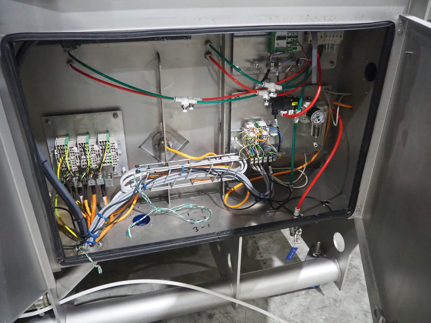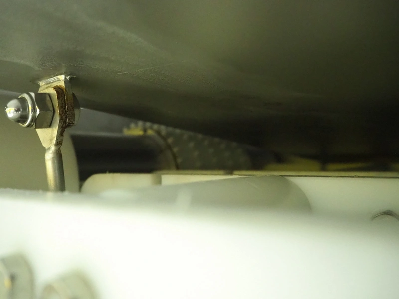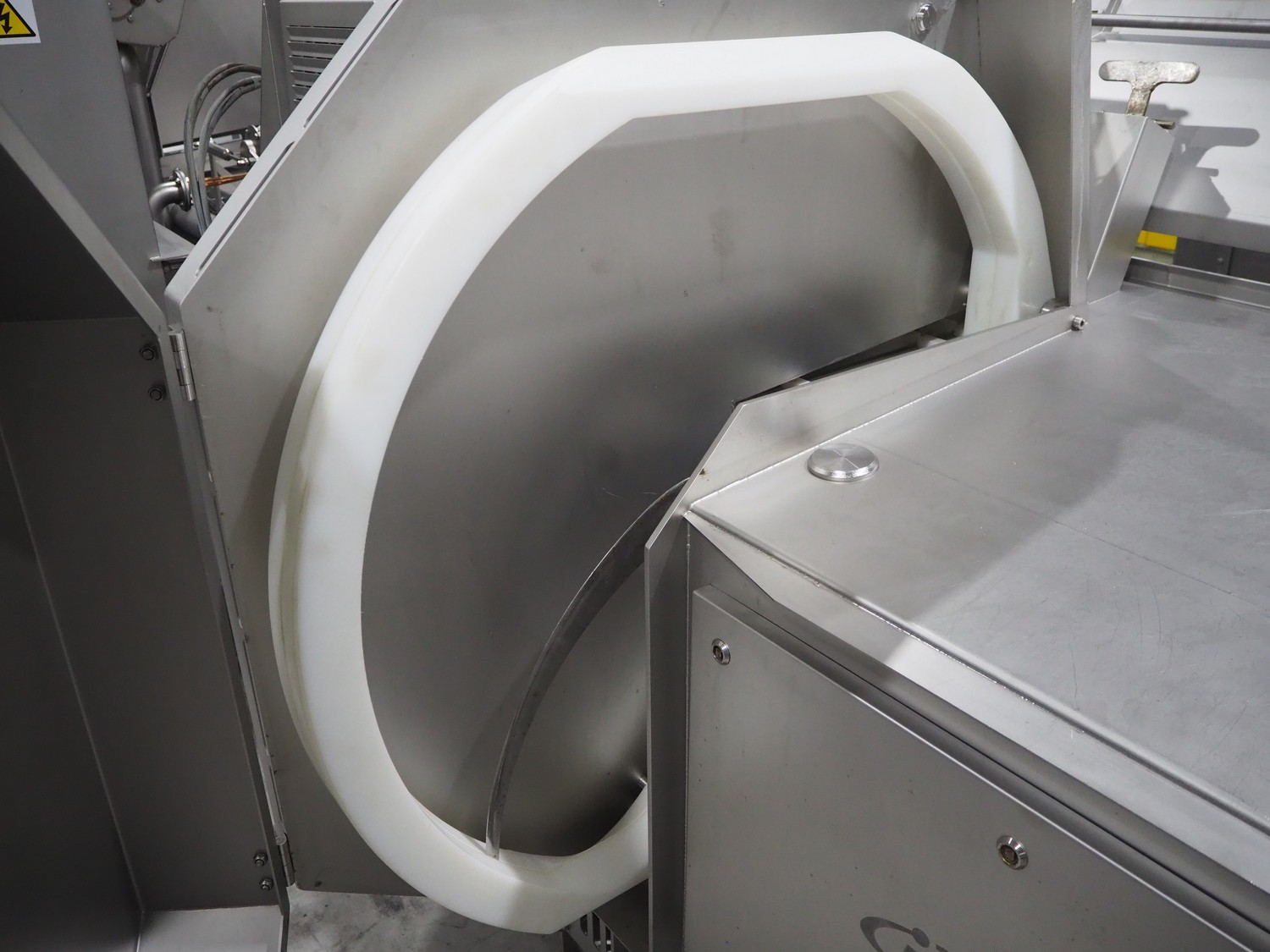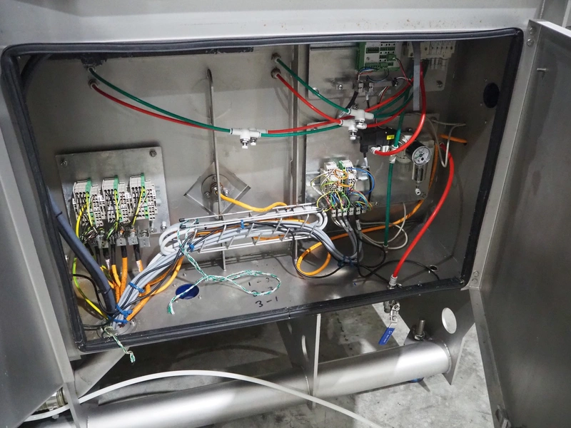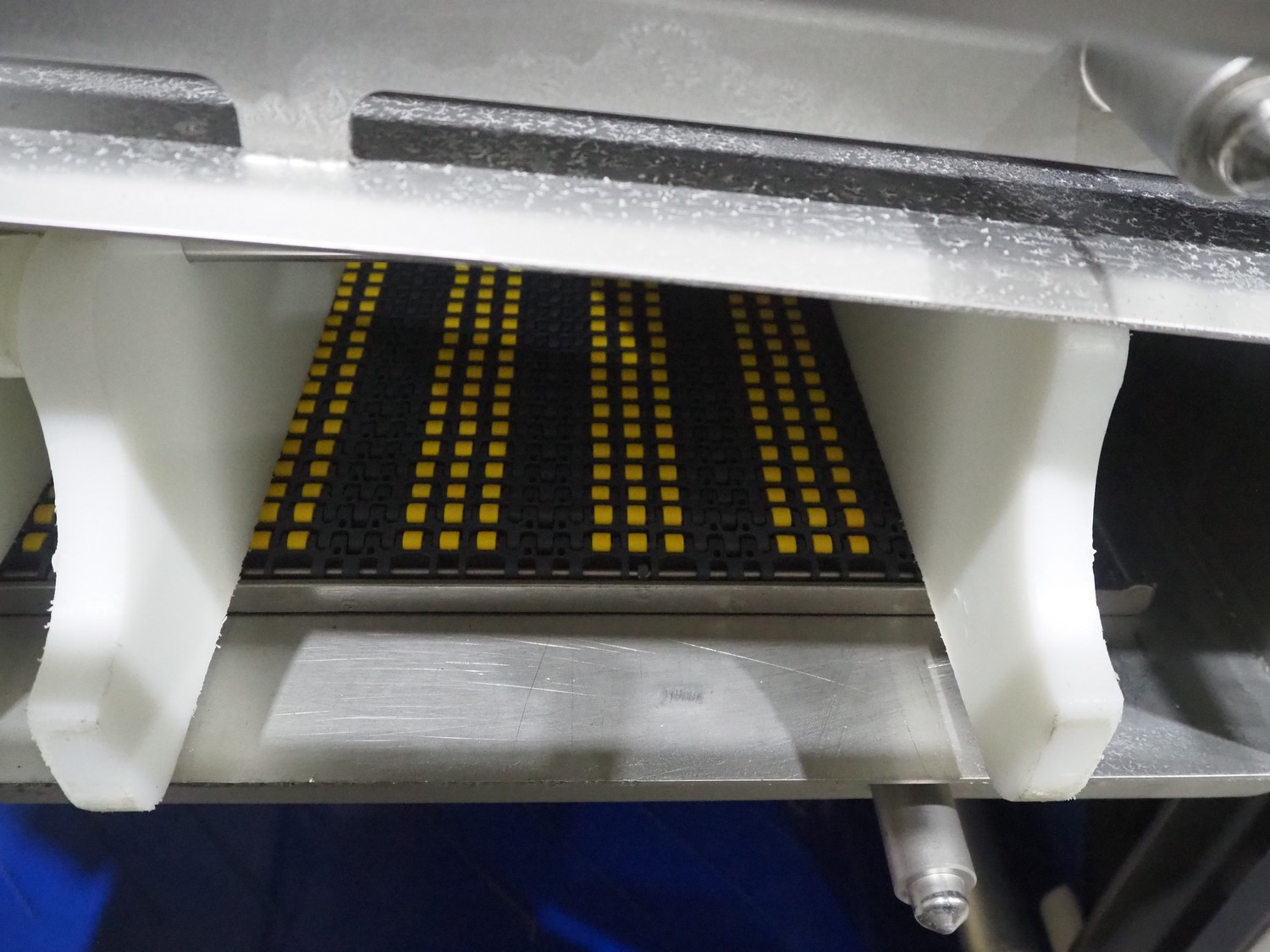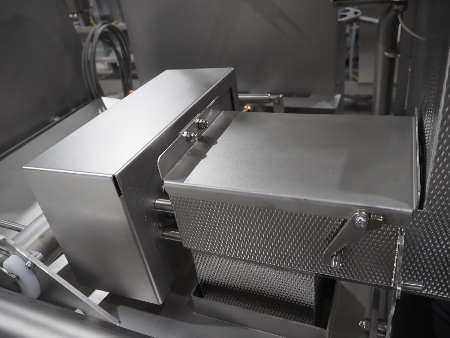 Marel trim inspection and portioning system, model: 850-9000-0011, type: 0012-102-00013, serial number: A143817, year of construction: 2016, plastic infeed belt, belt width: 590 mm, plastic belt, belt width: (2x) 380 mm, plastic mesh belt, belt width: 260 mm and 200 mm, total dimensions: 5150 mm x 1550 mm x 2160 mm. Including outfeed belt, dimensions: 1840 mm x 900 mm x 1180 mm, and 2x trolley for parts, dimensions: 2000 mm x 1150 mm x 1550 mm and 1650 mm x 1450 mm x 980 mm.