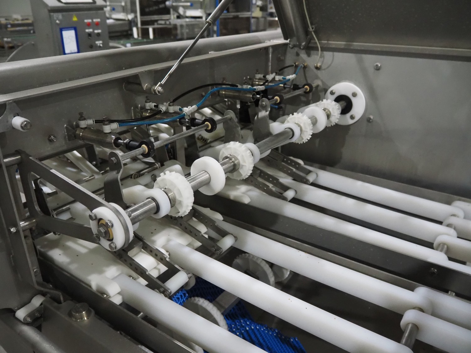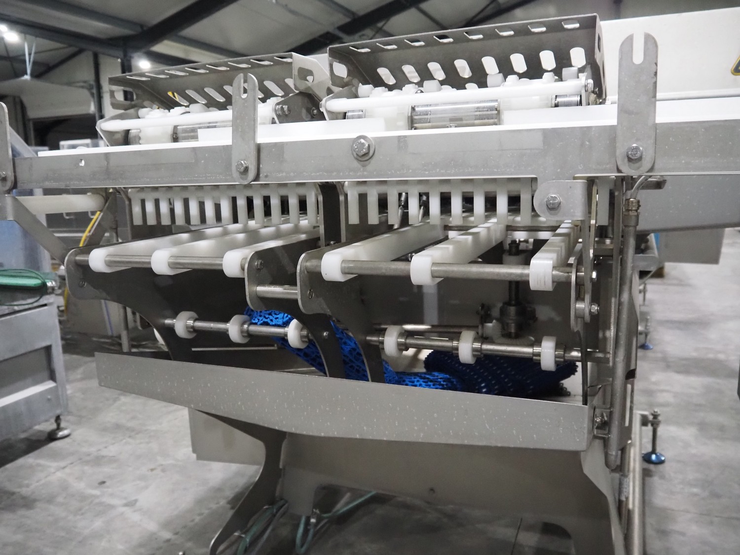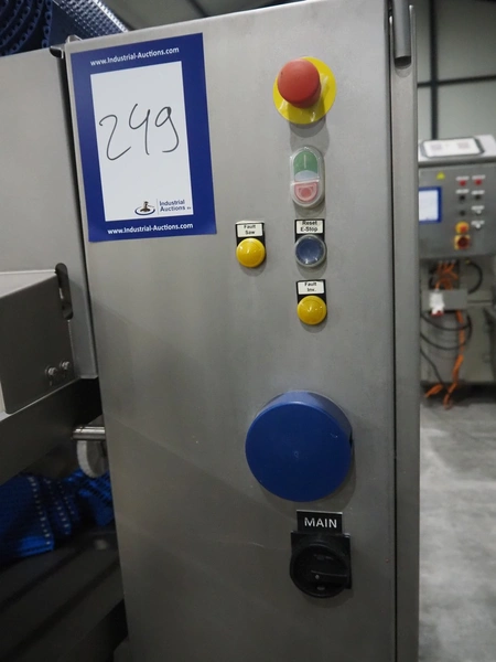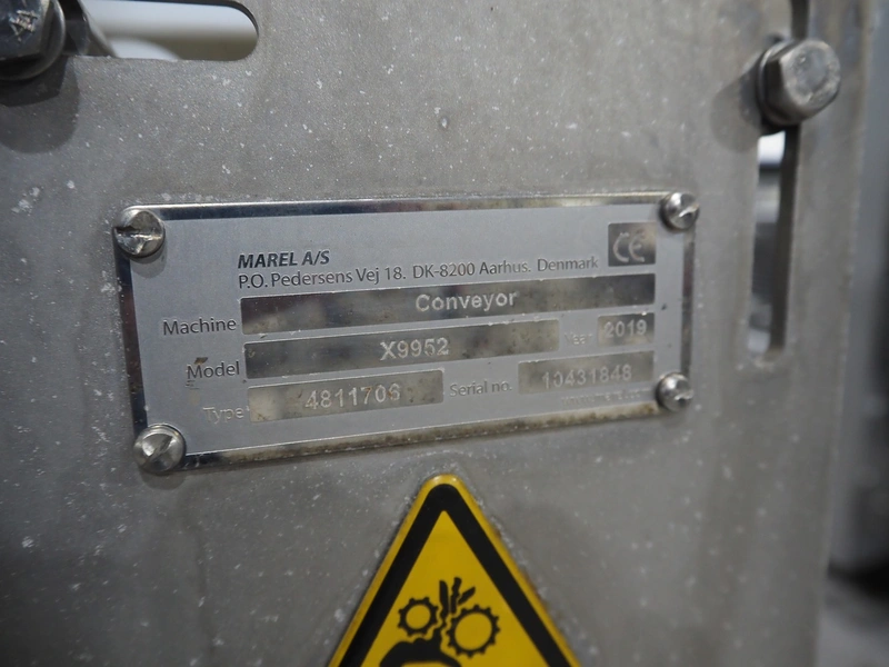 Marel smart splitter, model: SSP dual lane, serial number: 10486164, year of construction: 2021, belt width: (2x) 360 mm, (1x) 180 mm, clearance: (2x) 325 mm x 120 mm, working width: 300 mm, total dimensions: 2090 mm x 1850 mm x 1460 mm.