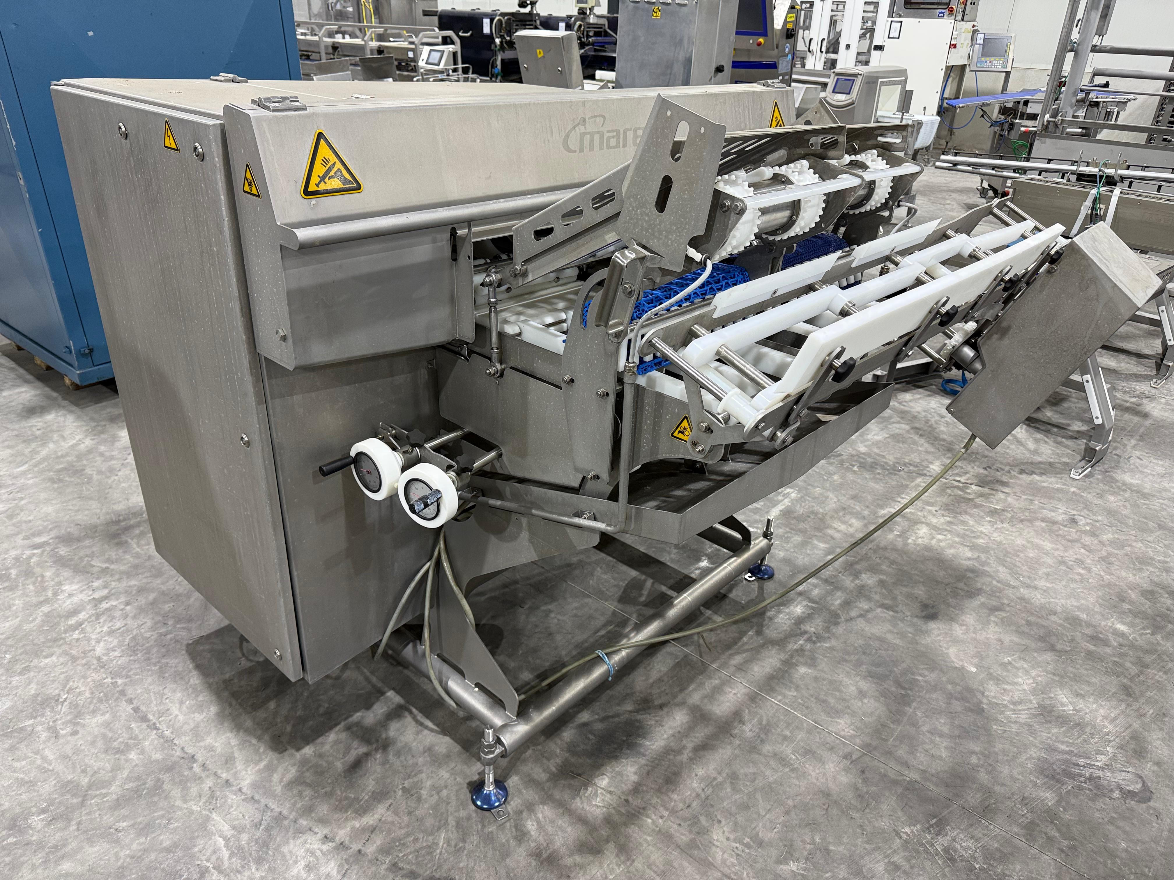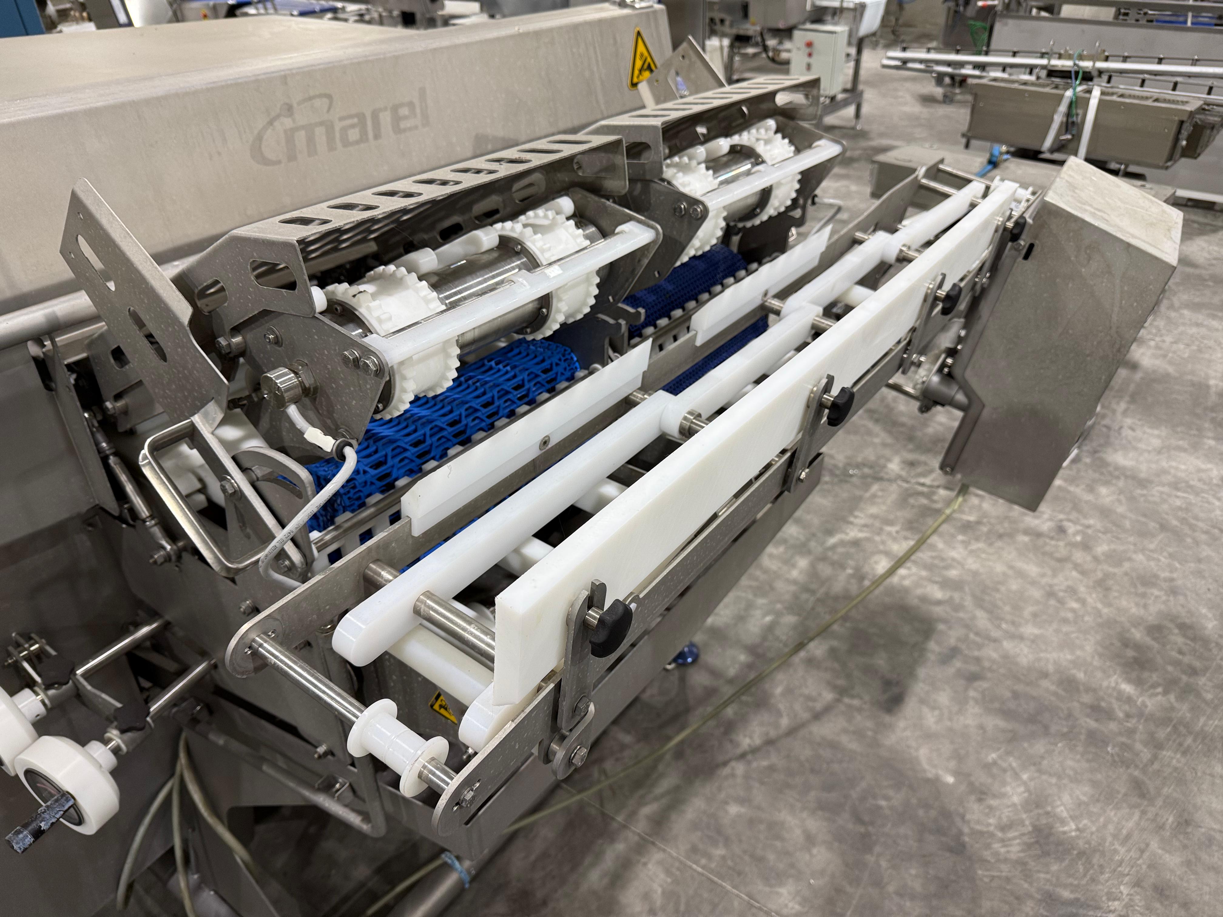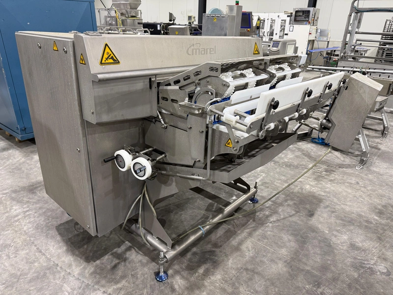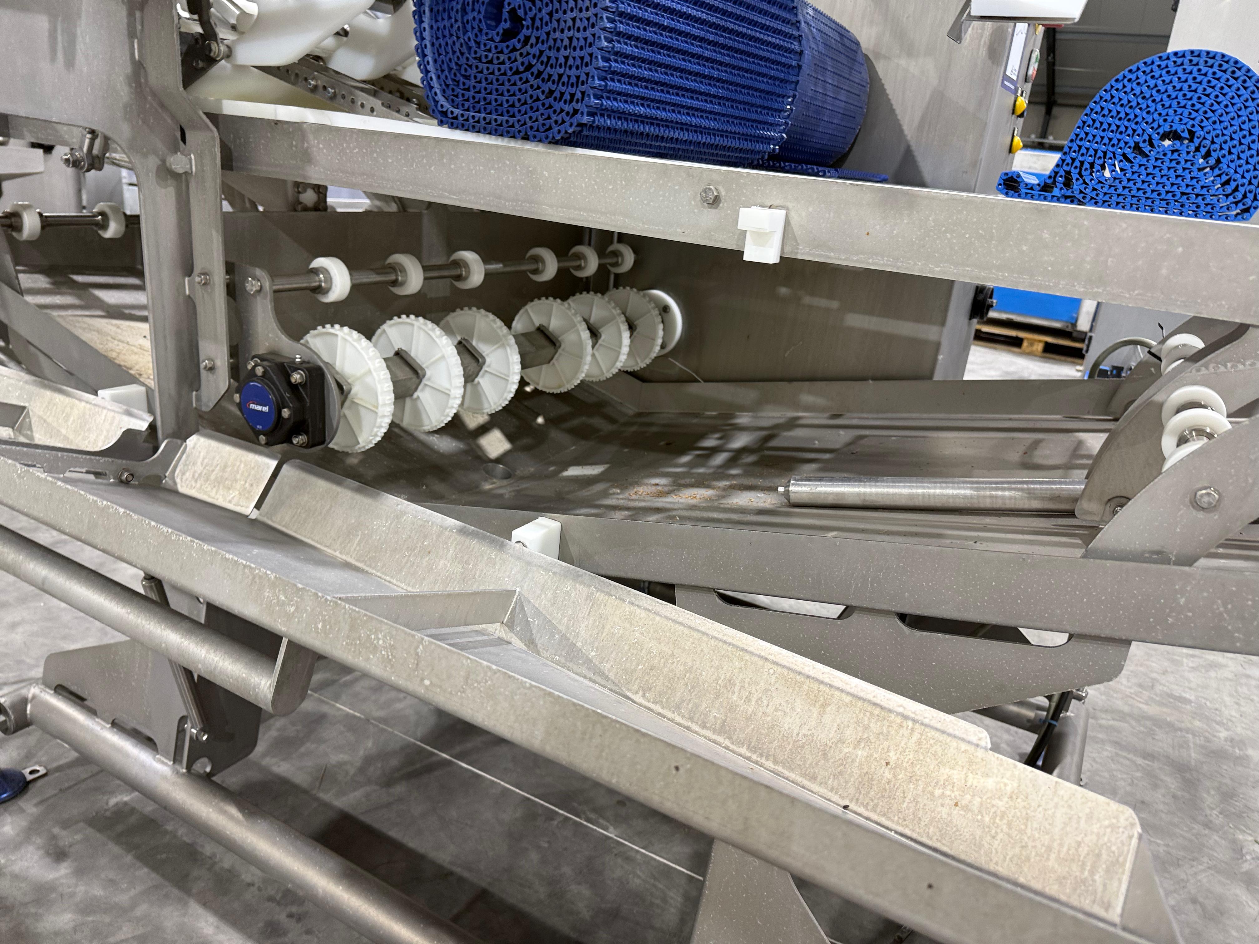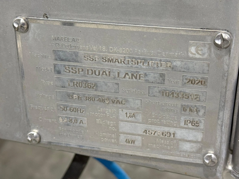 Marel smart splitter, model: SSP dual lane, serial number: 10433512, year of construction: 2020, 380-480 V, 50-60 Hz, 6.4-8.0 A, 4 kW, belt width: (2x) 360 mm, (1x) 180 mm, clearance: (2x) 325 mm x 120 mm, working width: 300 mm, total dimensions: 2100 mm x 1900 mm x 1450 mm.