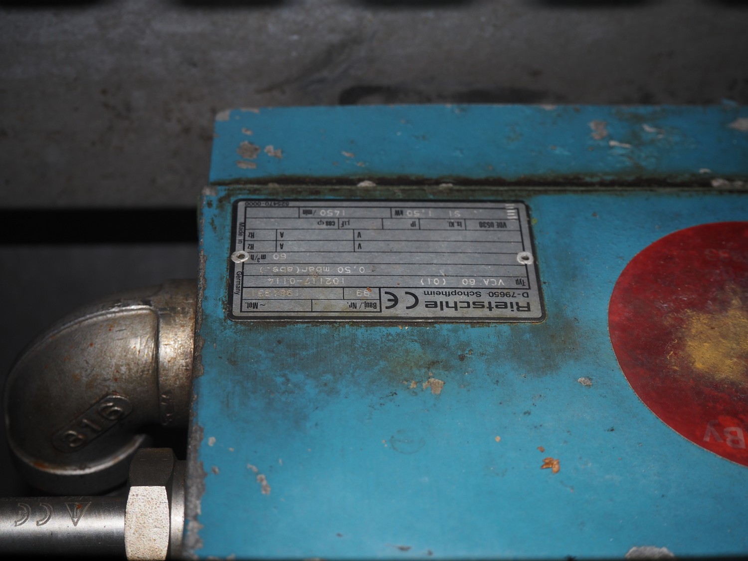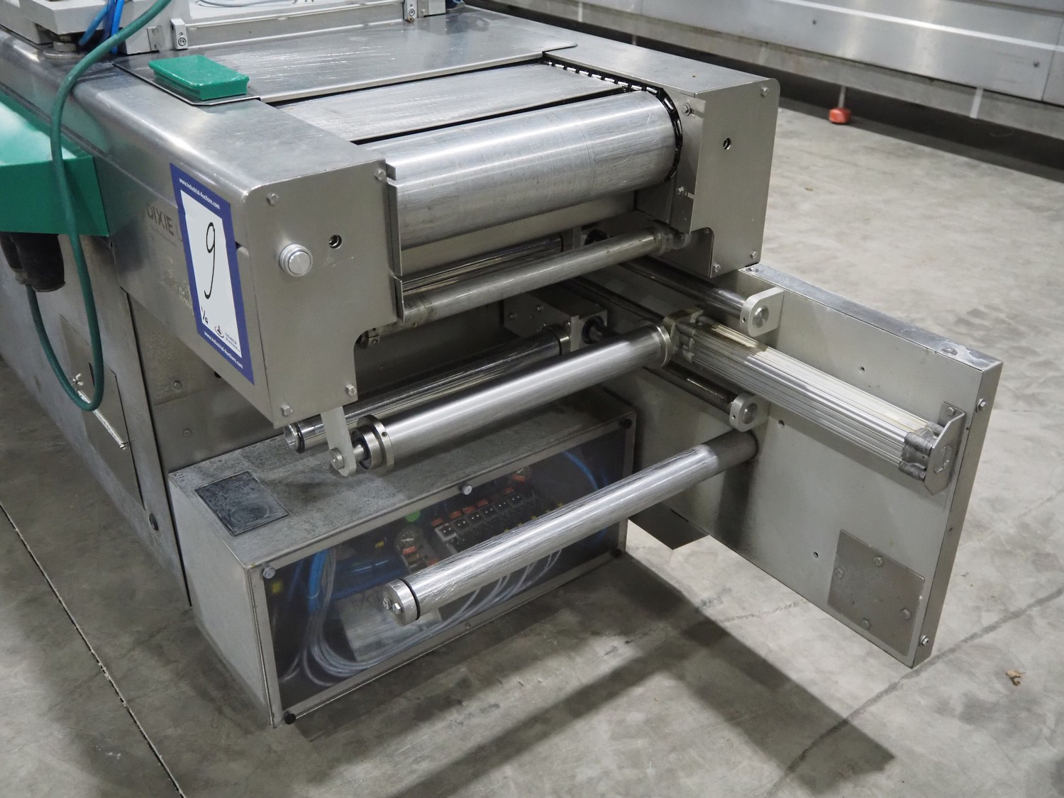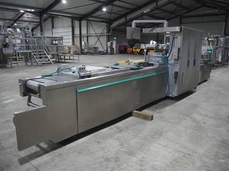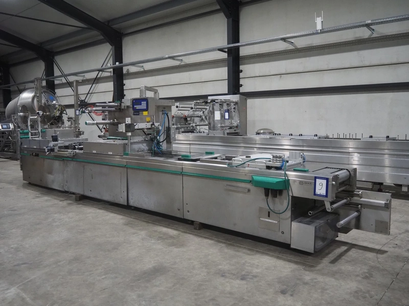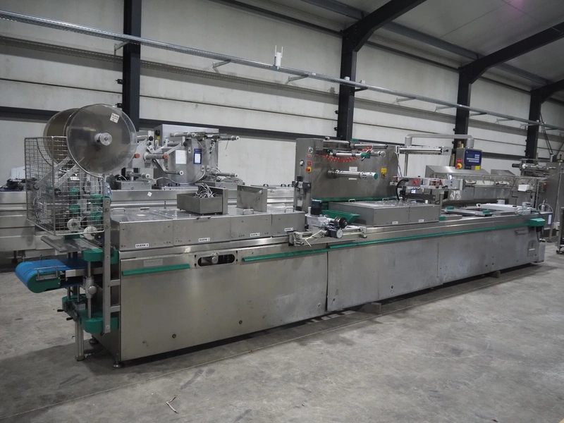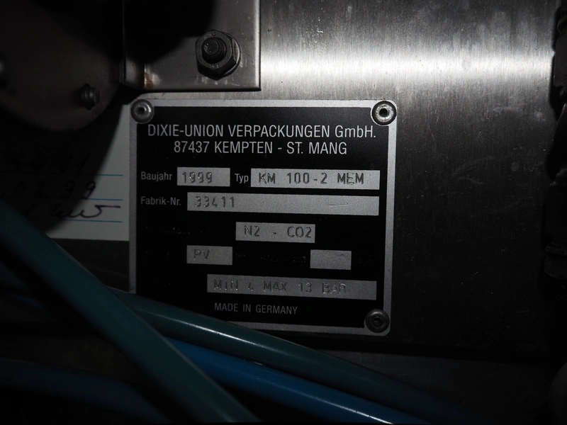 Dixie Union thermoformer, model: EVOLUTION, machine number: EVO.0245, year of construction: 1999, plastic belt, belt width: 380 mm, dye dimensions: (3x) 170 mm x 105 mm x 30 mm, Rietschle vacuum pump, type: VCA 60 (01), year of construction: 1999, capacity: 60 m³/h, total dimensions: 8100 mm x 1300 mm x 1900 mm. Including 2 pallets with parts.