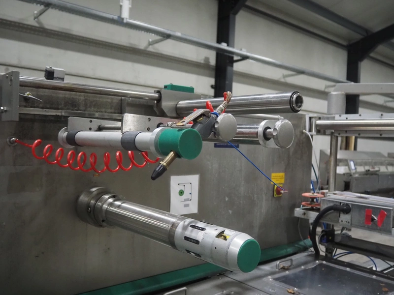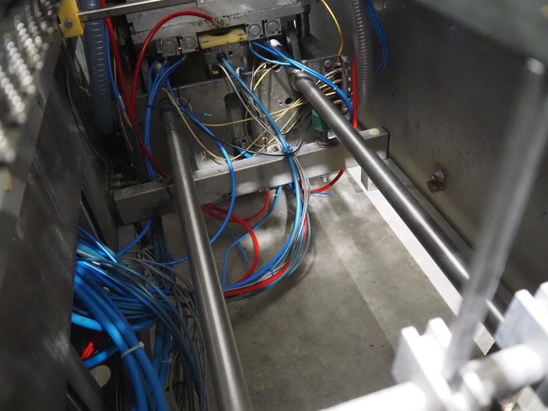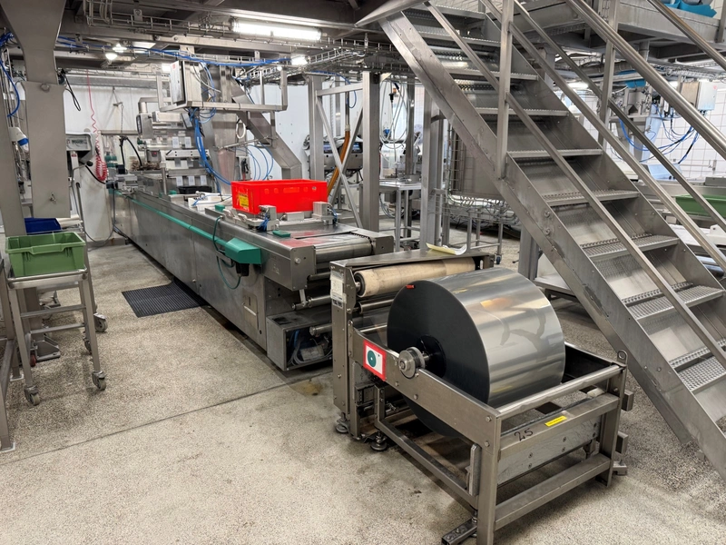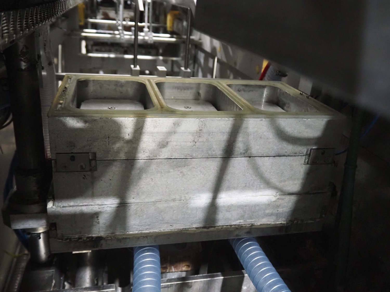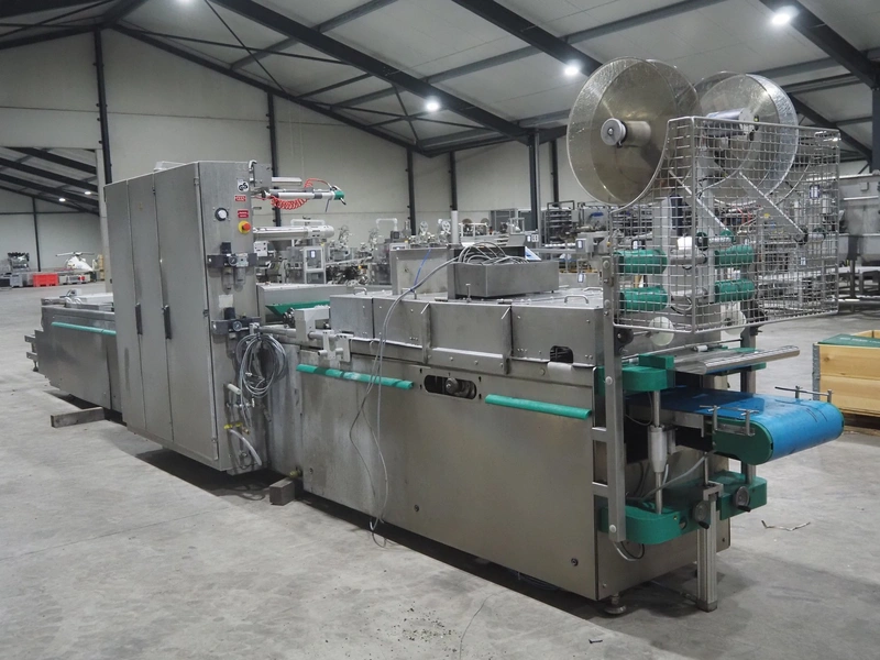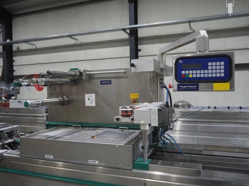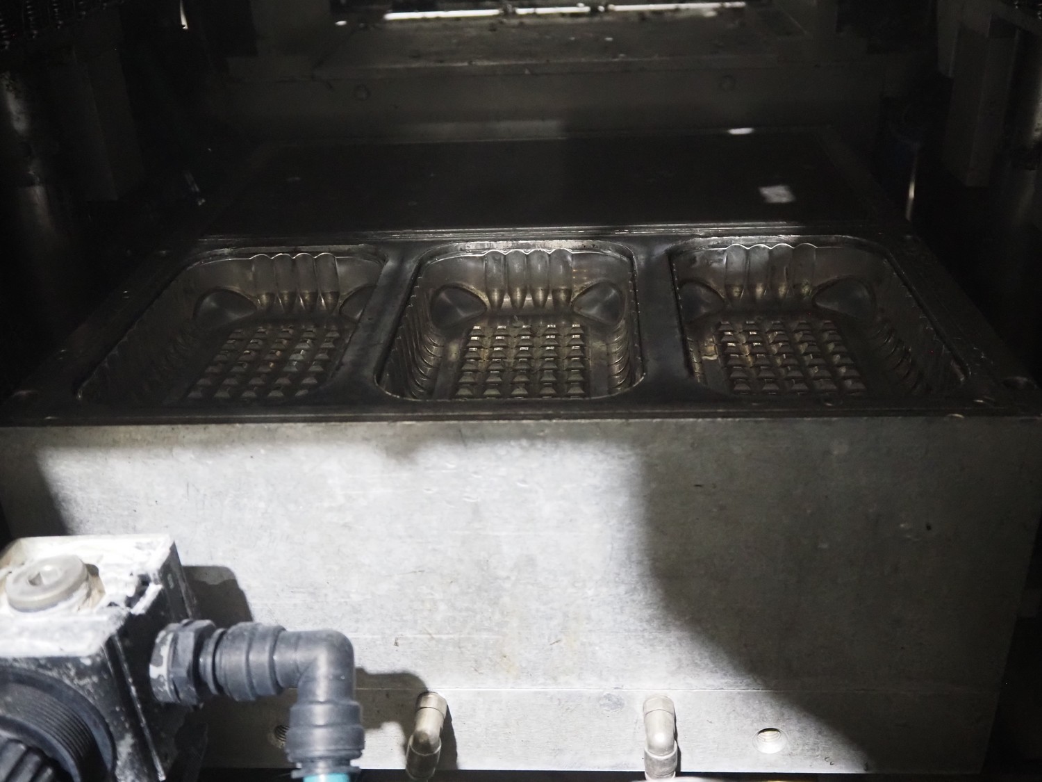 Dixie Union thermoformer, model: EVOLUTION, machine number: EVO.0245, year of construction: 1999, plastic belt, belt width: 380 mm, dye dimensions: (3x) 170 mm x 105 mm x 30 mm, Rietschle vacuum pump, type: VCA 60 (01), year of construction: 1999, capacity: 60 m³/h, total dimensions: 8100 mm x 1300 mm x 1900 mm. Including 2 pallets with parts.