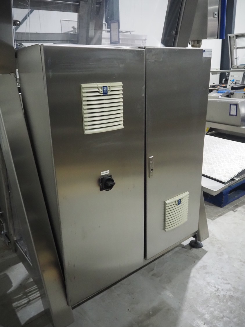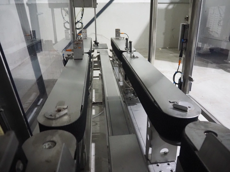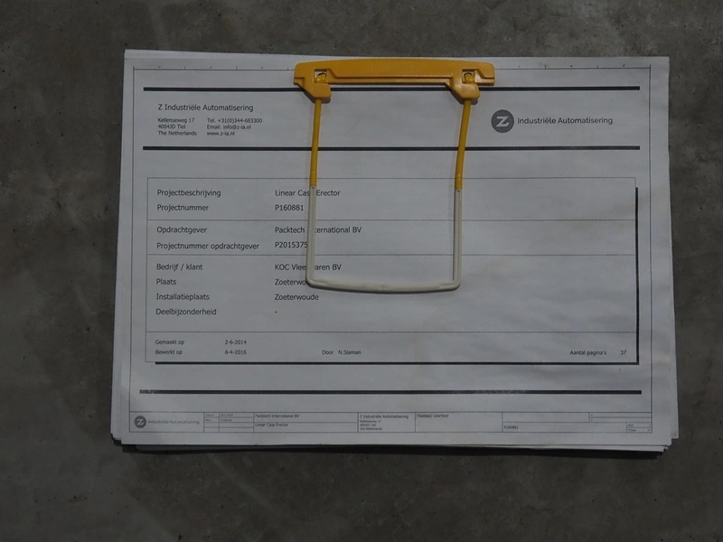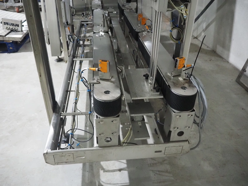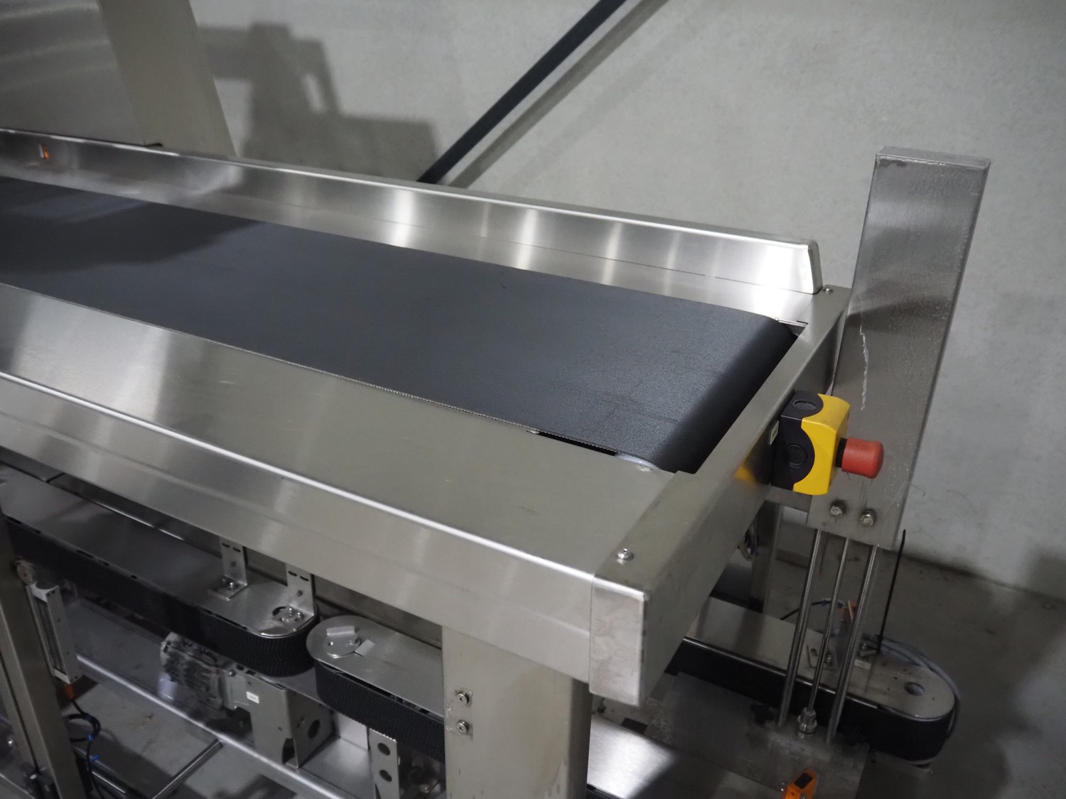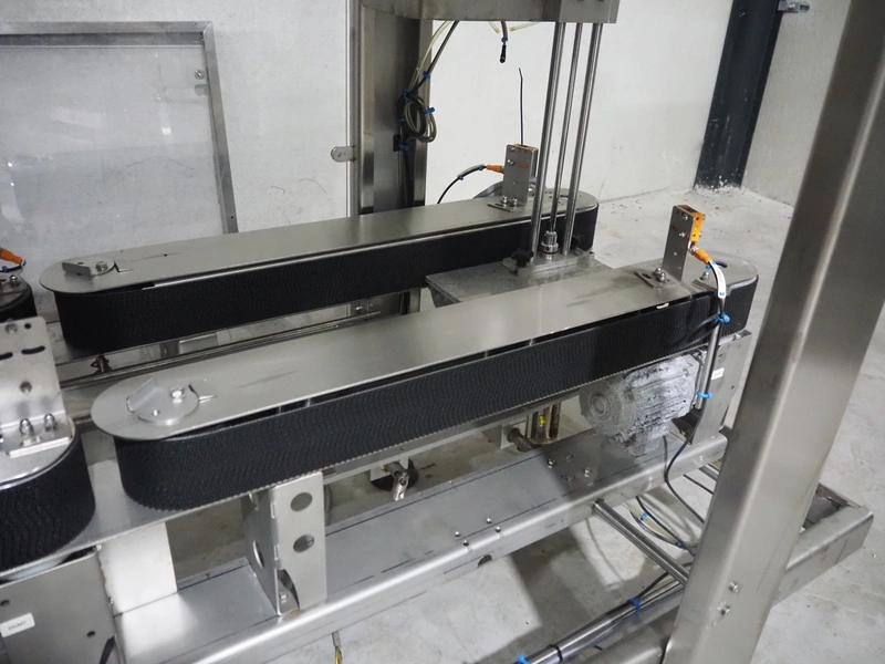Paktech linear case erector, plastic belt, belt width: 400 mm, clearance: 225 mm, total dimensions: 3700 mm x 1650 mm x 2100 mm.