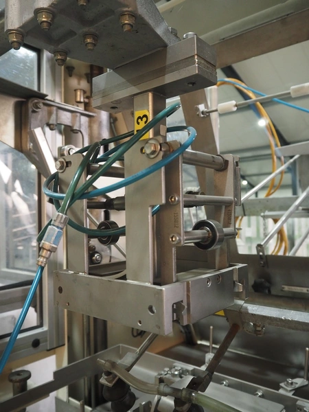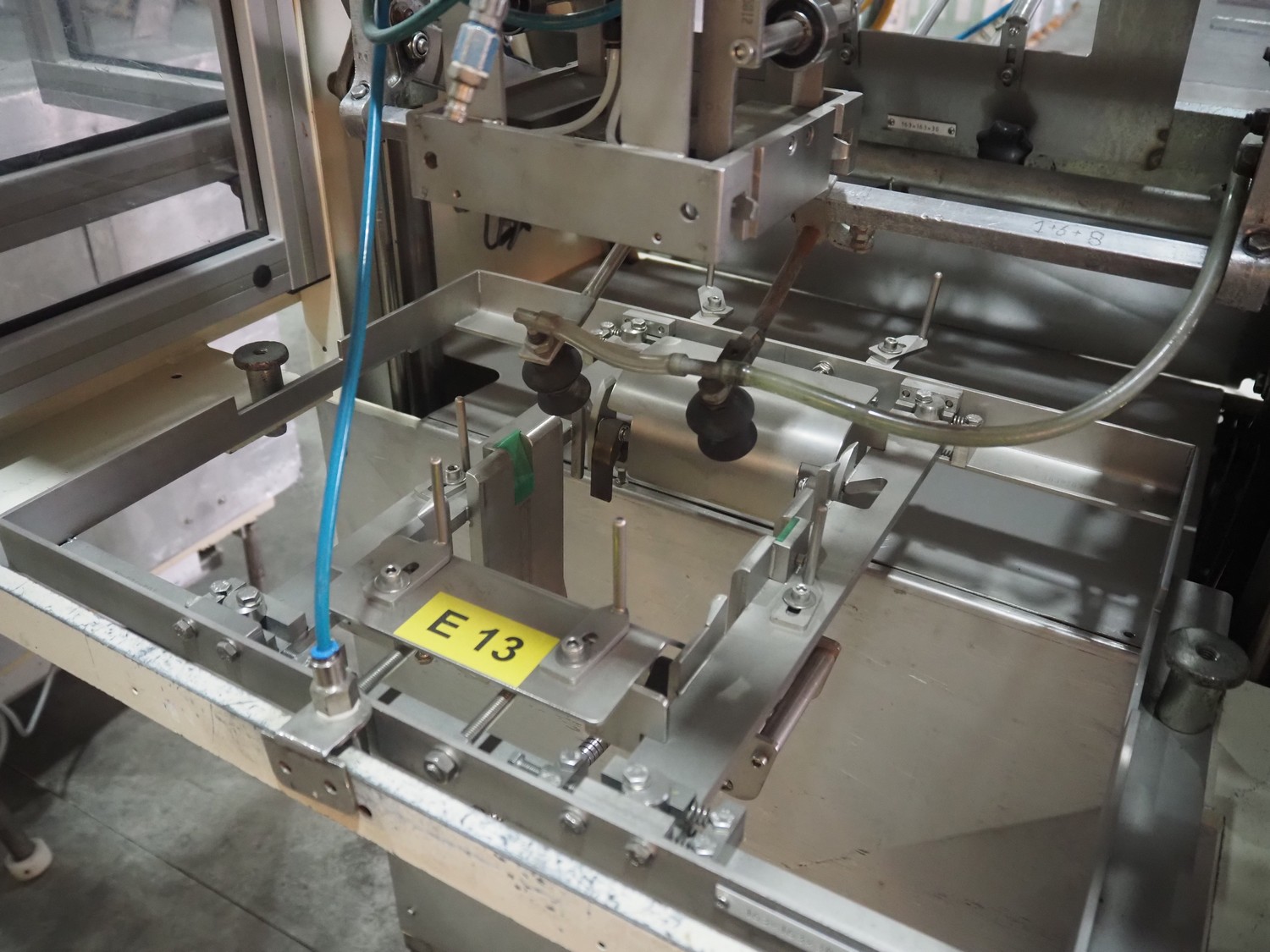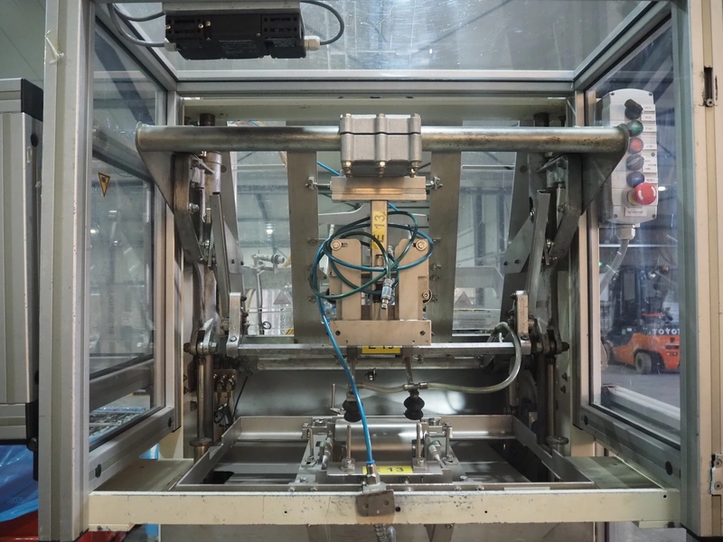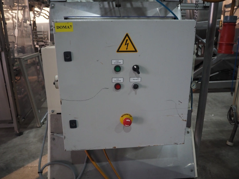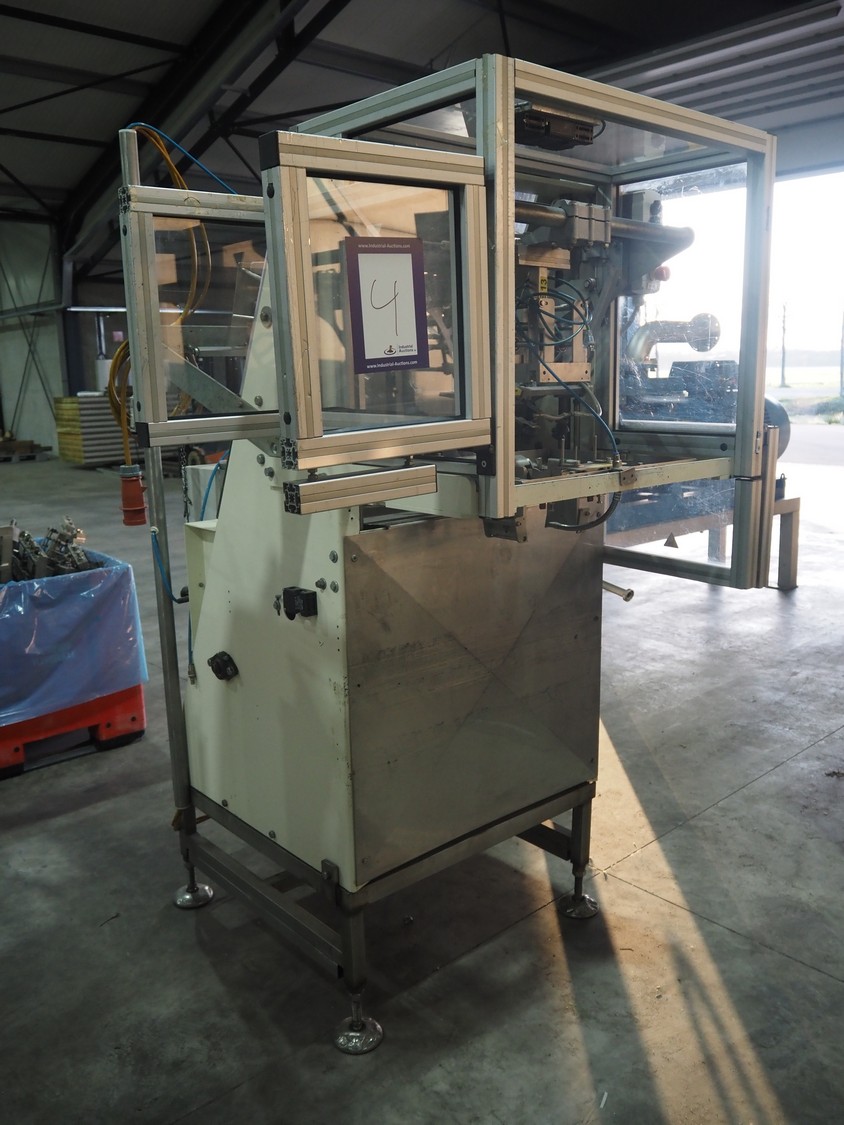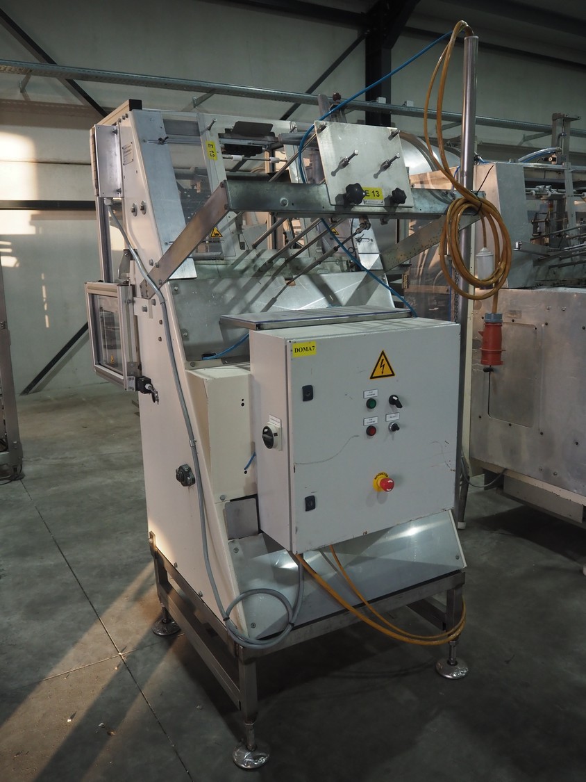 LPF Verpakkingen B.V. carton erector, type: JR, serial number: 225S, dimensions cartons: 163 mm x 163 mm x 30 mm, total dimensions: 1400 mm x 1450 mm x 2160 mm. Missing vacuum pump.