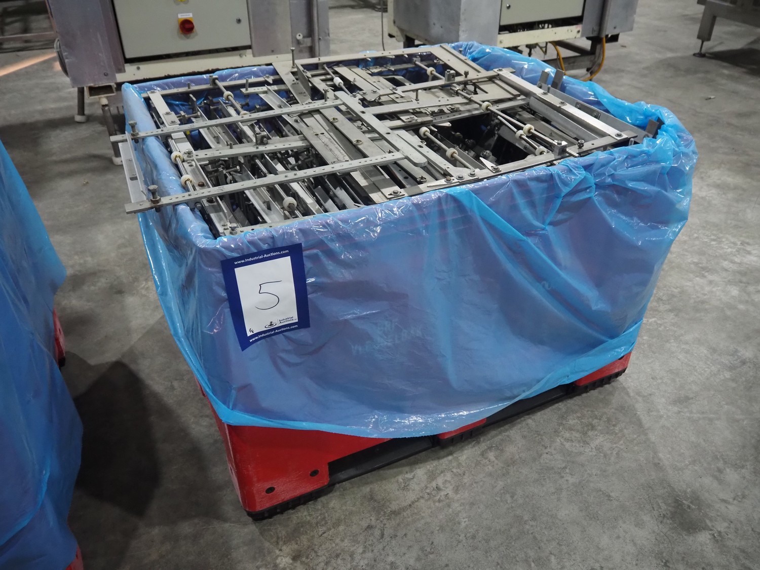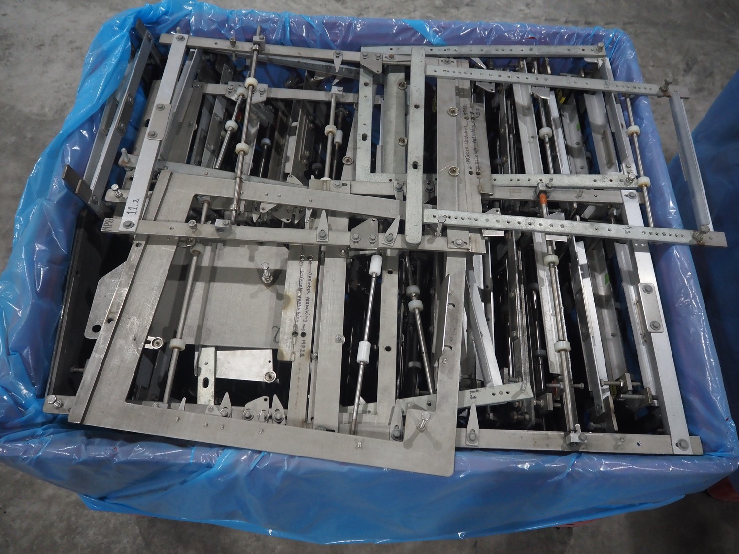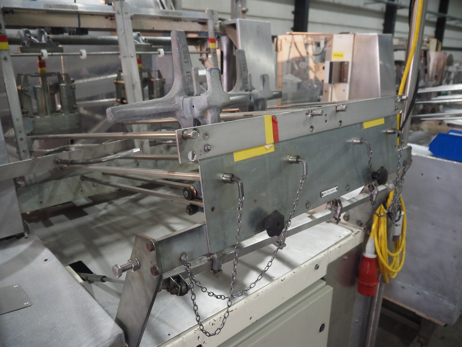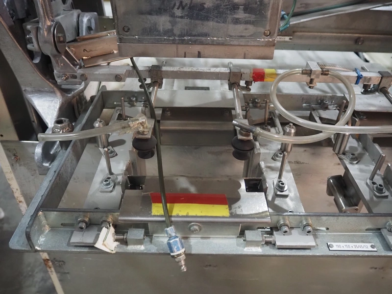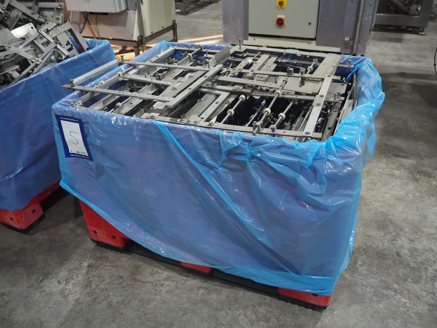 LPF Verpakkingen B.V. carton erector, 2 lanes, dimensions cartons: 150 mm x 98 mm x 30 mm, with Becker vacuum pump, type: BOL/4X, total dimensions: 1500 mm x 1350 mm x 2140 mm. With pallet box with large amount of parts for carton erector, dimensions: 1200 mm x 1000 mm x 1050 mm.