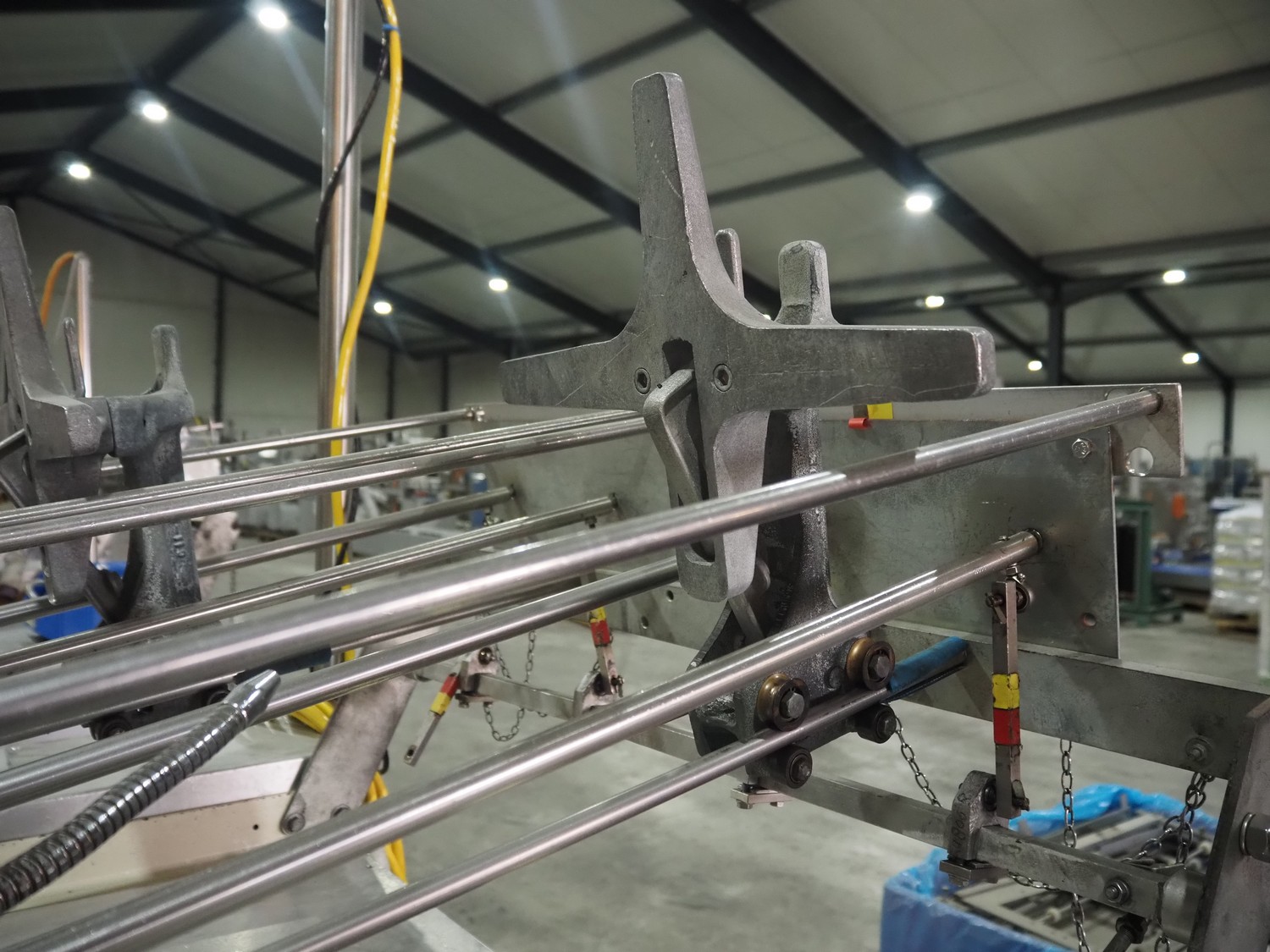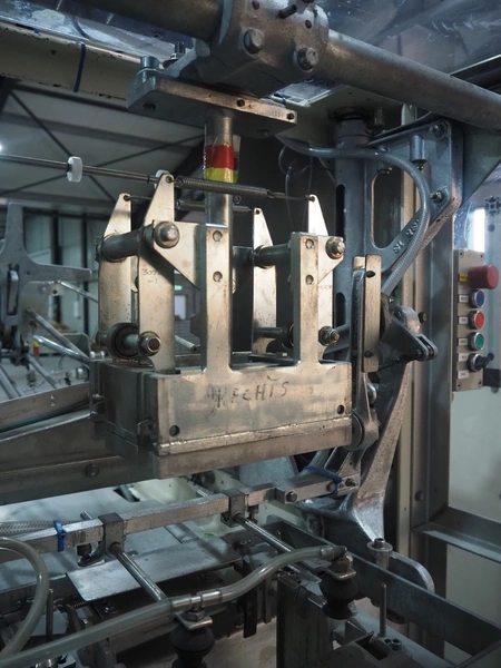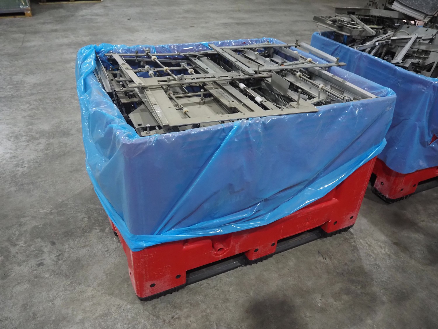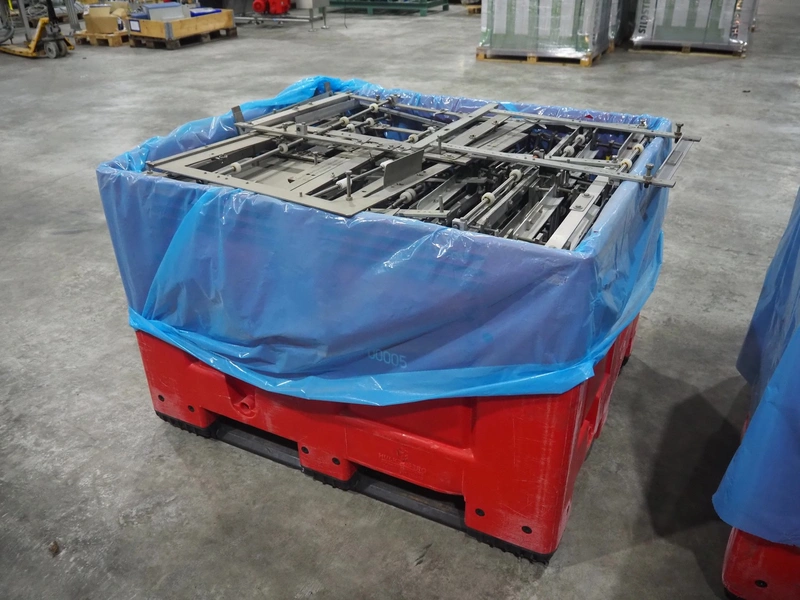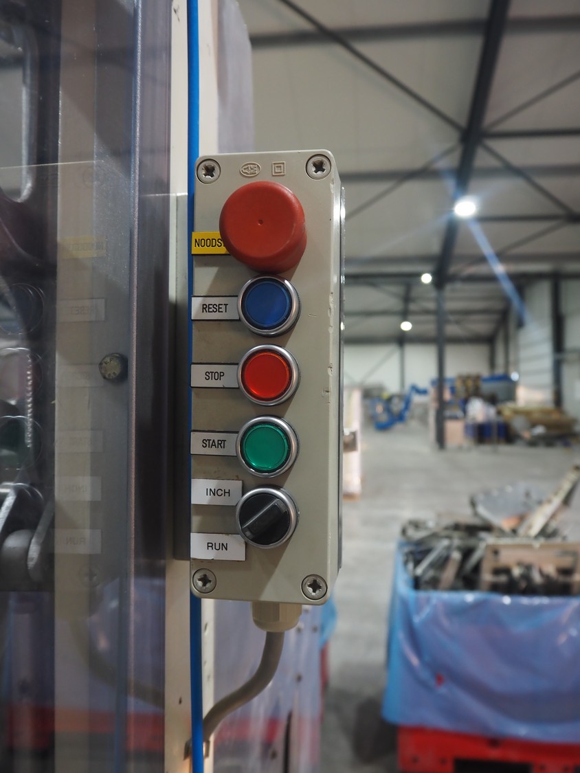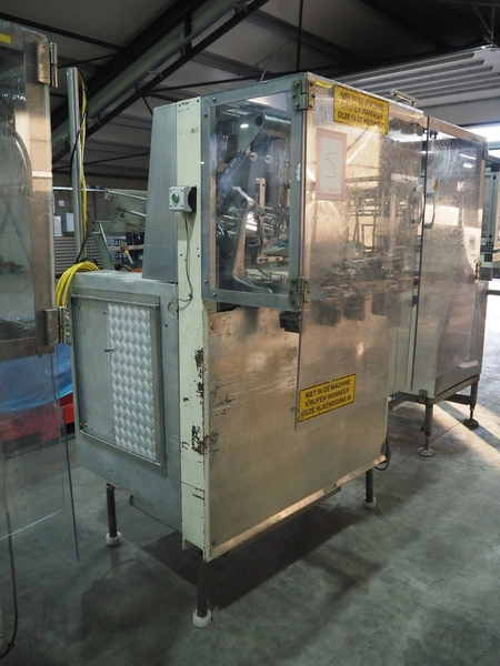 LPF Verpakkingen B.V. carton erector, 2 lanes, dimensions cartons: 150 mm x 98 mm x 30 mm, with Becker vacuum pump, type: BOL/4X, total dimensions: 1500 mm x 1350 mm x 2140 mm. With pallet box with large amount of parts for carton erector, dimensions: 1200 mm x 1000 mm x 1050 mm.