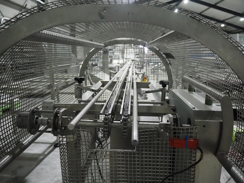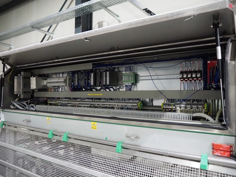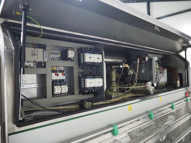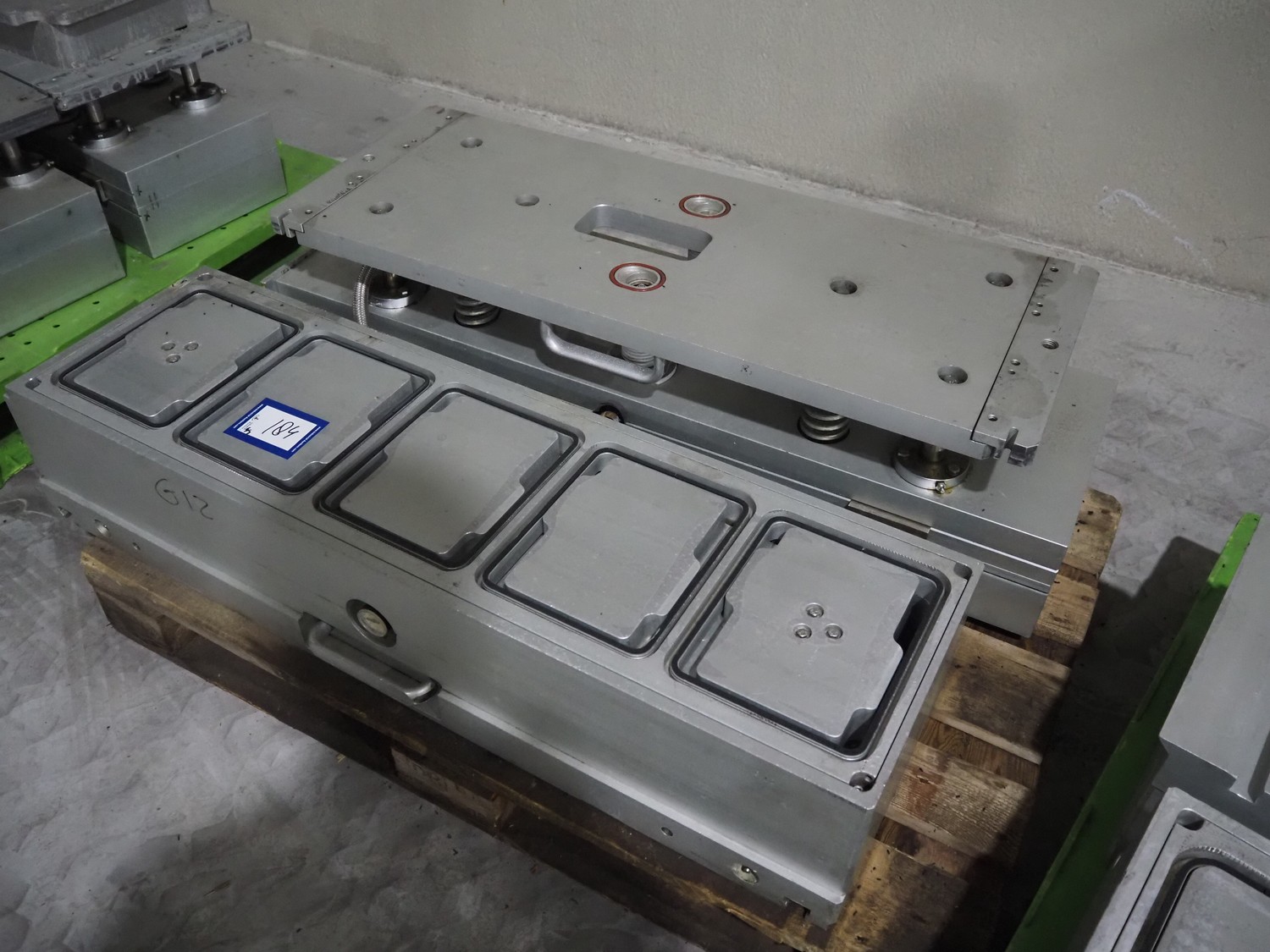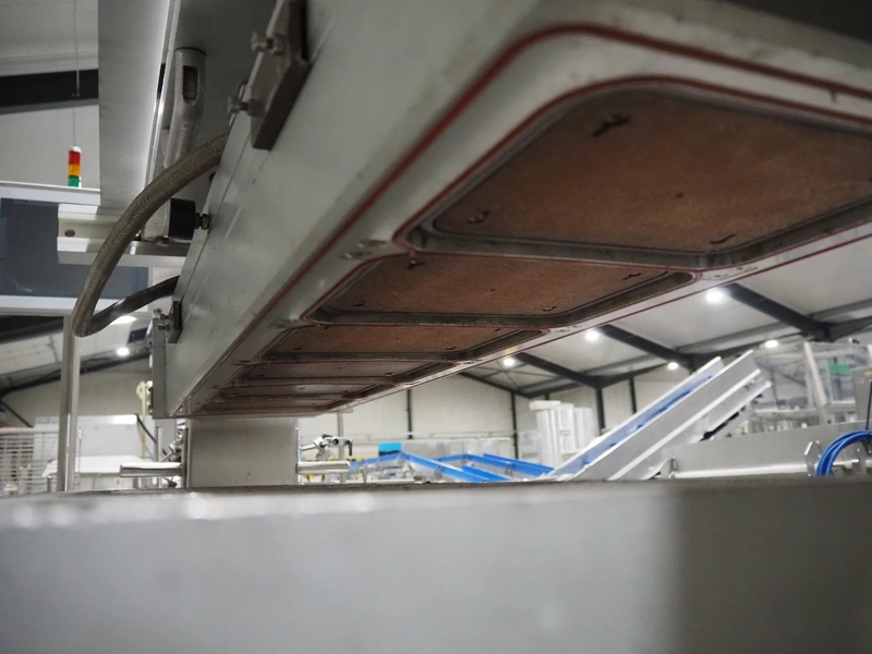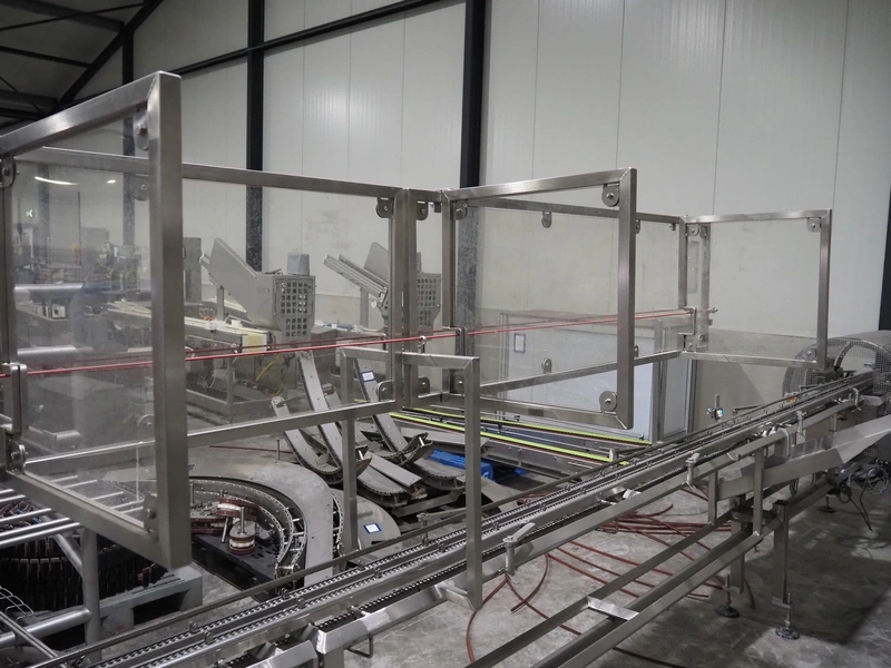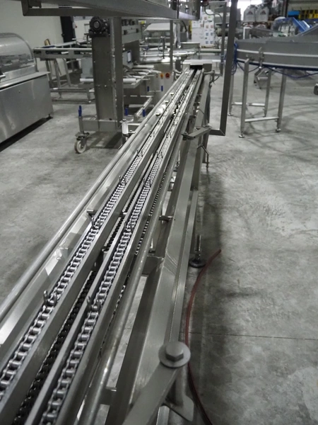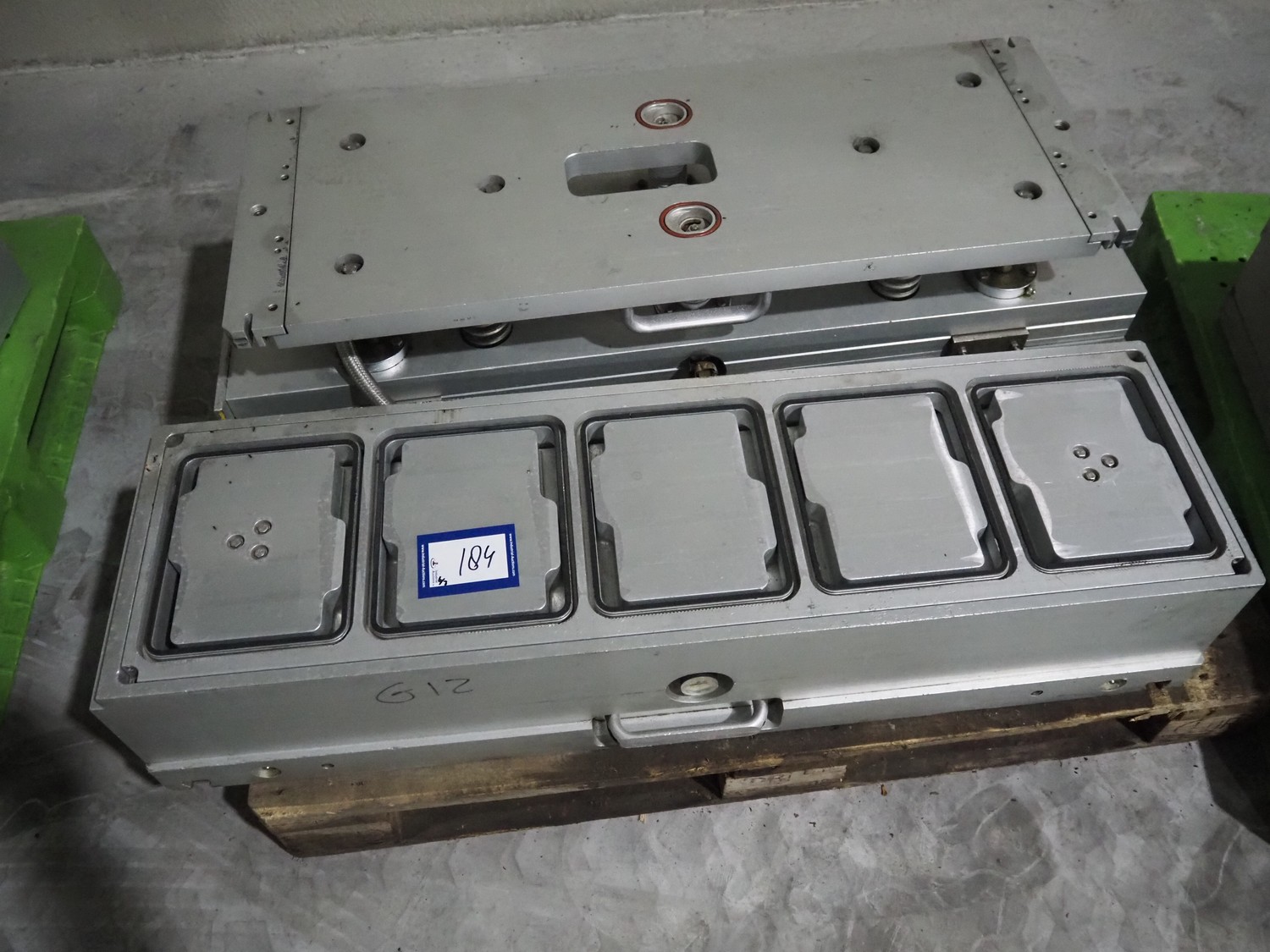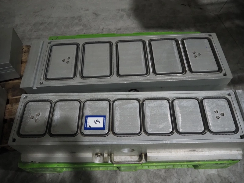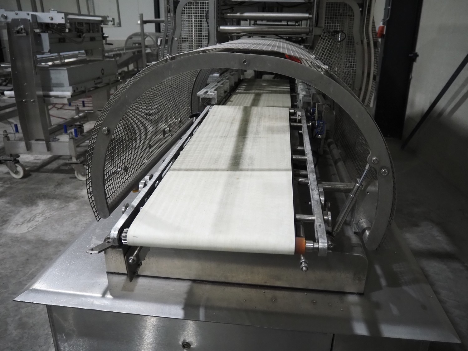 G. Mondini S.p.a. traysealer, model: EVO390-XL, number: 3761/09, year of construction: 10/2009, 415 V, 3 Ph, 50 Hz, infeed chain with dividers, divider height: 20 mm, distance between dividers: 190 mm, plastic belts, belt width: 280 mm, total dimensions: 11900 mm x 1300 mm x 2450 mm. S/s trolley to change dye's, model: CPS/R, number: 3761/09, year of construction: 10/2009, dye: (6x) 202 mm x 153 mm, total dimensions 1650 mm x 900 mm x 1550 mm. Including 3 pallets with dye's, dye: (5x) 255 mm x 161 mm, (5x) 232 mm x 182 mm, (7x) 180 mm x 128 mm. S/s frame for 3 dye sets model: CP/S-3+3, number: 3762/09, year of construction: 10/2009, dimensions: 4200 mm x 750 mm x 1860 mm.