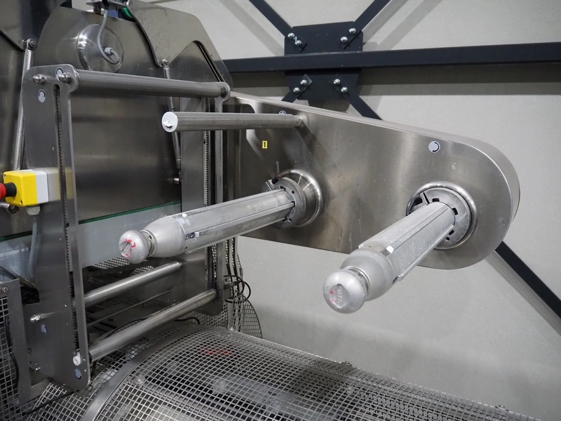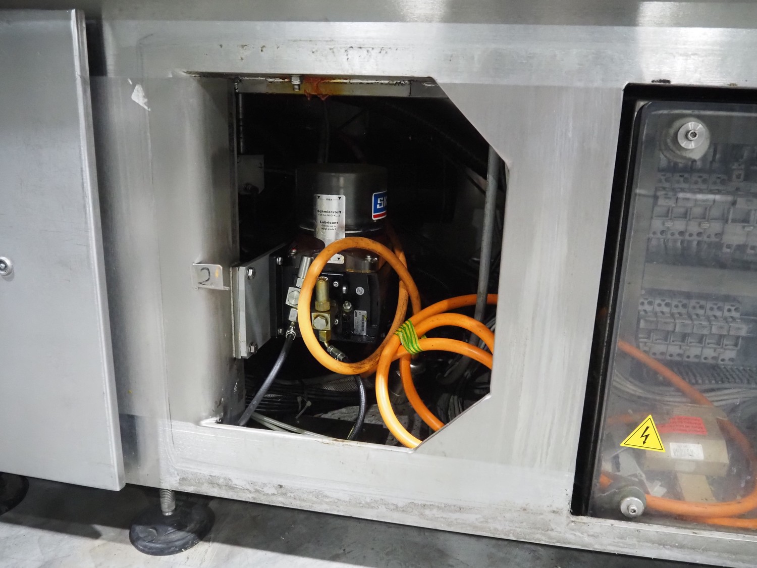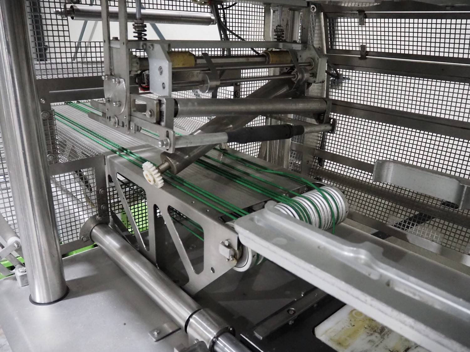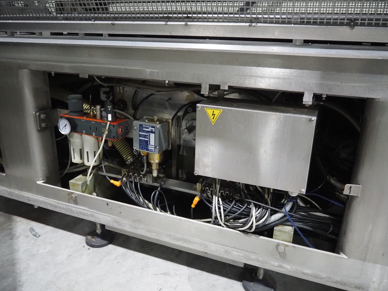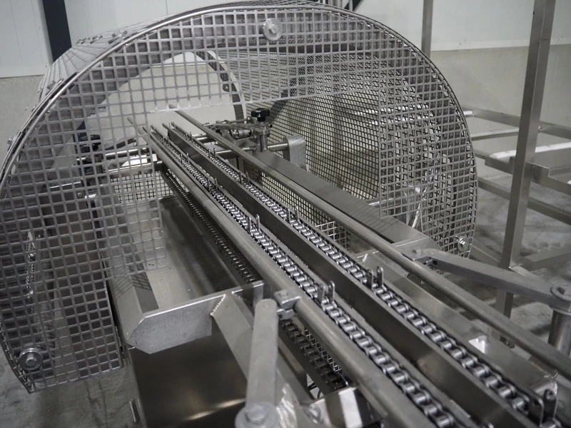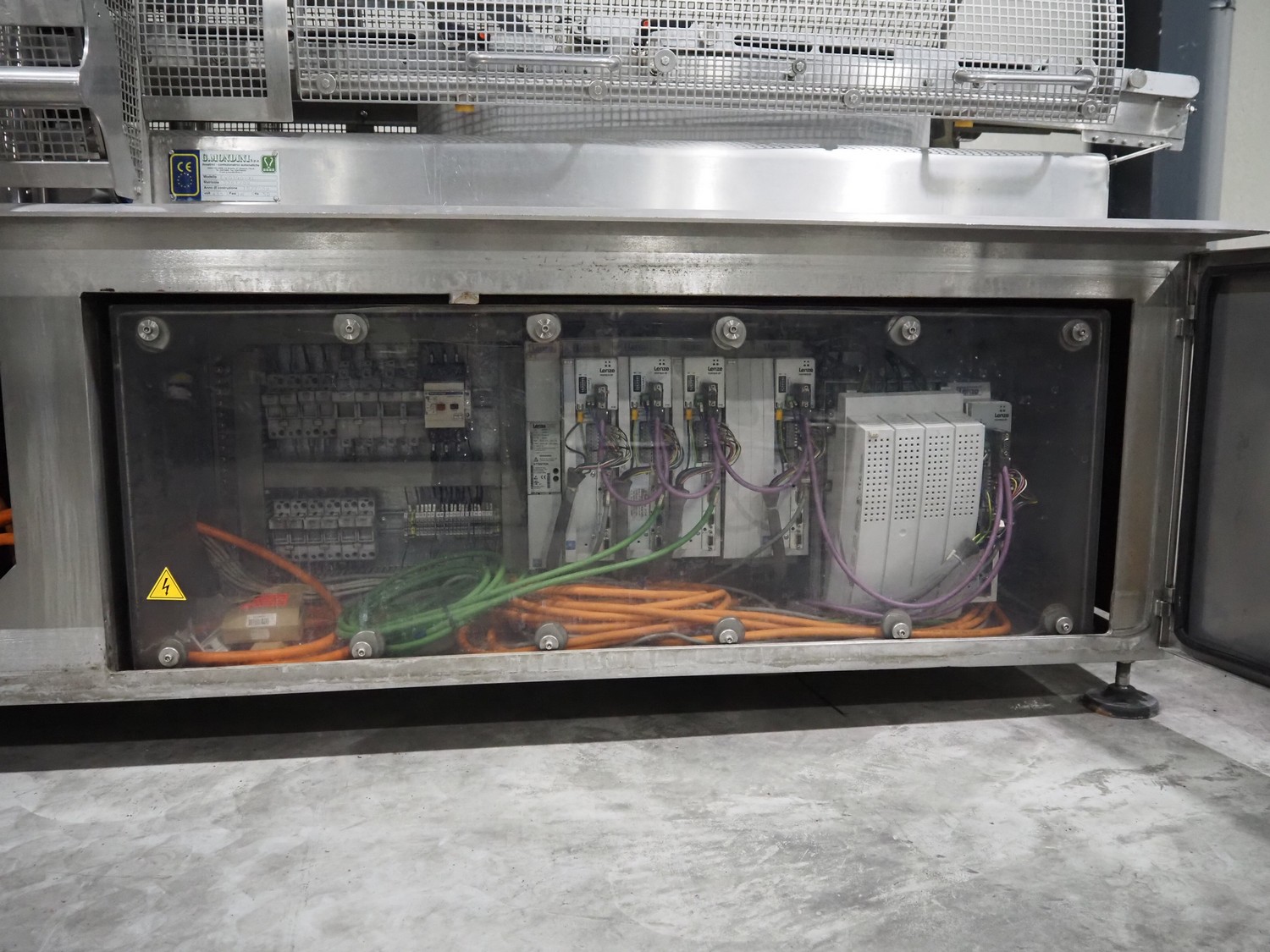 G. Mondini S.p.a. traysealer, model: EVO390-XL, number: 3761/09, year of construction: 10/2009, 415 V, 3 Ph, 50 Hz, infeed chain with dividers, divider height: 20 mm, distance between dividers: 190 mm, plastic belts, belt width: 280 mm, total dimensions: 11900 mm x 1300 mm x 2450 mm. S/s trolley to change dye's, model: CPS/R, number: 3761/09, year of construction: 10/2009, dye: (6x) 202 mm x 153 mm, total dimensions 1650 mm x 900 mm x 1550 mm. Including 3 pallets with dye's, dye: (5x) 255 mm x 161 mm, (5x) 232 mm x 182 mm, (7x) 180 mm x 128 mm. S/s frame for 3 dye sets model: CP/S-3+3, number: 3762/09, year of construction: 10/2009, dimensions: 4200 mm x 750 mm x 1860 mm.