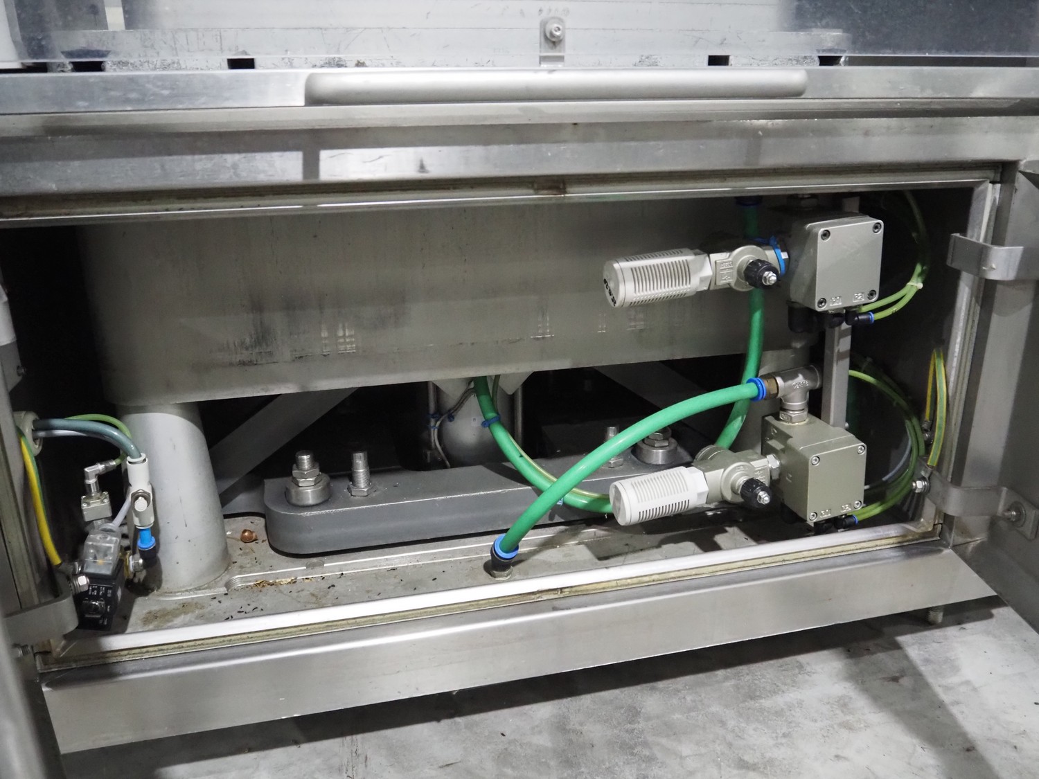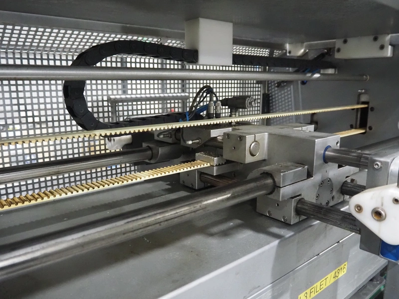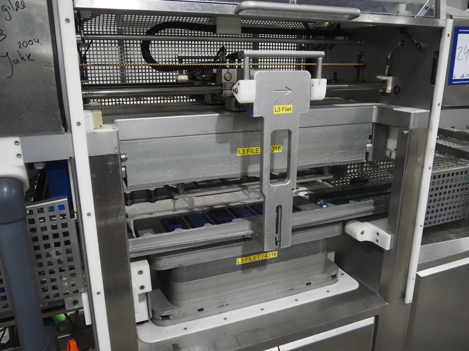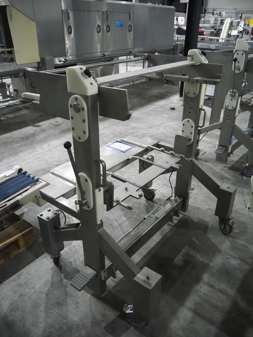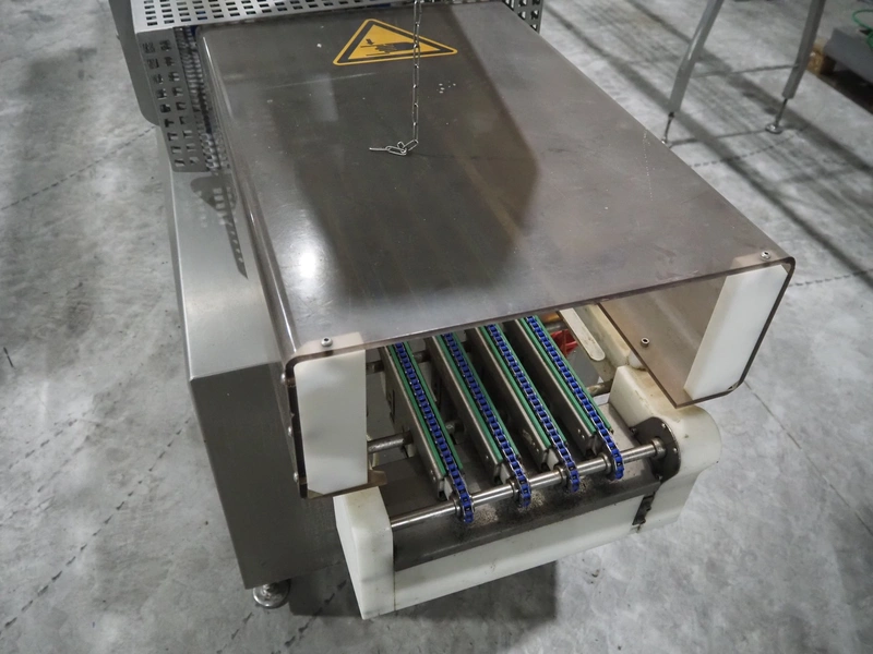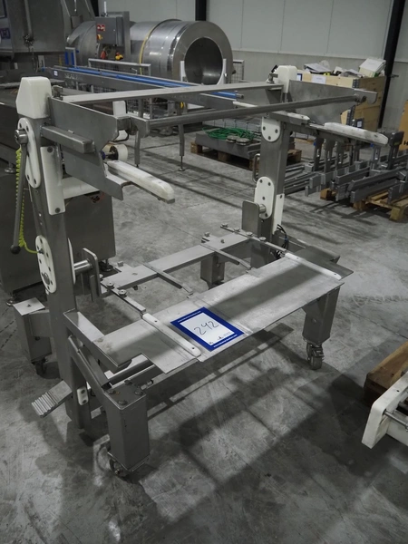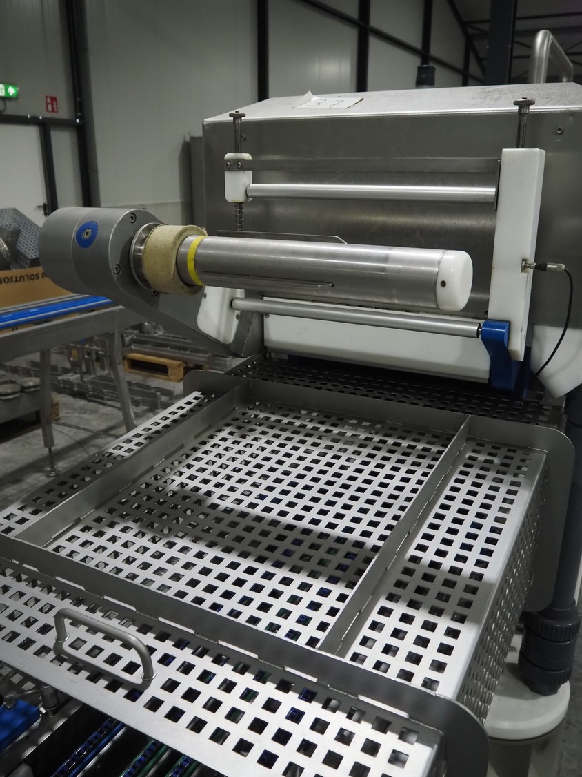 Sealpac traysealer, model: Sealpac 800, serial number: TVG 01109501, year of construction: 2004, 400/230 V, 3 Ph, 10 kW, weight: 2000 kg, dye: (6x) 258 mm x 70 mm, plastic belt, belt width: 360 mm, total dimensions: 6800 mm x 900 mm x 2100 mm. Including s/s trolley for dye's, dimensions: 1400 mm x 1000 mm x 1350 mm, pallet with dye, dye: (5x) 175 mm x 128 mm, total dimensions: 1200 mm x 800 mm x 400 mm.