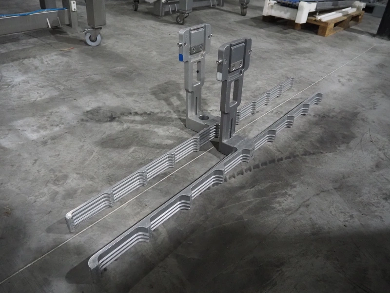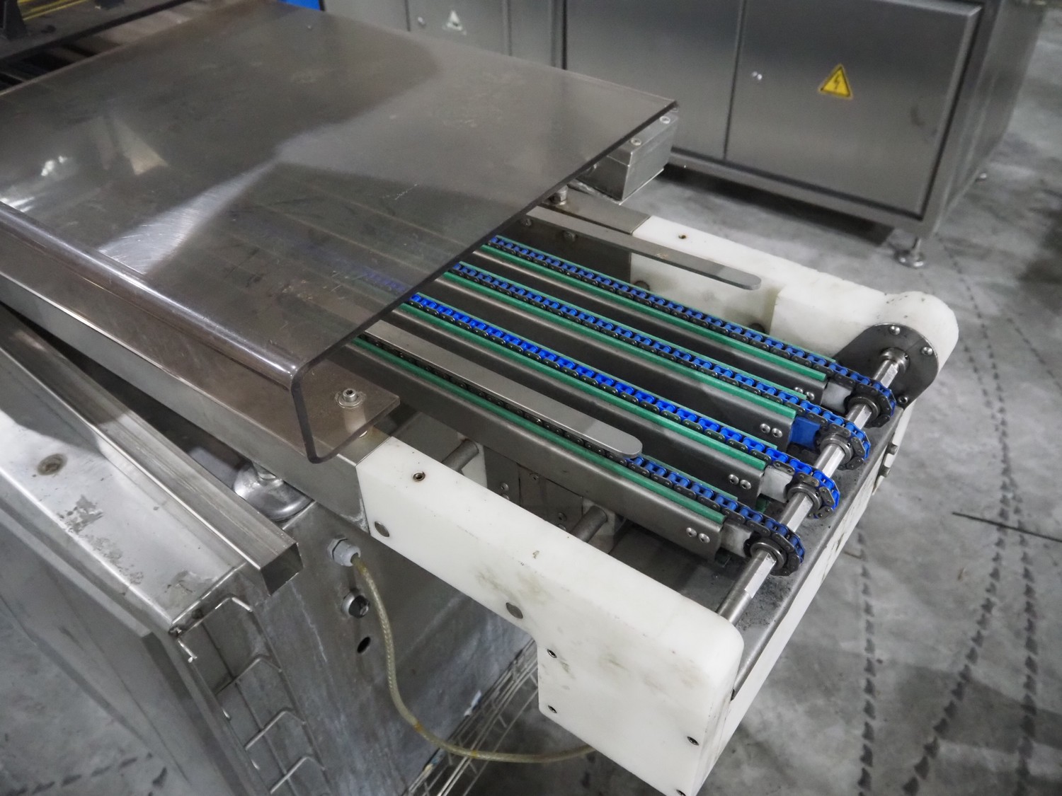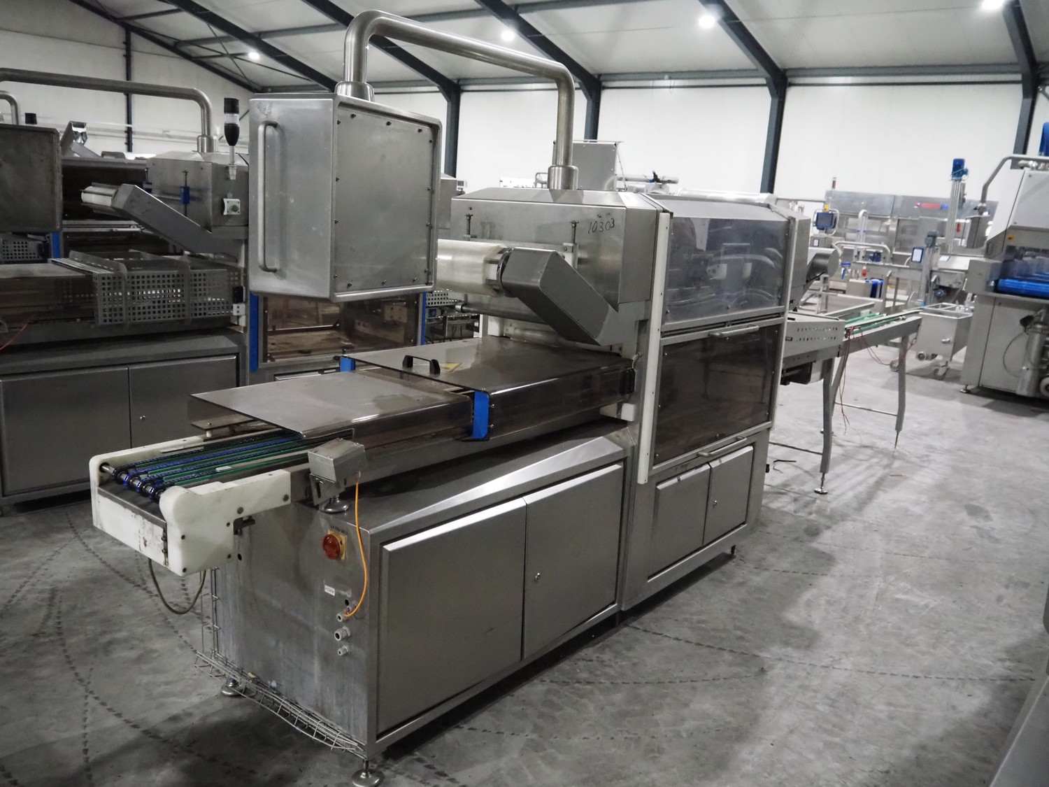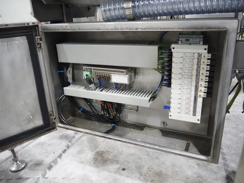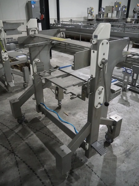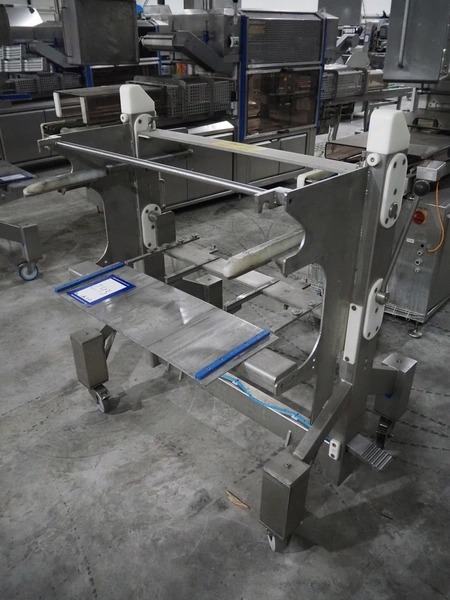 Sealpac traysealer, model: Sealpac 800, serial number: TVG 018640, year of construction: 2003, 400/230 V, 3 Ph, 10 kW, weight: 2000 kg, film width: 325 mm, dye: (4x) 260 mm x 158 mm, total dimensions: 6000 mm x 900 mm x 2100 mm. Including s/s trolley for dye's, dye: (4x) 225 mm x 178 mm, (5x) 230 mm x 168 mm, total dimensions: 1200 mm x 800 mm x 500 mm.