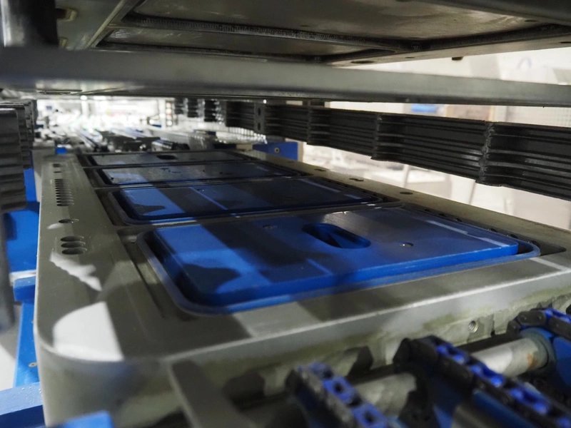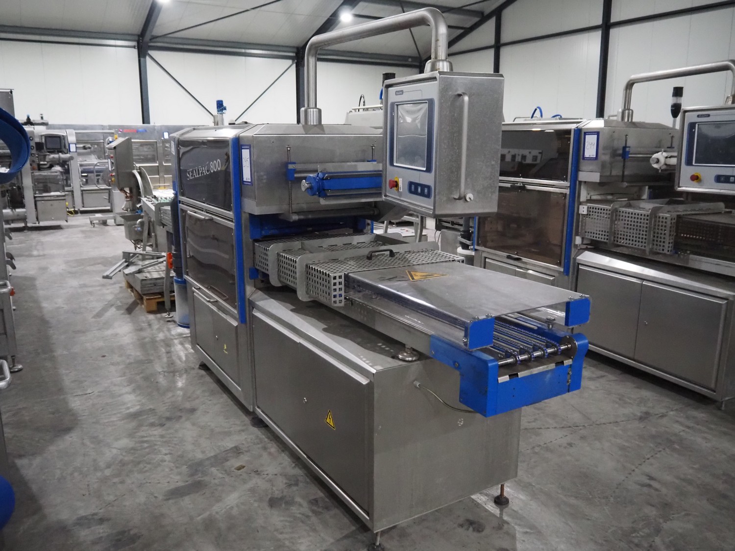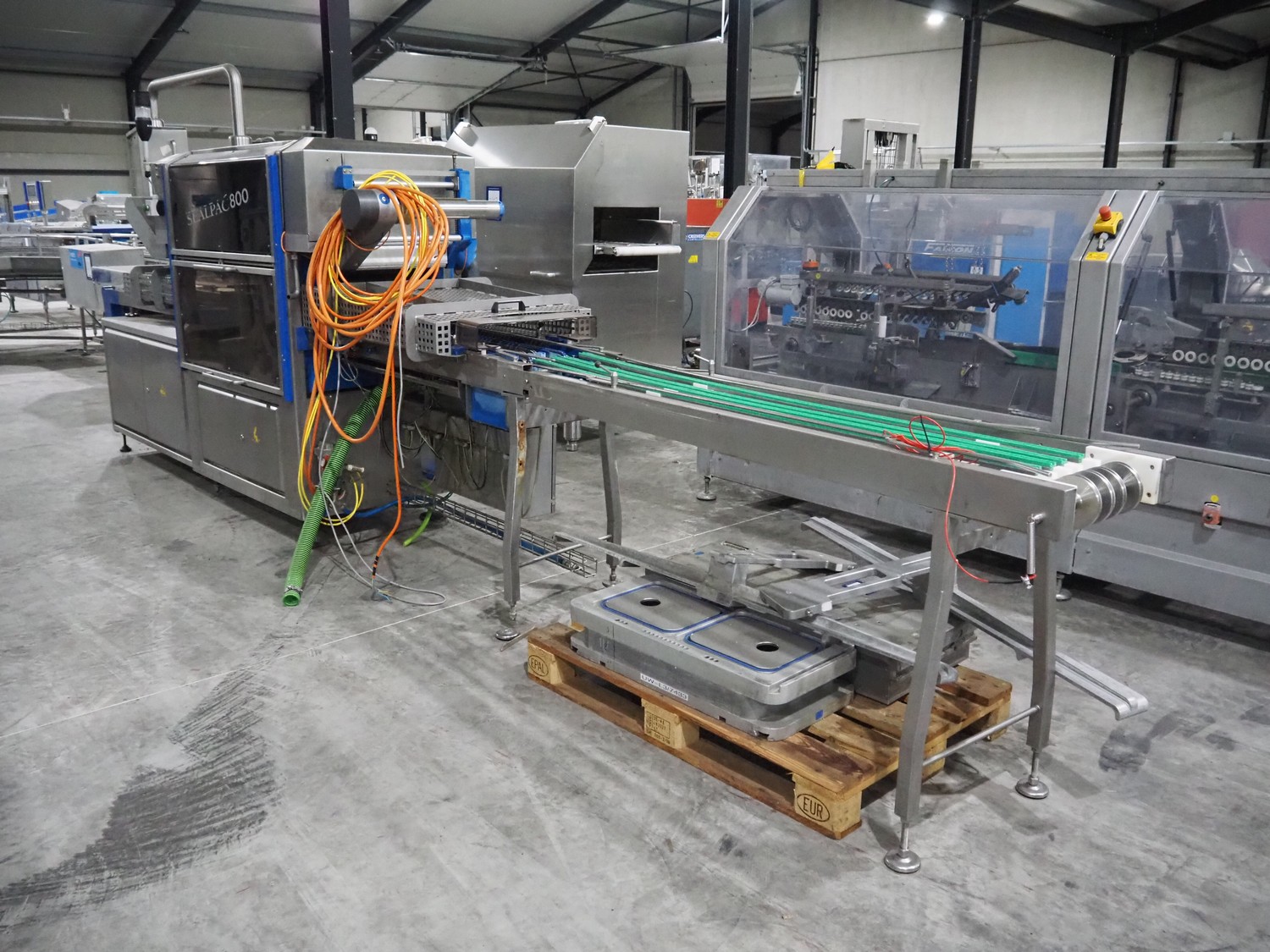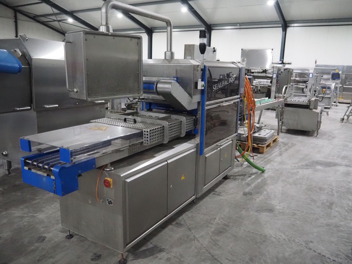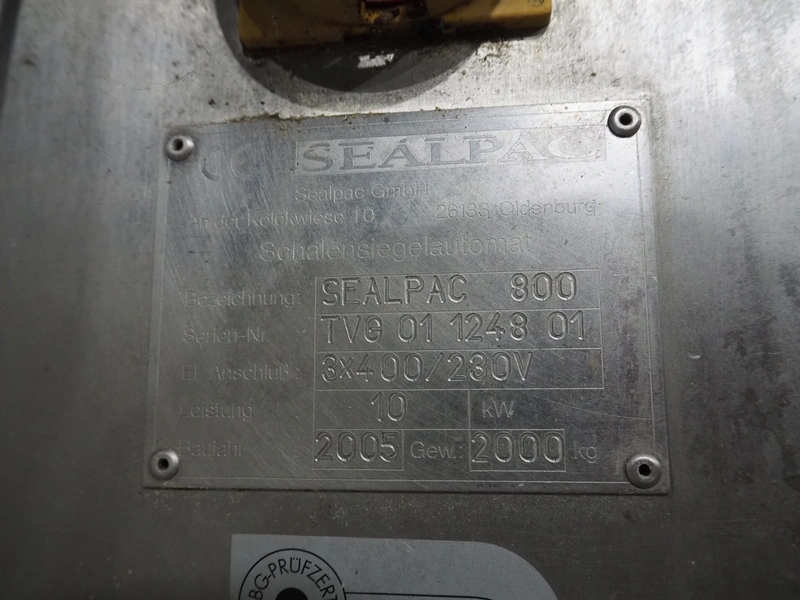 Sealpac traysealer, type: Sealpac 800, serial number: TVG 01124801, year of construction: 2005, 400/230 V, 3 Ph, 10 kW, dye: (4x) 258 mm x 158 mm, total dimensions: 6100 mm x 950 mm x 2100 mm. Including pallet with dye, dye: (2x) 304 mm x 243 mm, total dimensions: 1200 mm x 800 mm x 400 mm.