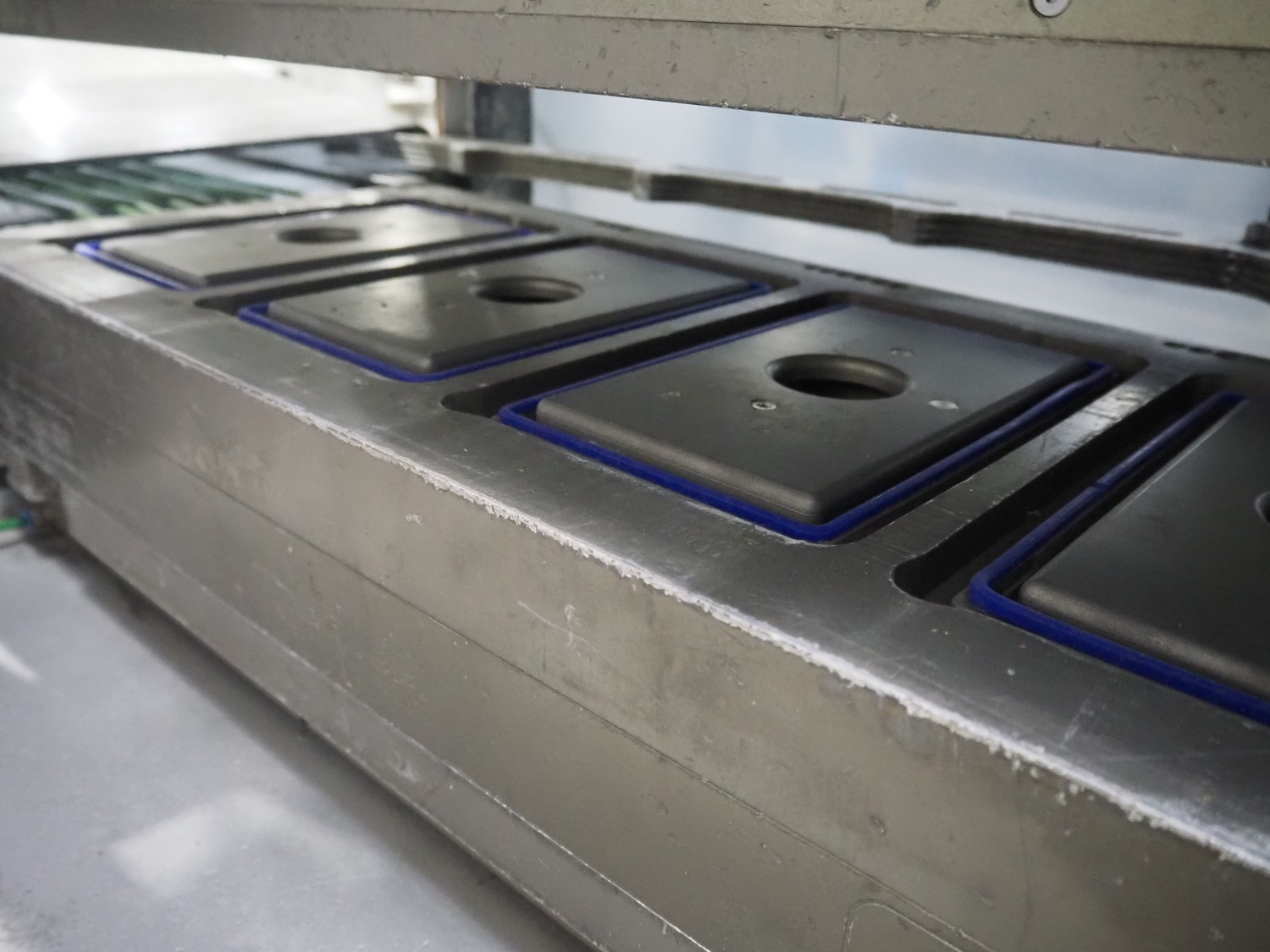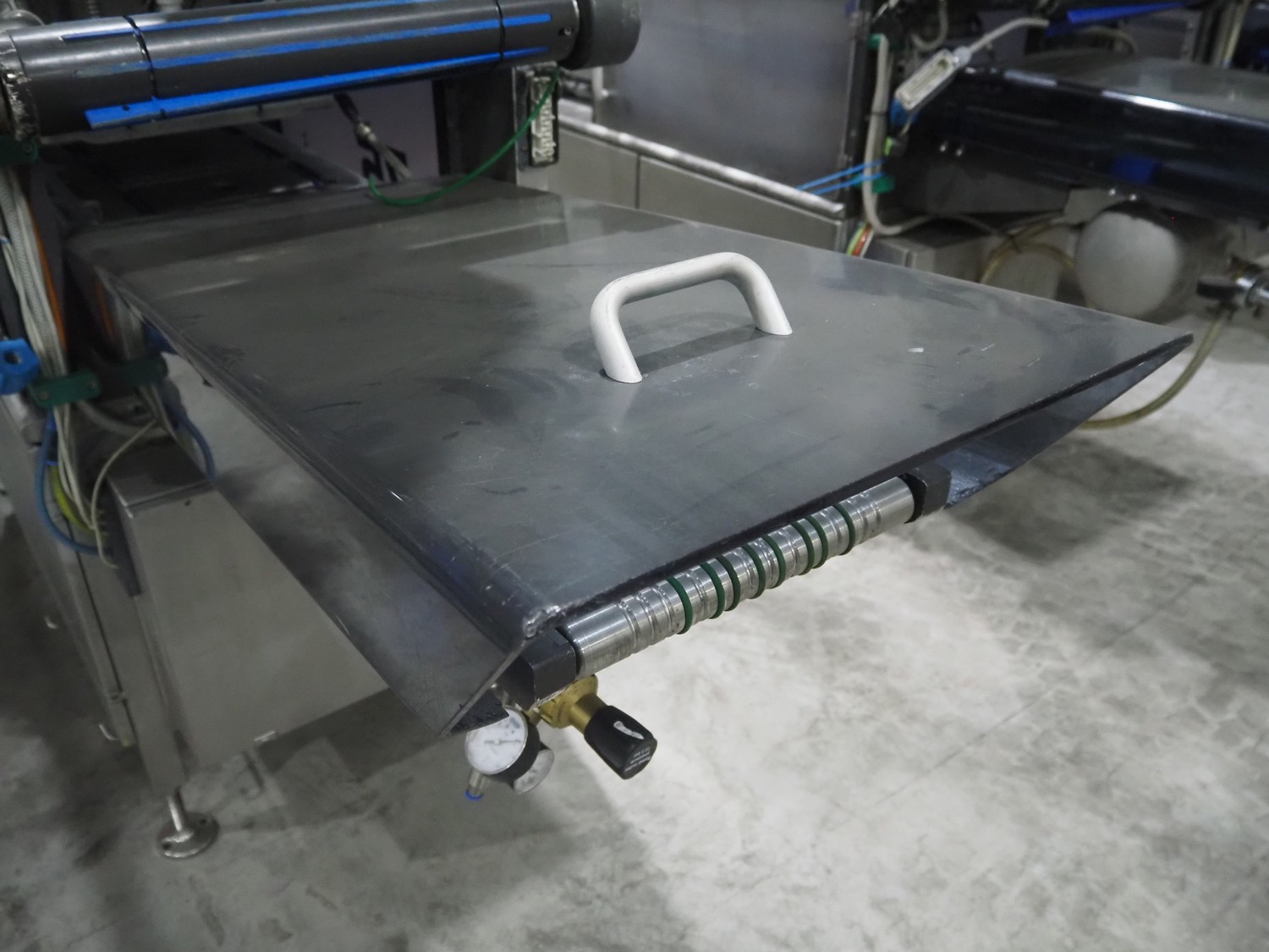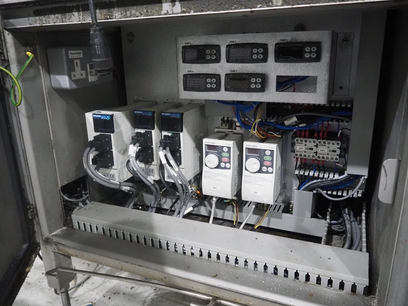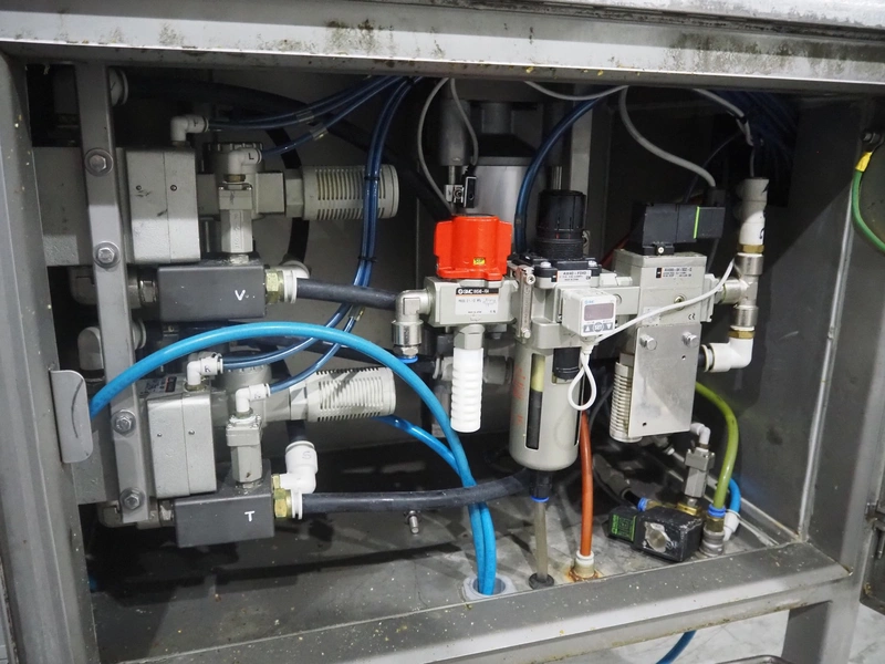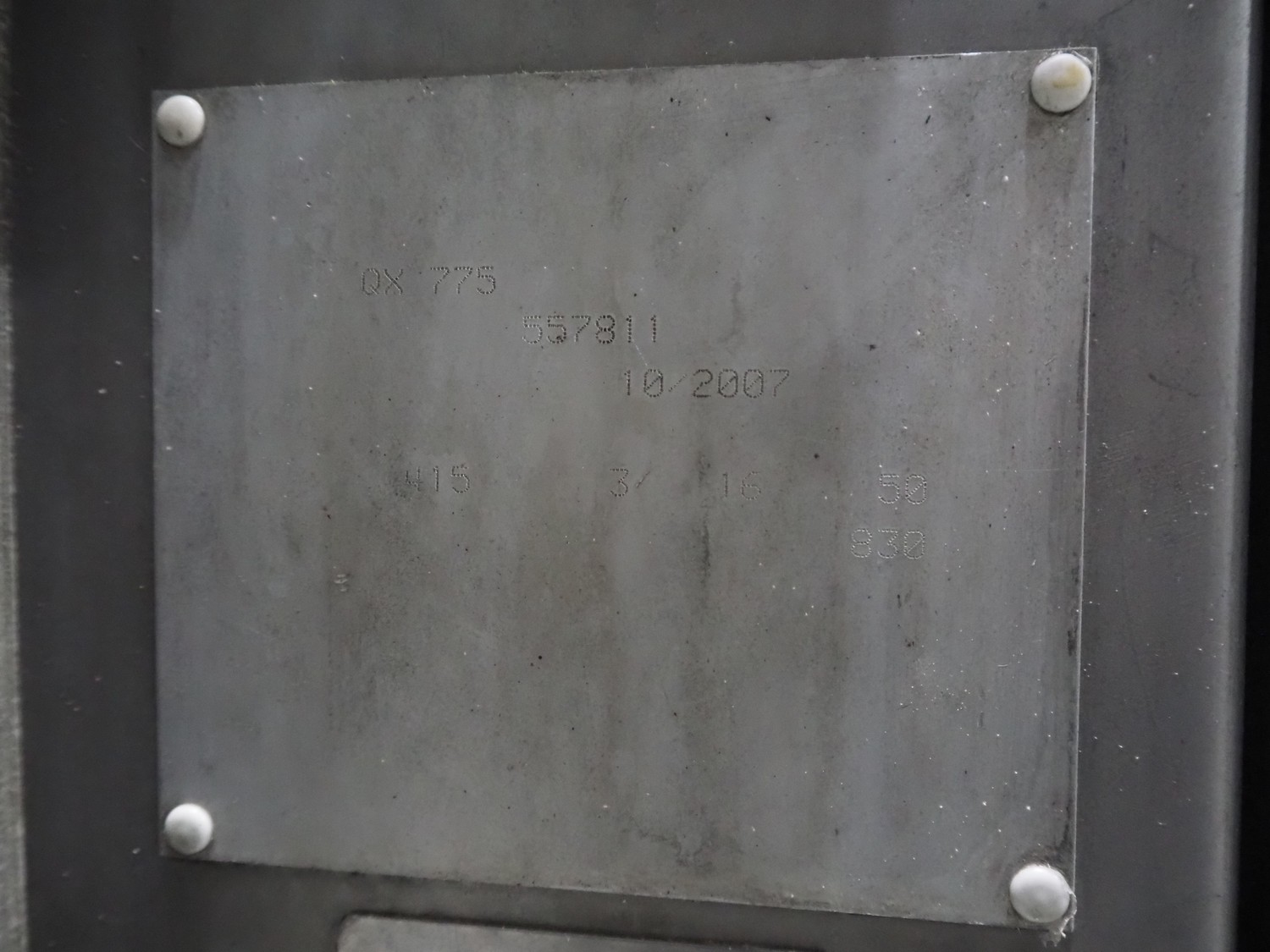 Ishida traysealer, model: QX775, serial number: 557811, year of construction: 10/2007, 415 V, 3 Ph, 50 Hz, 16 A, 830 kg, dimensions dye: (4x) 265 mm x 165 mm, total dimensions: 4750 mm x 800 mm x 1820 mm. Missing infeed belt.