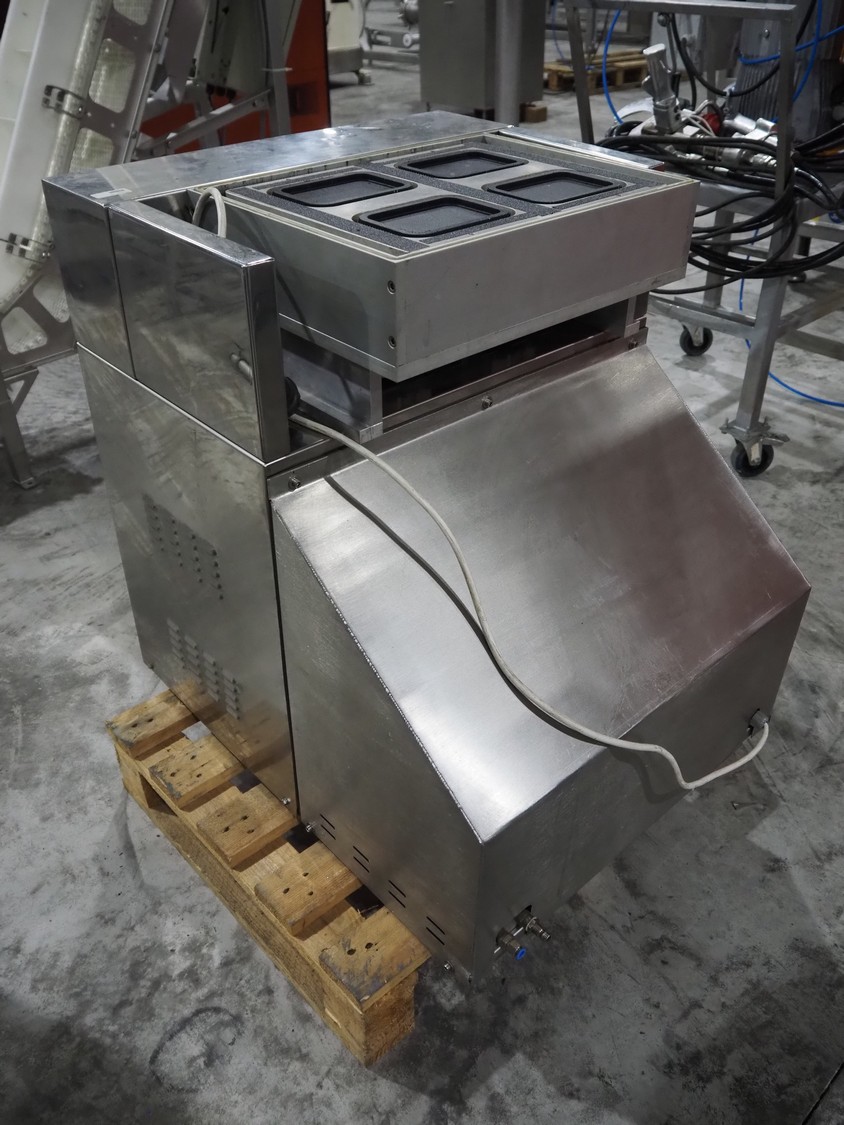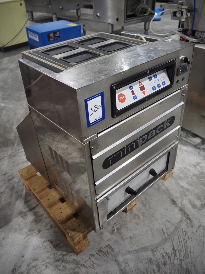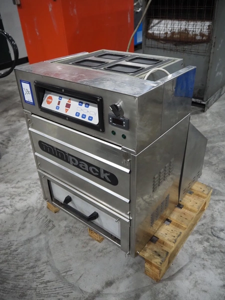 Minipack-Torre S.p.A. traysealer, number: 95149, 220 V, 50 Hz, 8 A, 2000 W, total dimensions: 610 mm x 750 mm x 740 mm, including pallet with forming set, dye: (4x) 120 mm x 80 mm.