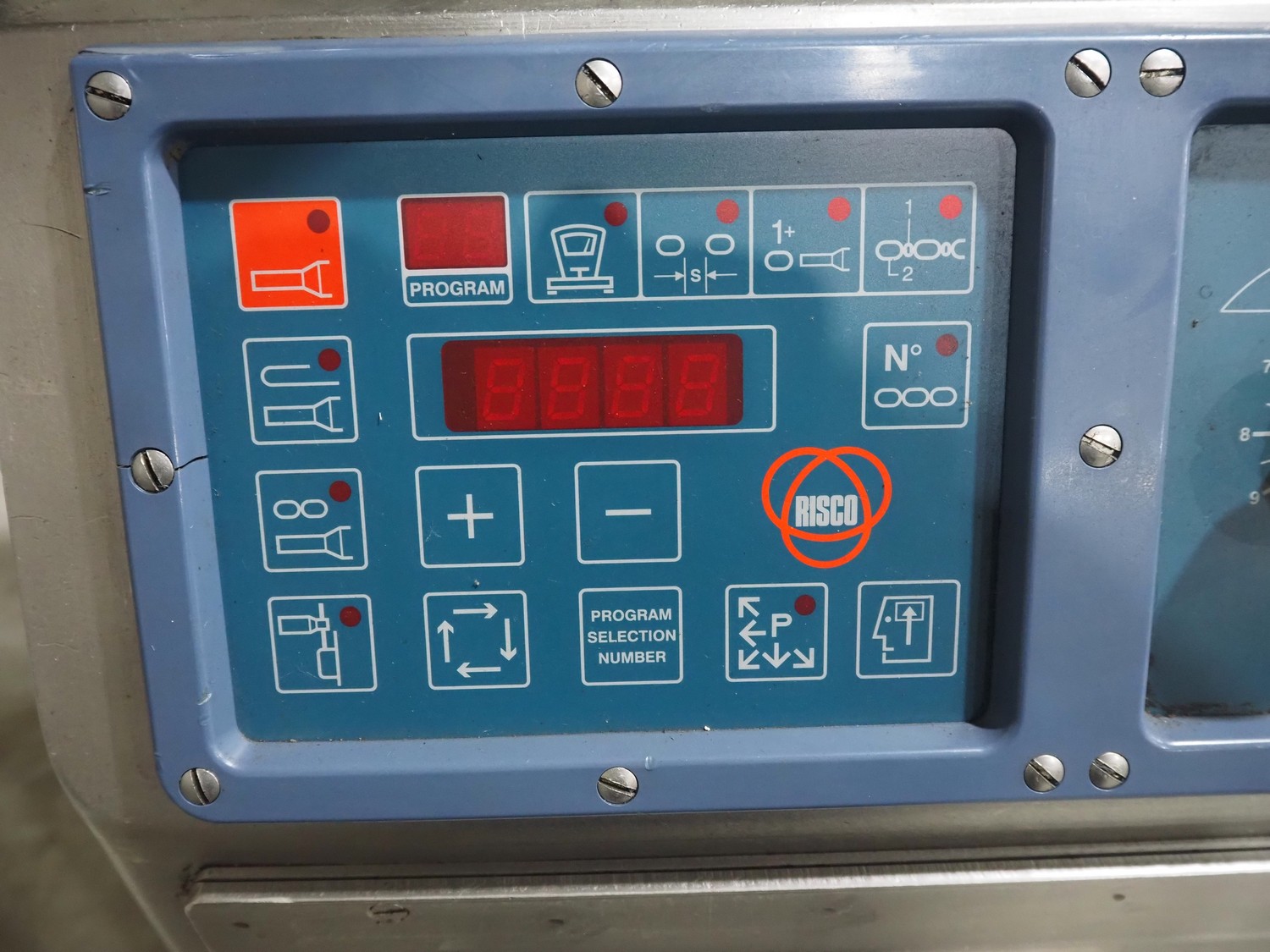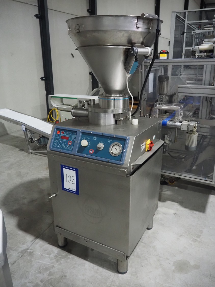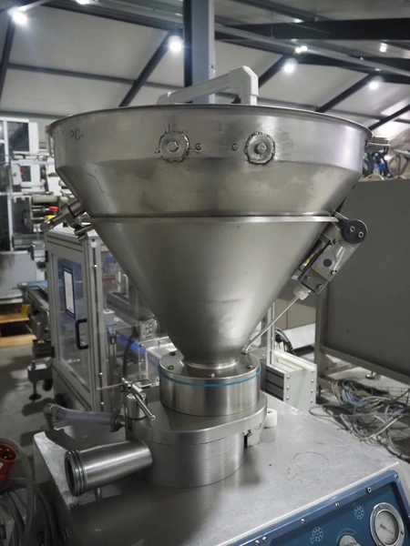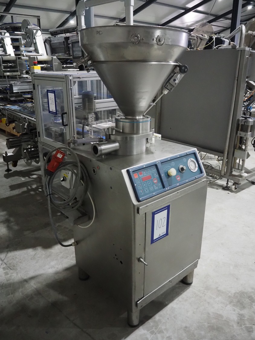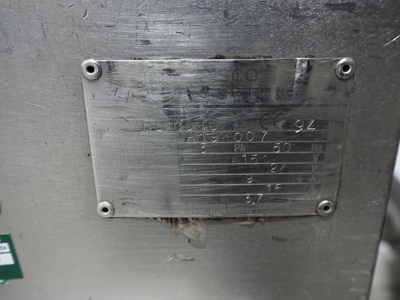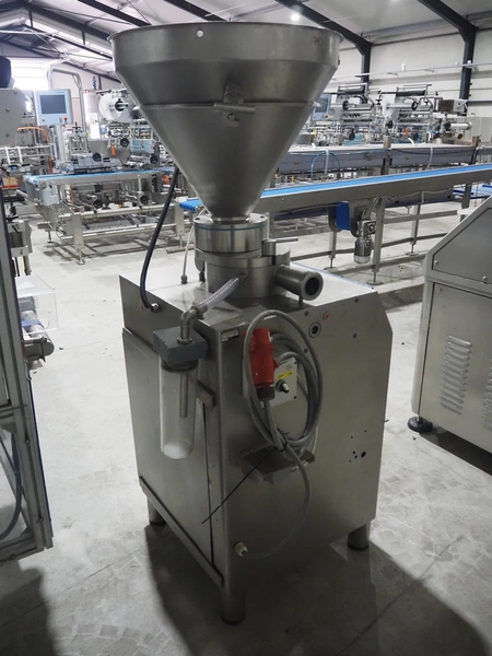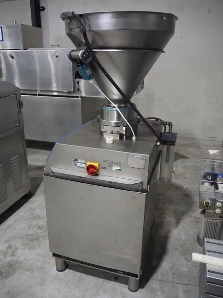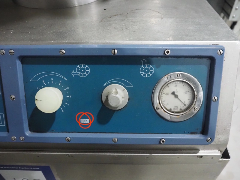 Risco SPA vacuum filling machine, type: RS 1040, serial number: A194007, year of construction: 1994, 415 V, 9/16 A, 3.7 kW, dimensions: 700 mm x 800 mm x 1650 mm. Rotor is incomplete, scraper is missing.