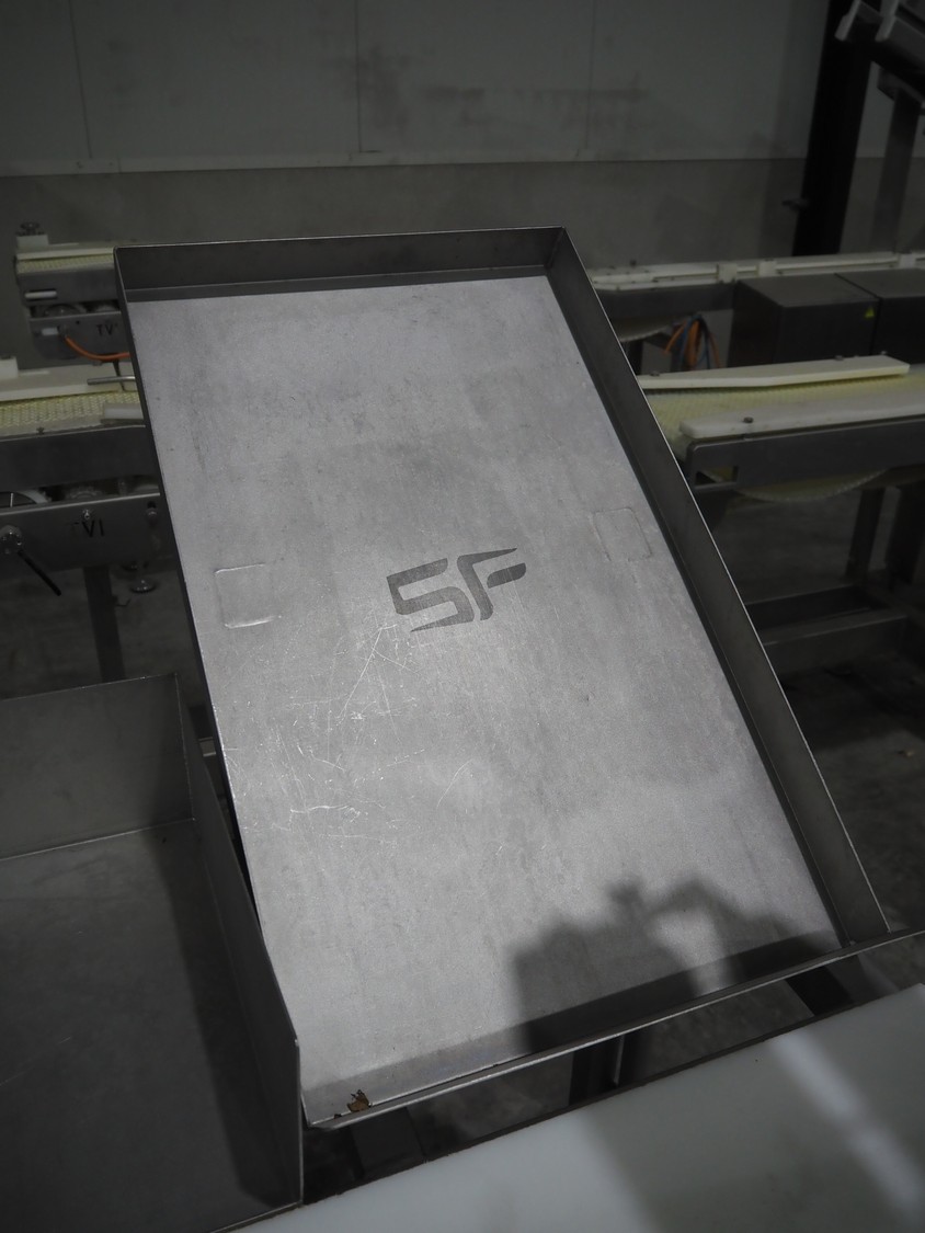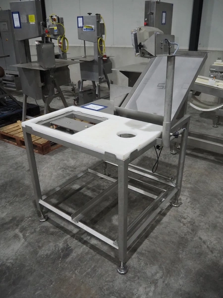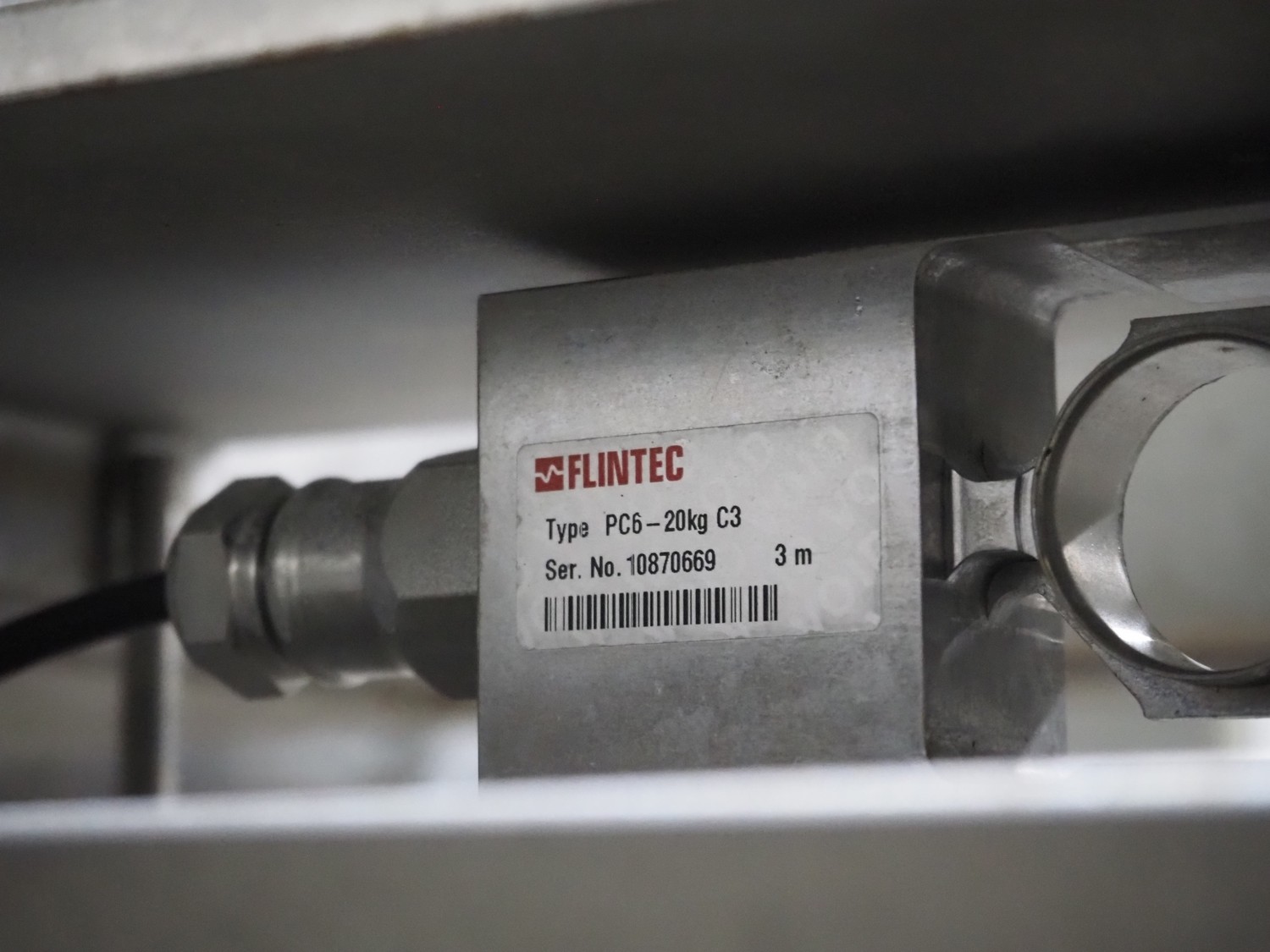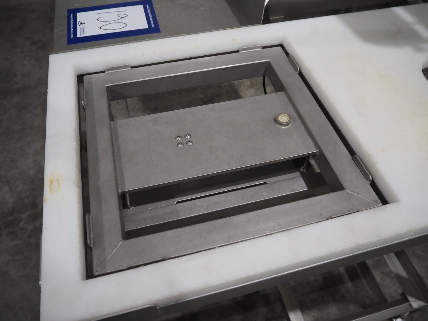 SF Engineering Food Processing Solutions weighing table with indicator, type: SF-190, dimensions scale: 415 mm x 415 mm, total dimensions: 1150 mm x 1000 mm x 1450 mm.