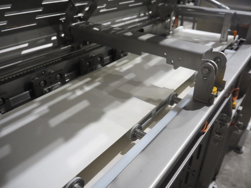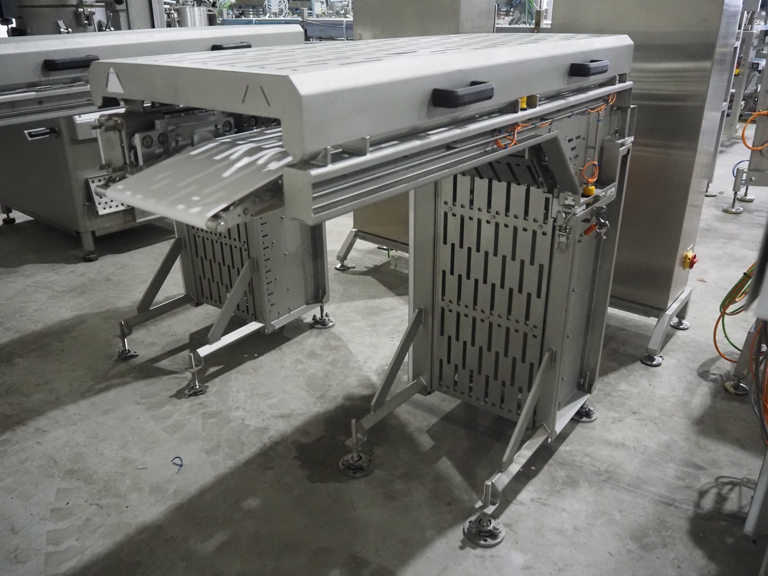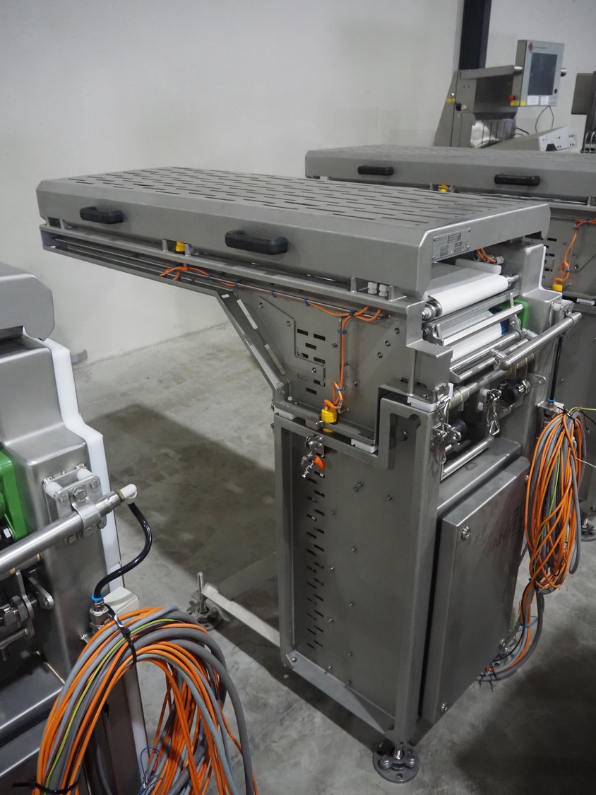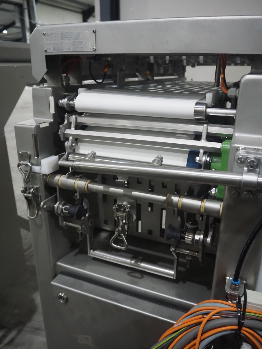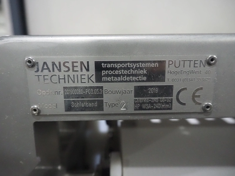 Jansen Techniek shuttle conveyor, type: SBK150, model: Schietband, year of construction: 2019, plastic belt, belt width: 240 mm, total dimensions: 1400 mm x 600 mm x 1250 mm. Including switch cabinet, dimensions: 700 mm x 500 mm x 1250.