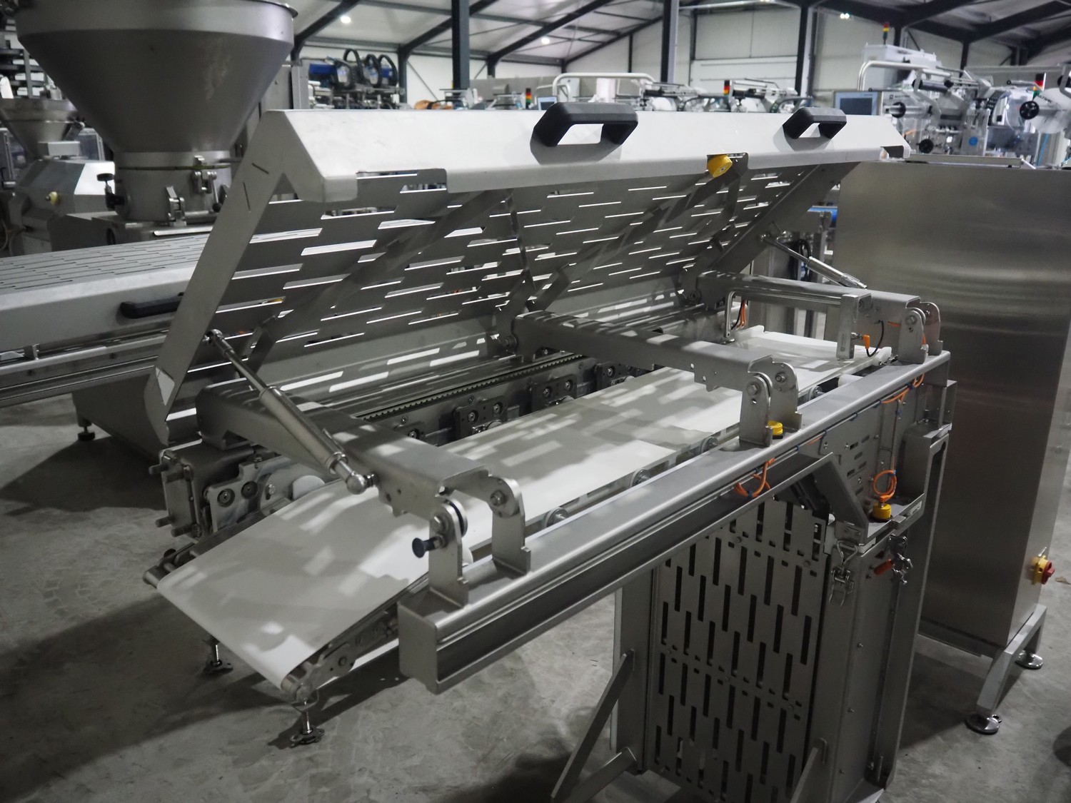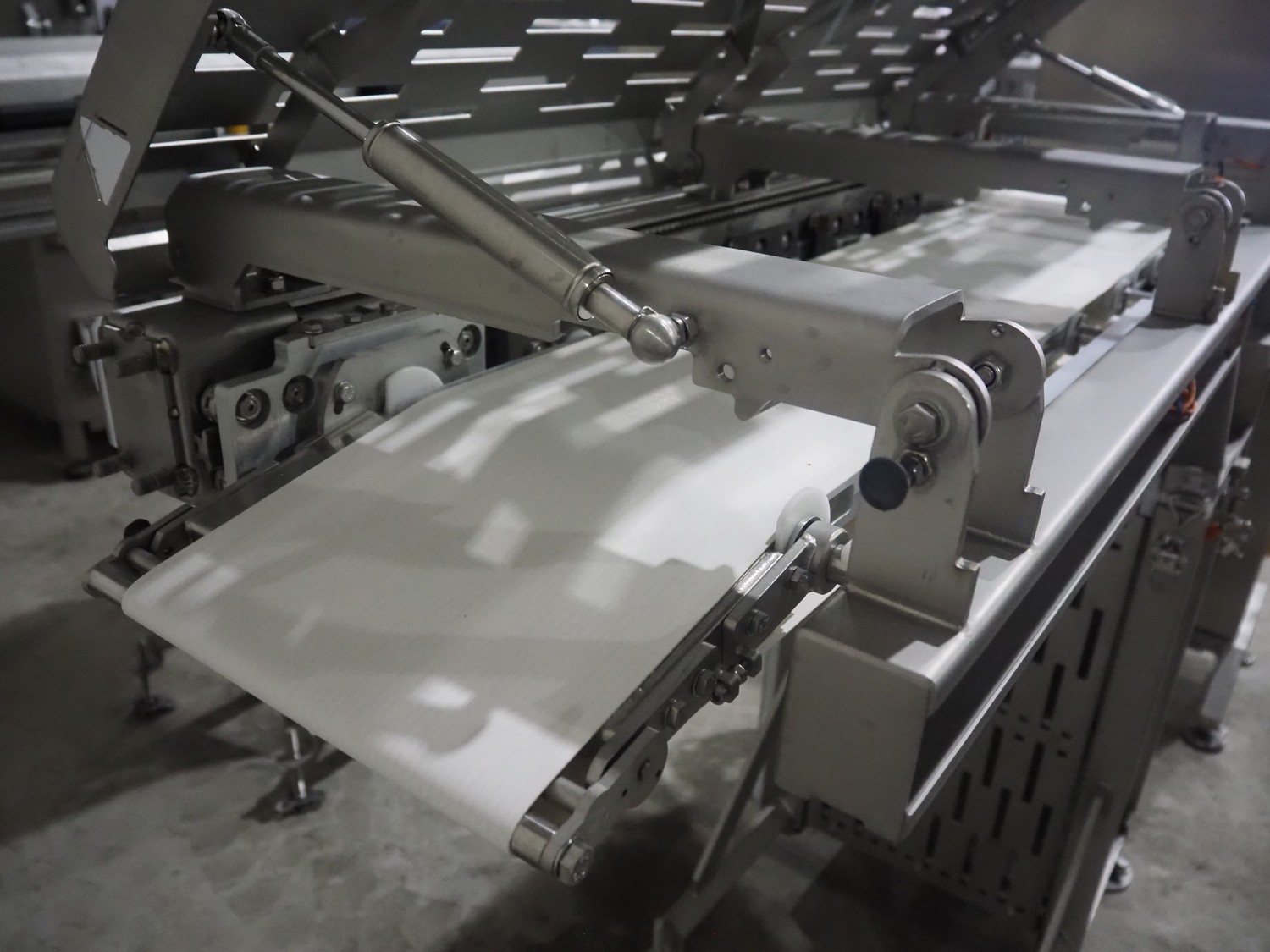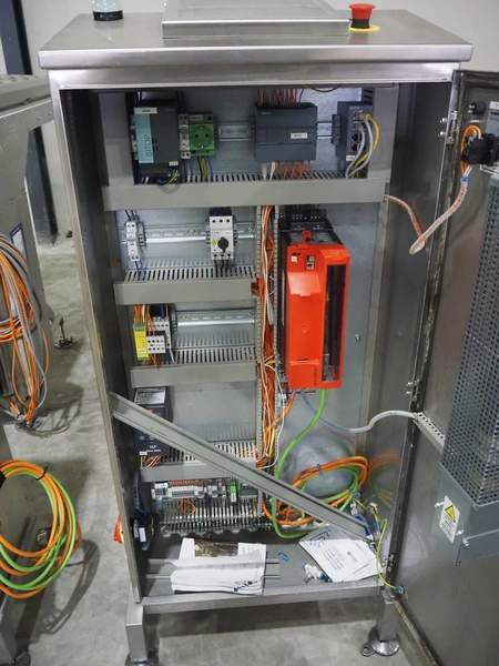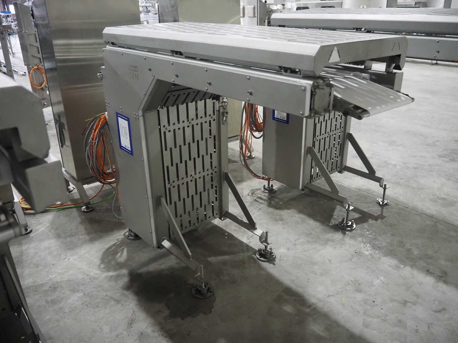 Jansen Techniek shuttle conveyor, type: SBK150, model: Schietband, year of construction: 2019, plastic belt, belt width: 240 mm, total dimensions: 1400 mm x 600 mm x 1250 mm. Including switch cabinet, dimensions: 700 mm x 500 mm x 1250.