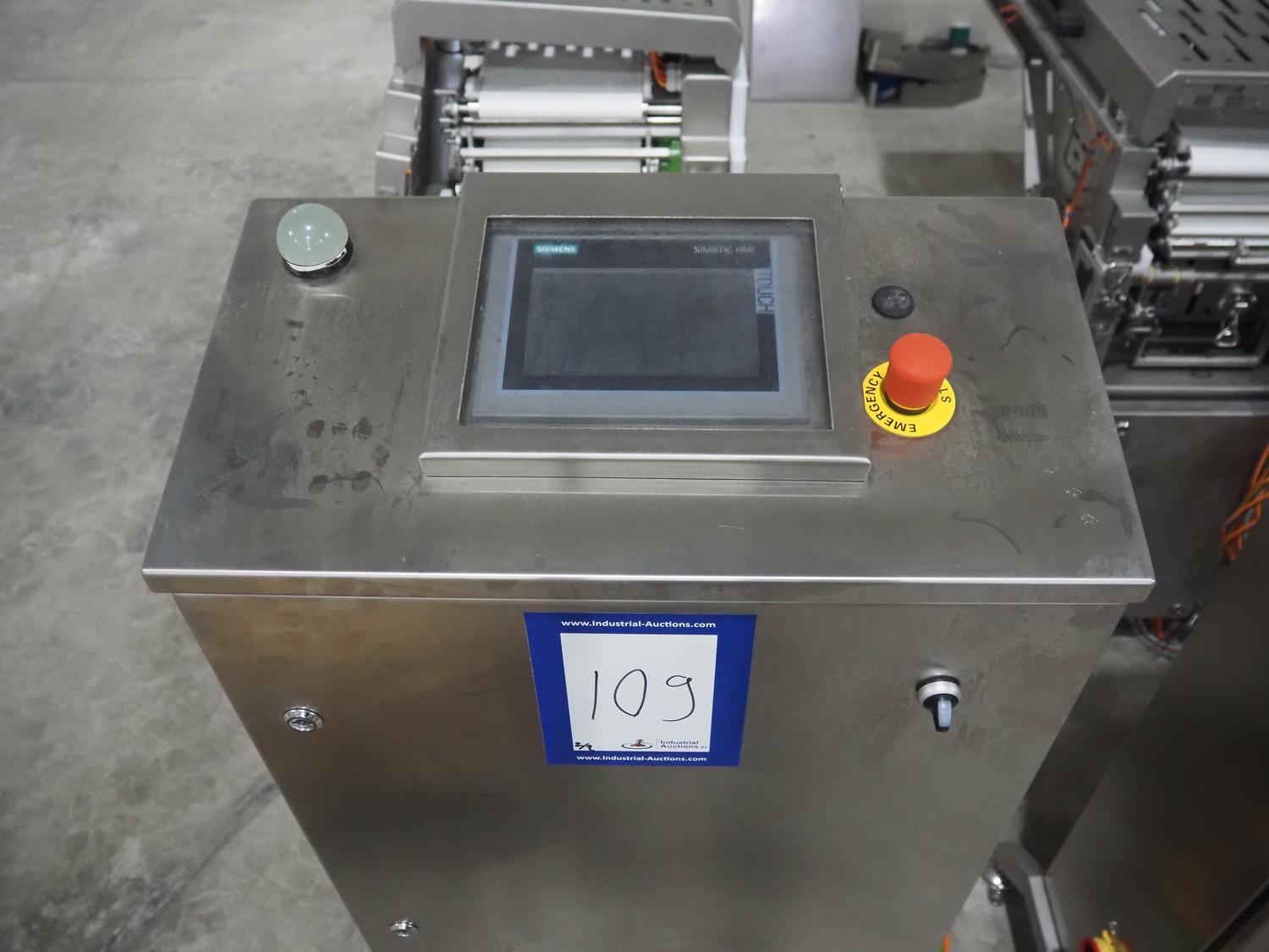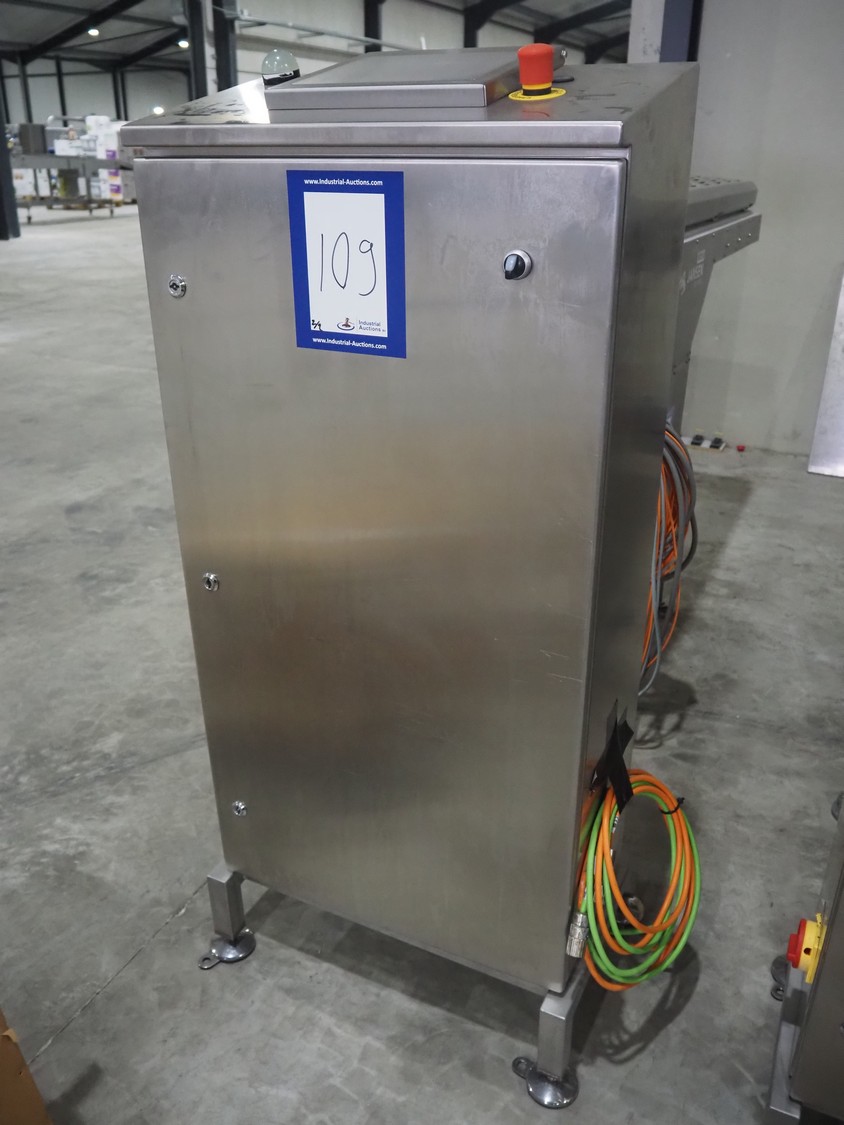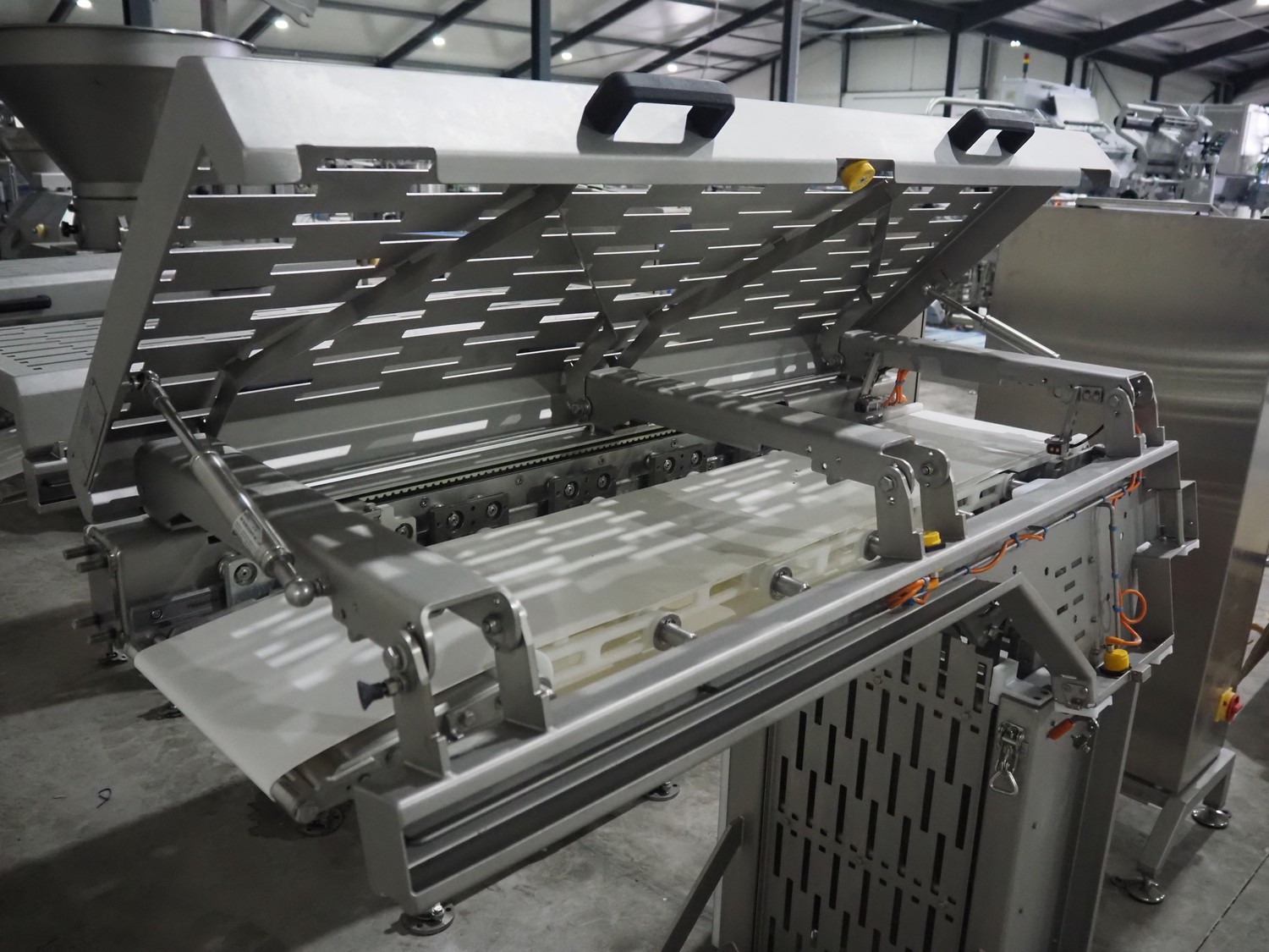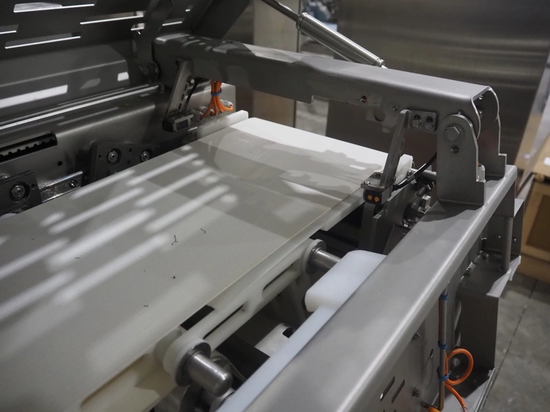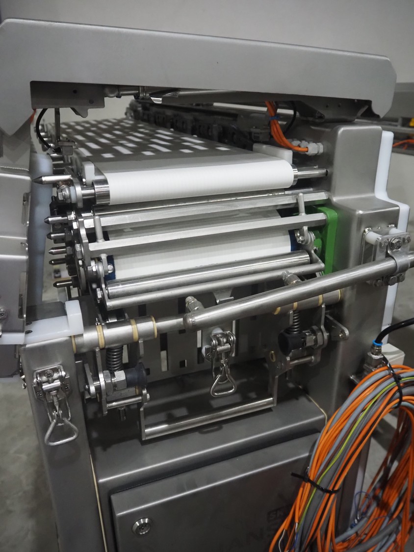 Jansen Techniek shuttle conveyor, type: SBK150, model: schietband, year of construction: 2019, plastic belt, belt width: 240 mm, total dimensions: 1400 mm x 600 mm x 1250 mm. Including switch cabinet, dimensions: 700 mm x 500 mm x 1250.