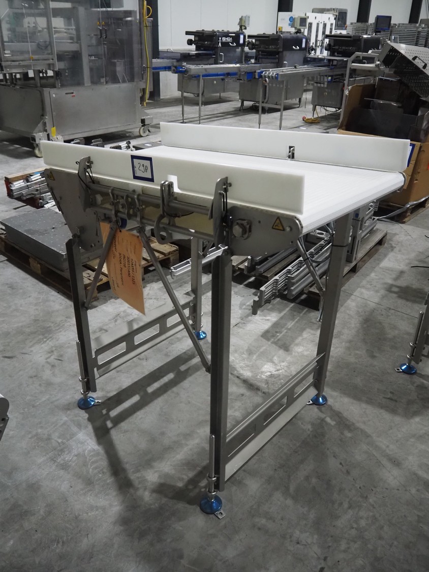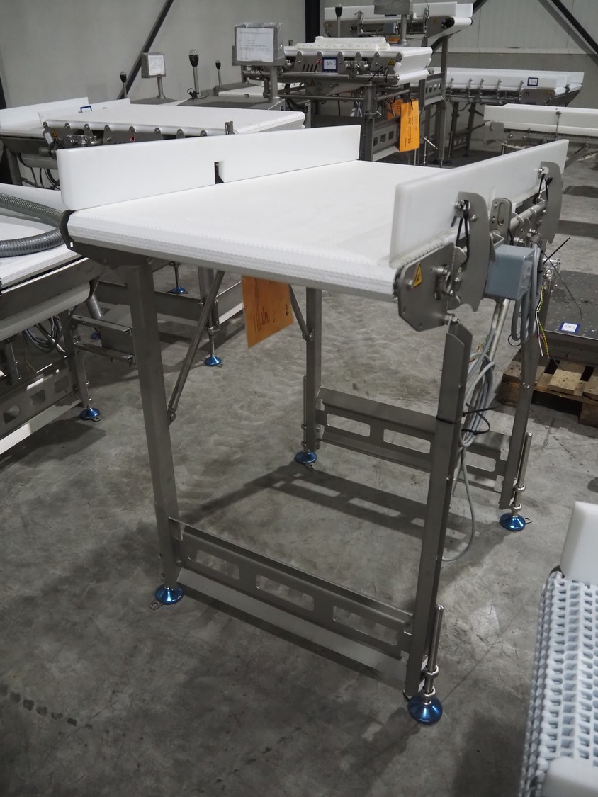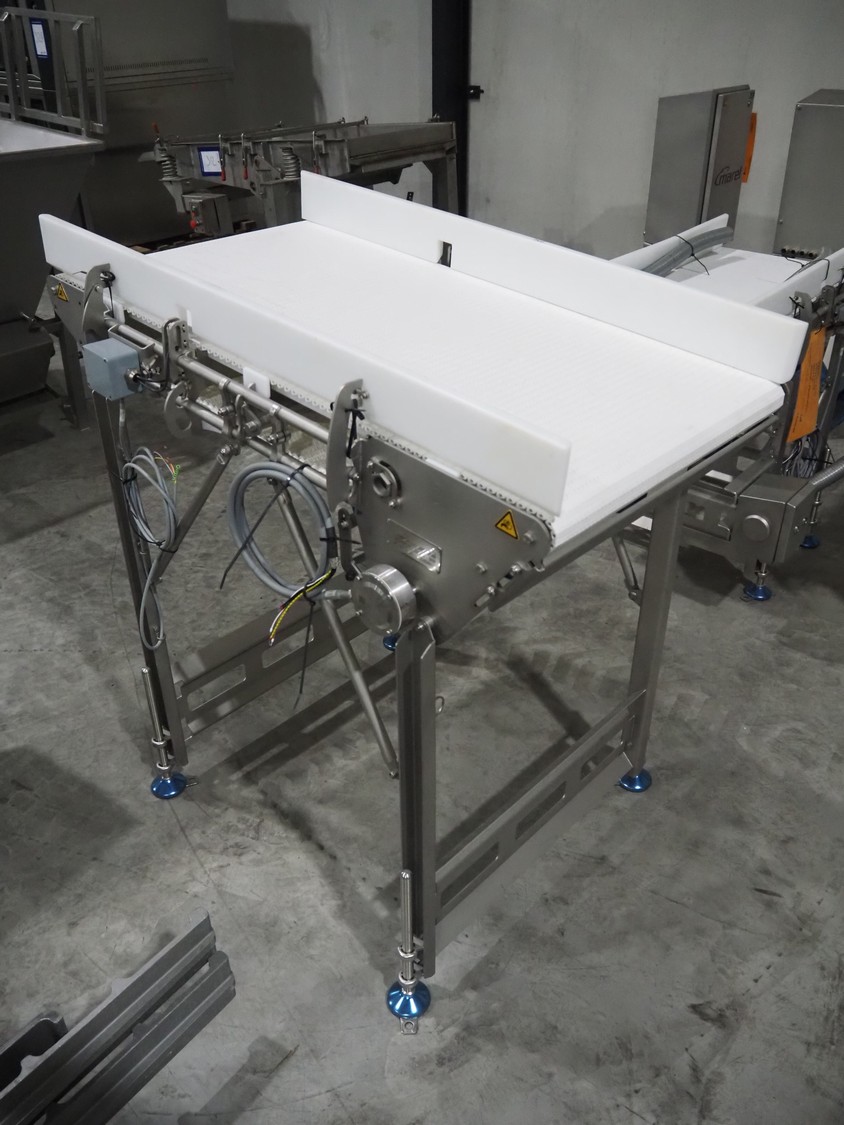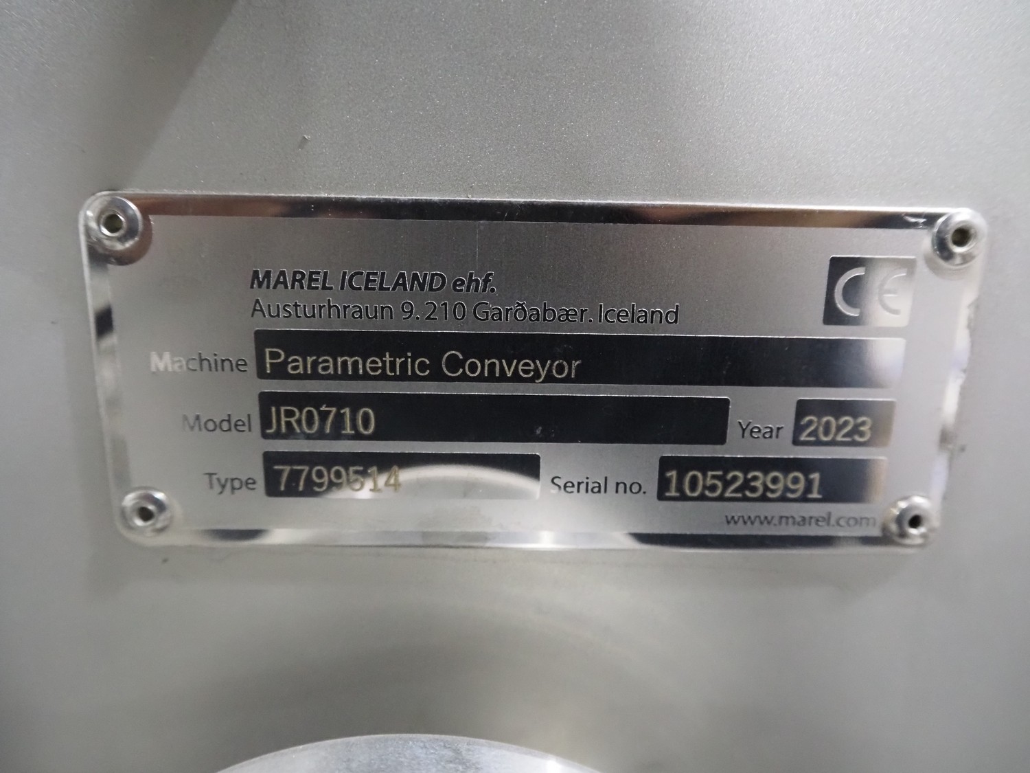Marel elevating belt, model: JR0710, type: 7799514, serial number: 10523991, year of construction: 2023, plastic belt, belt width: 610 mm, total dimensions: 1170 mm x 800 mm x 1230 mm.