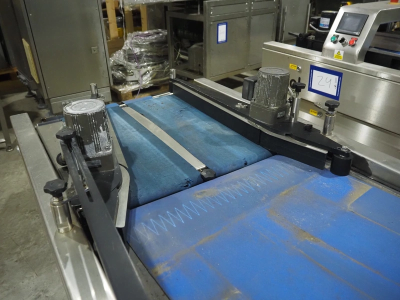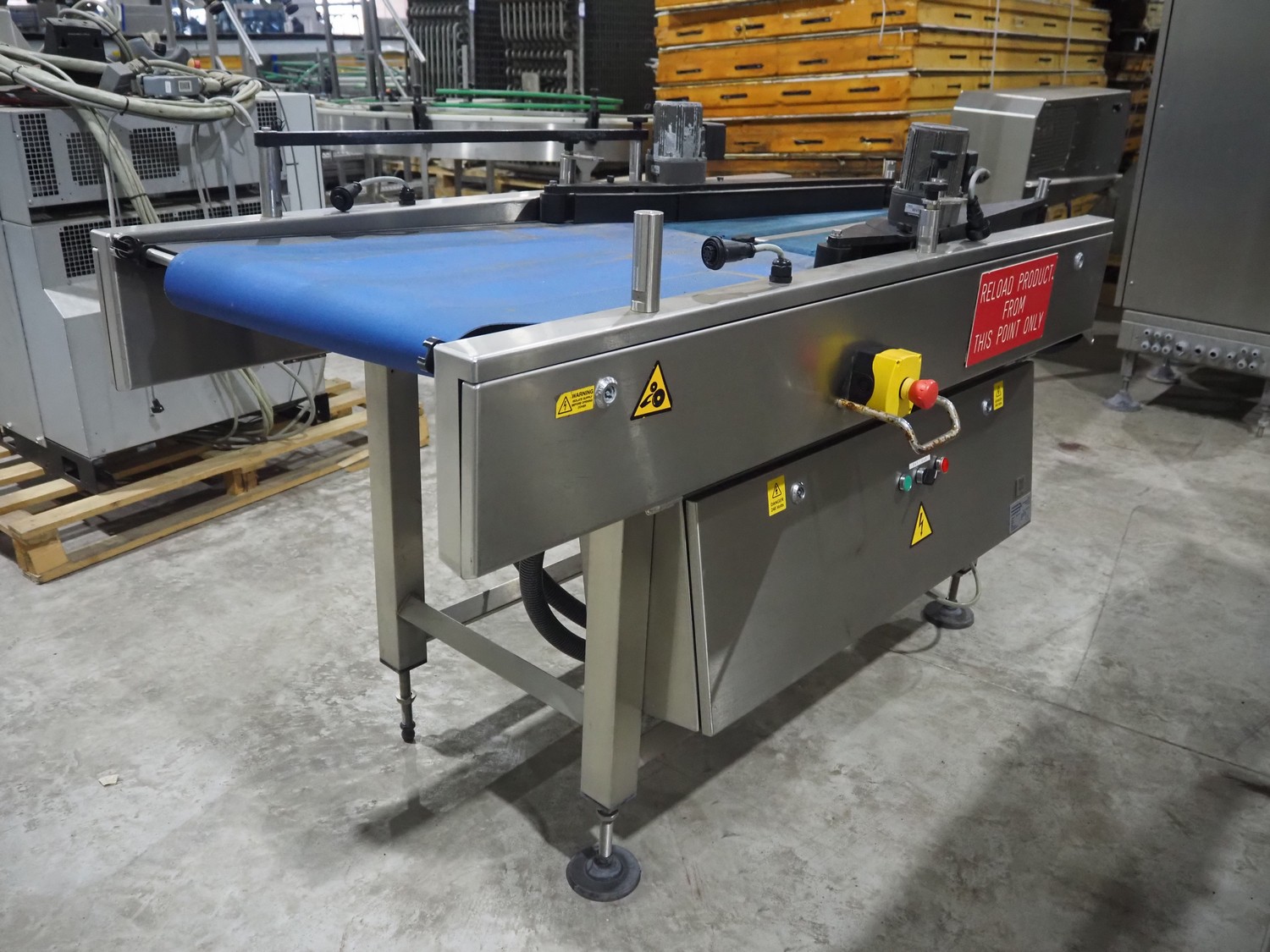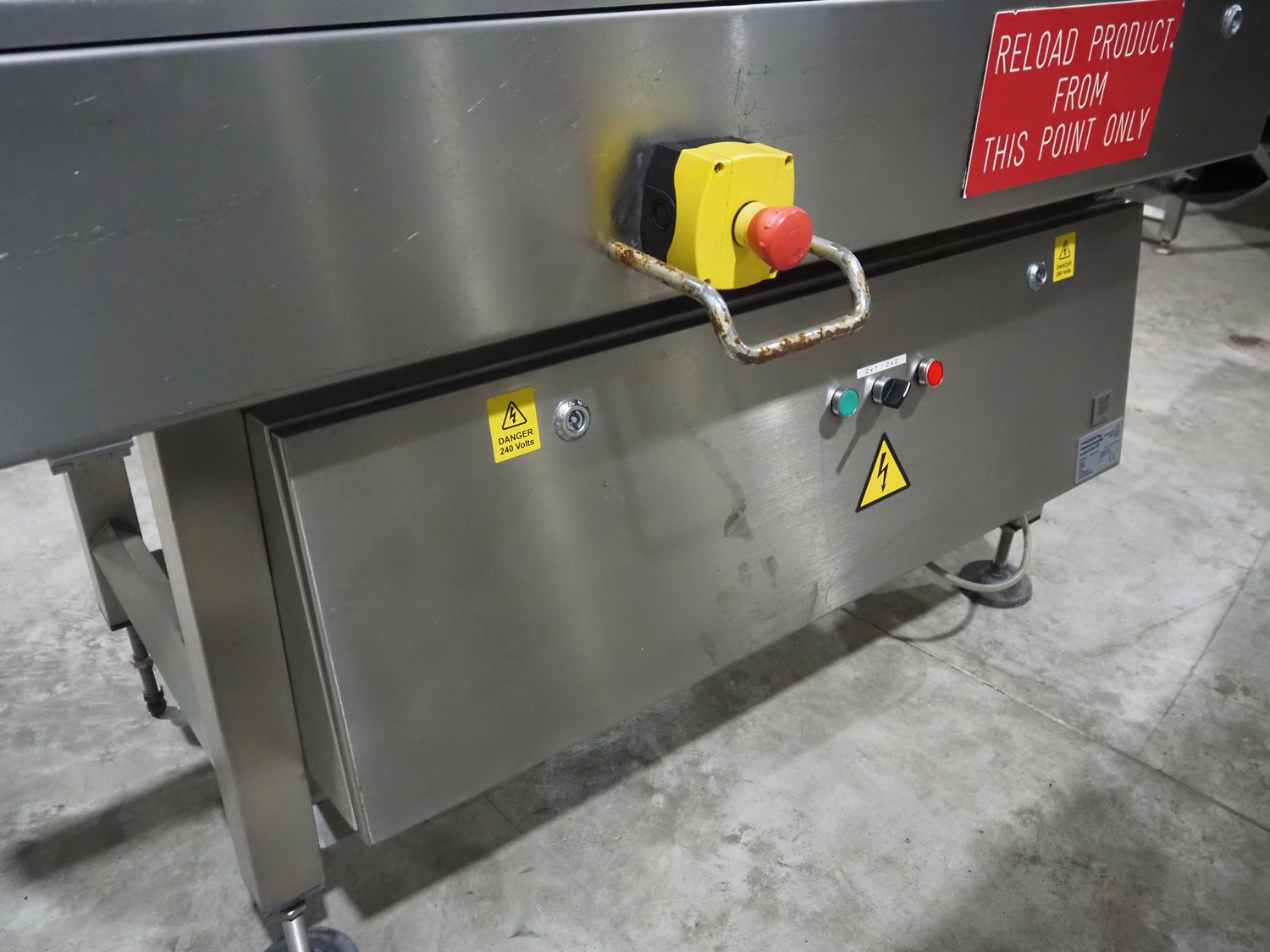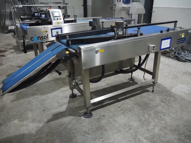 Converging Solutions converging lane dividing belt, model: Integrator Mk2, serial number: CS5455, year of construction: 08/2008, plastic belts, belt width: (2x) 225 mm, (1x) 625 mm, total dimensions: 1580 mm x 820 mm x 1120 mm.