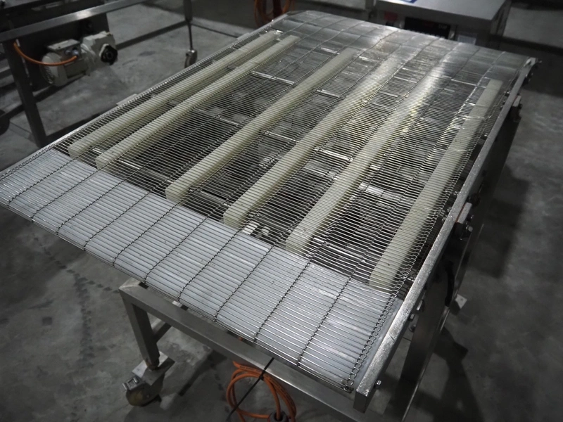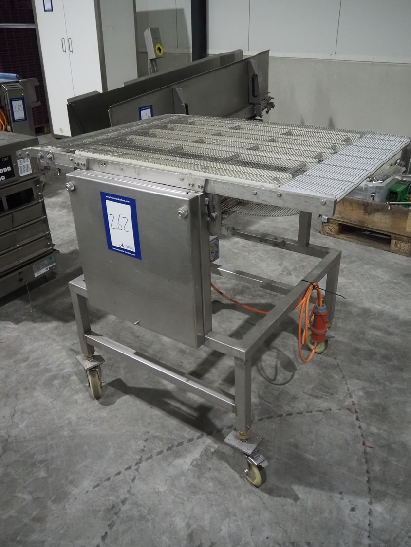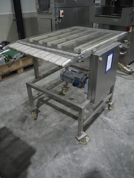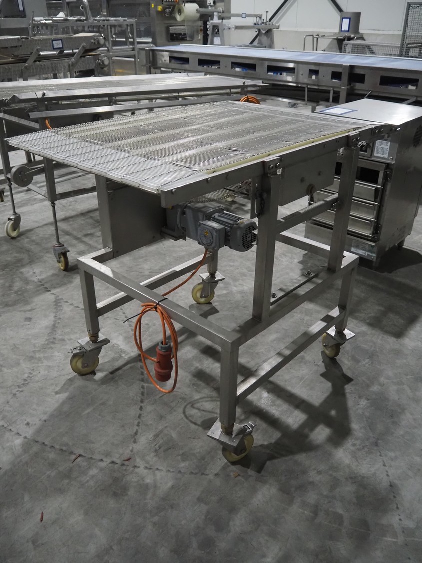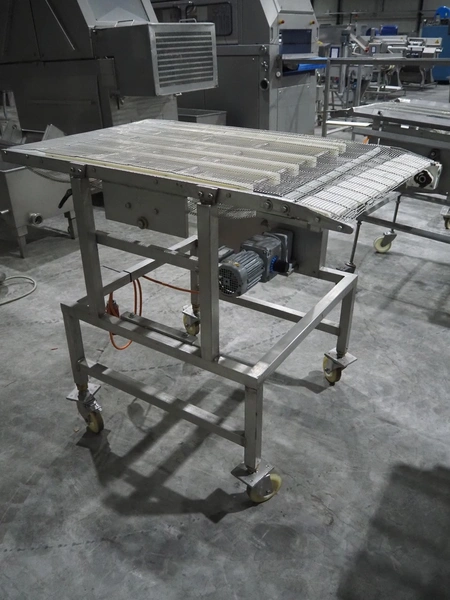 S/s mobile mesh belt, s/s mesh belt, belt width: 710 mm, total dimensions: 1220 mm x 900 mm x 1100 mm.