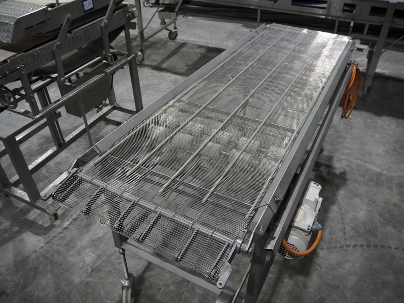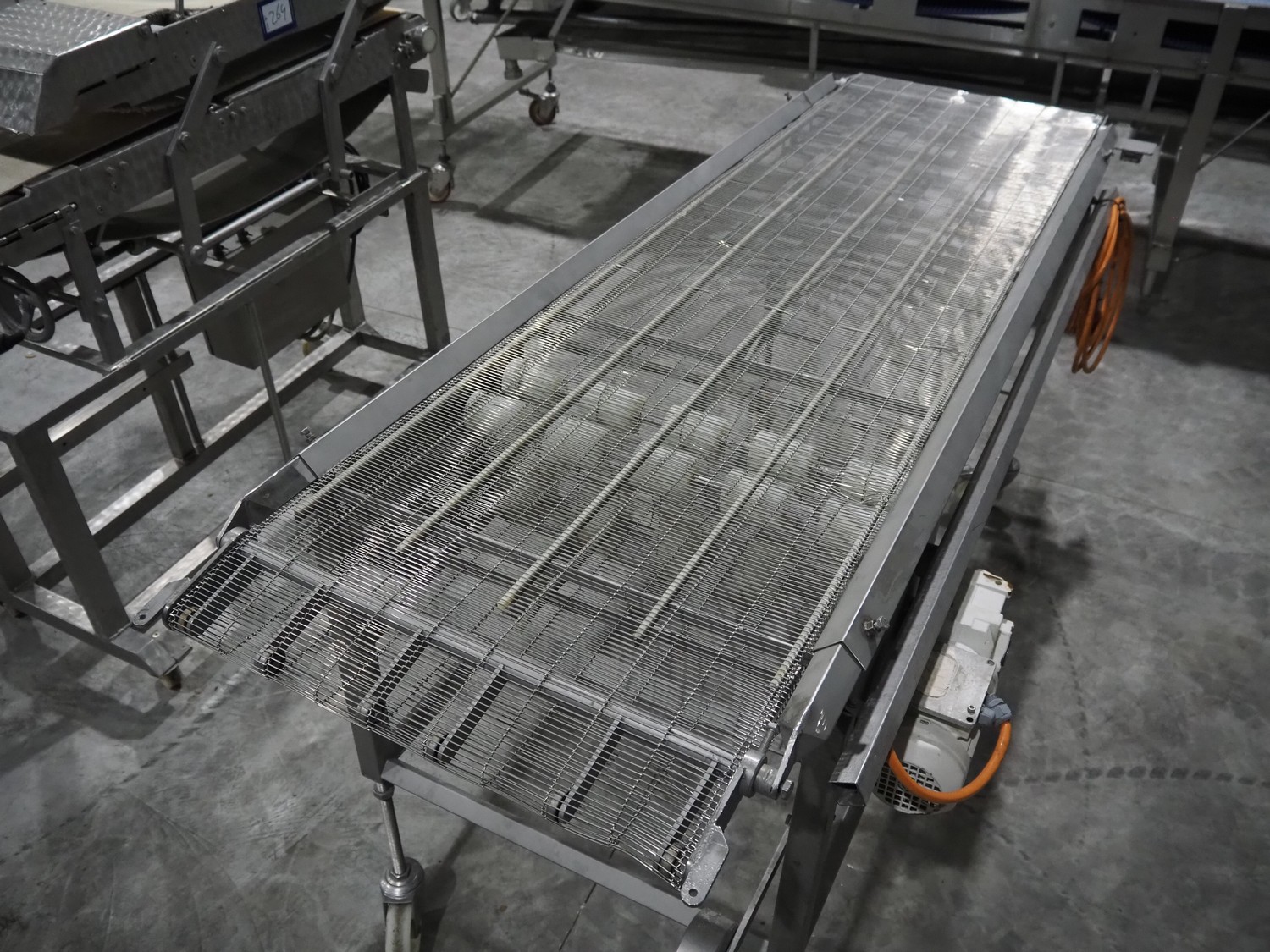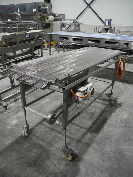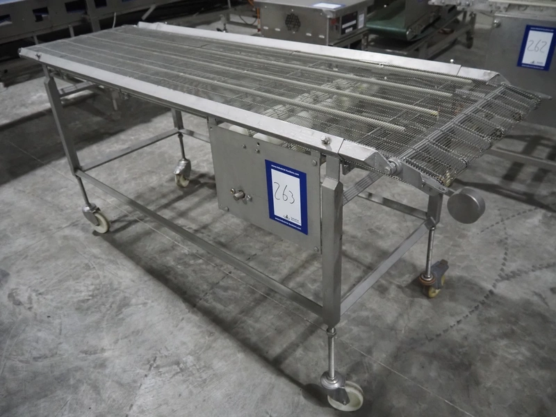 S/s mobile mesh belt, s/s mesh belt, belt width: 600 mm, total dimensions: 2260 mm x 850 mm x 1030 mm.